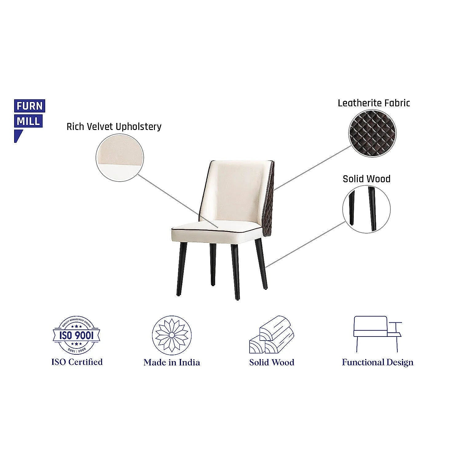 We know the importance of affordable, quality furniture that feels custom-made for you. Part of our seating furniture range, the Alan Accent Chair is an upholstered chair with wooden legs that provide stability and style. With velvet fabric in front and leatherite fabric at the back, this solid wooden chair comes without armrests and looks even more appealing. This wooden accent chair is part of our budget-friendly home furniture range.