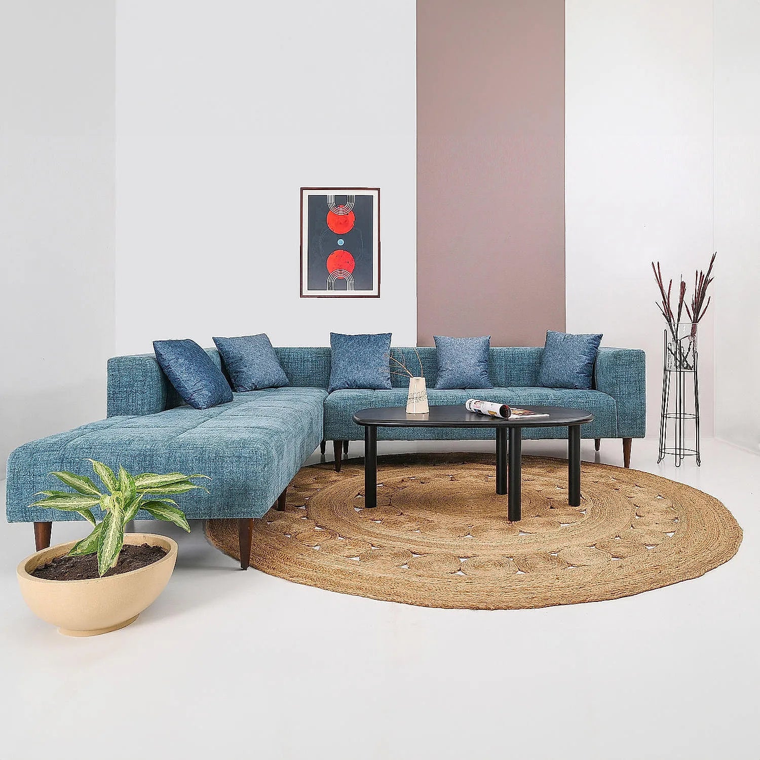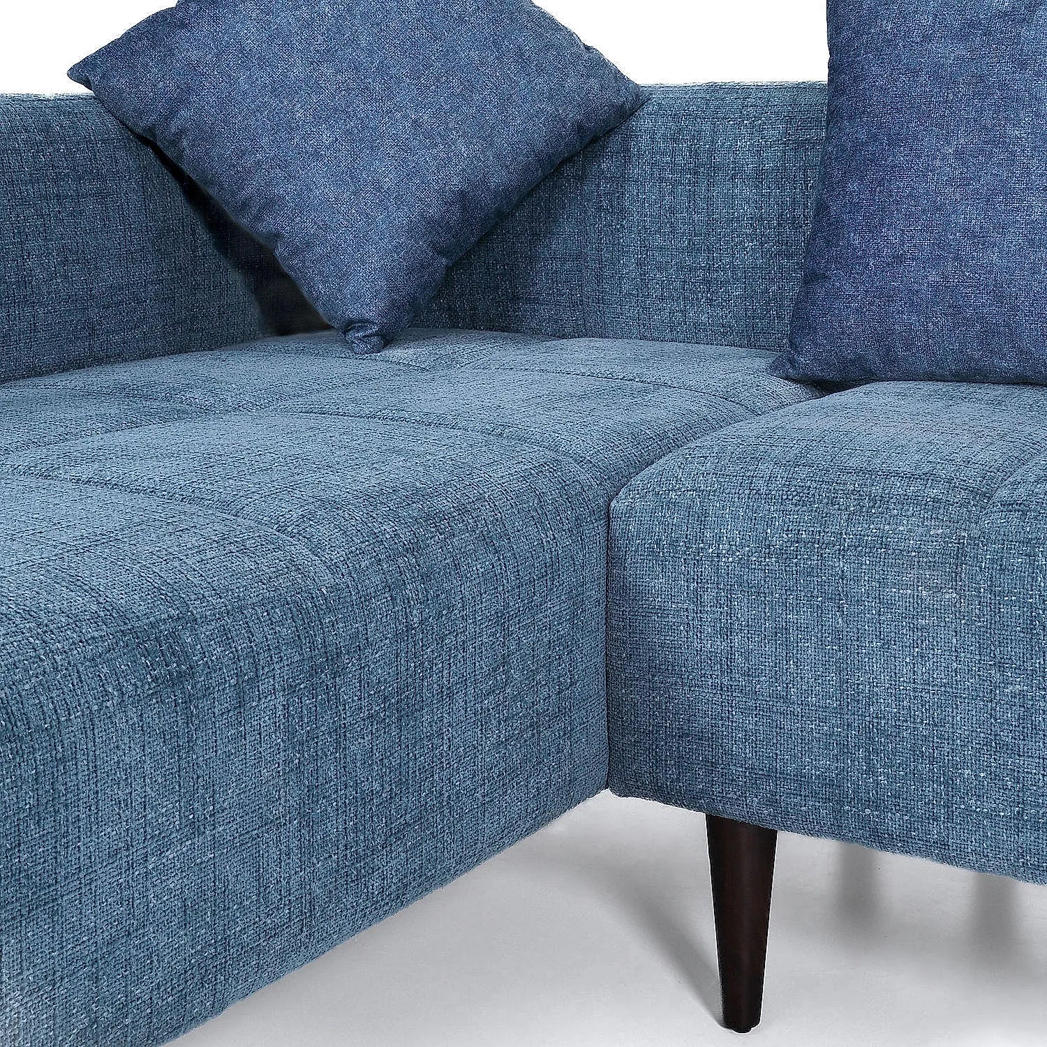 Audrey Wooden L Shape Sofa in Blue Color