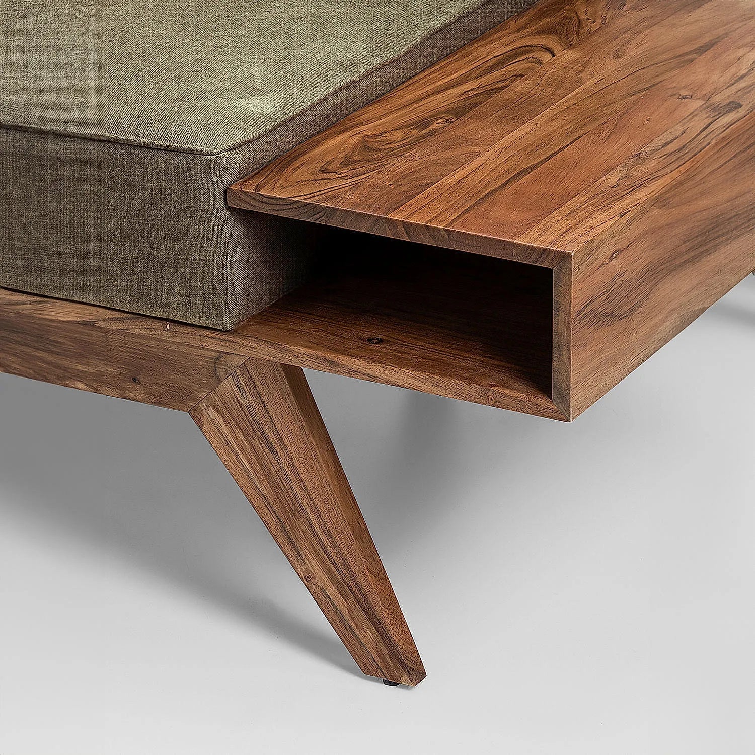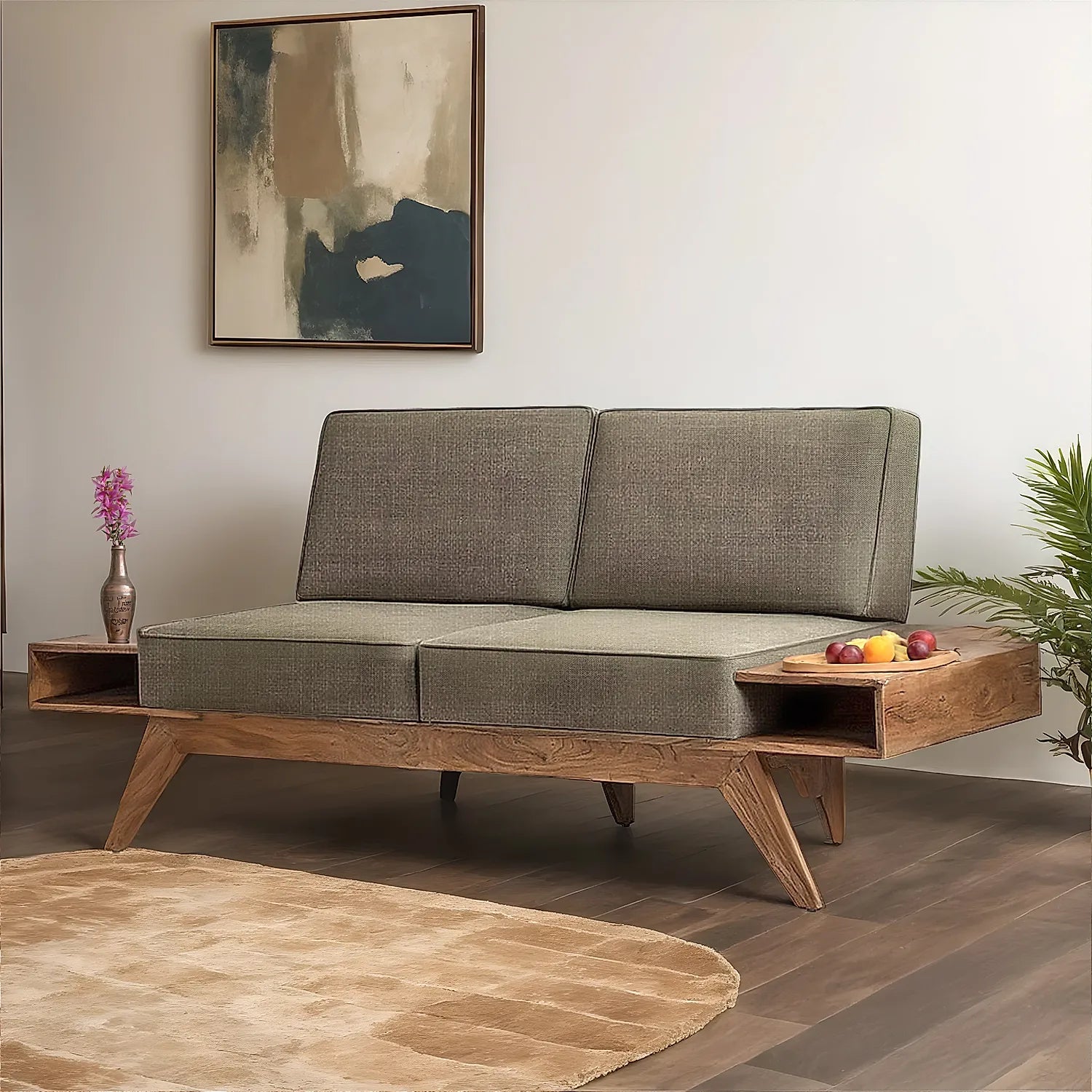 The master of all sofa sets, the Berlin sofa from Furnmill has an evergreen mid-century modern design. It has a tapered set of legs, making it visually appealing. The 2-seater solid wood sofa is also a useful piece of furniture because it is a wooden sofa with storage. It is an ideal living room furniture to soak your tiredness away the moment you sit on it.