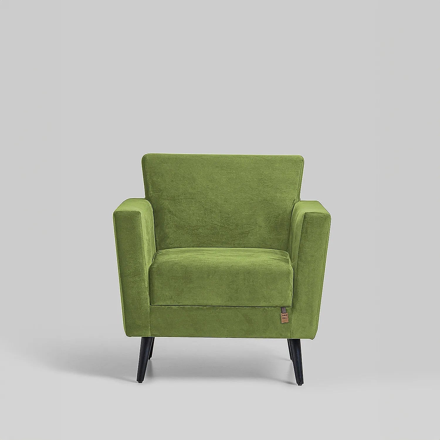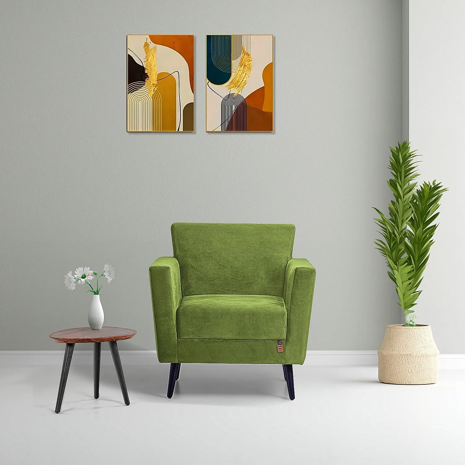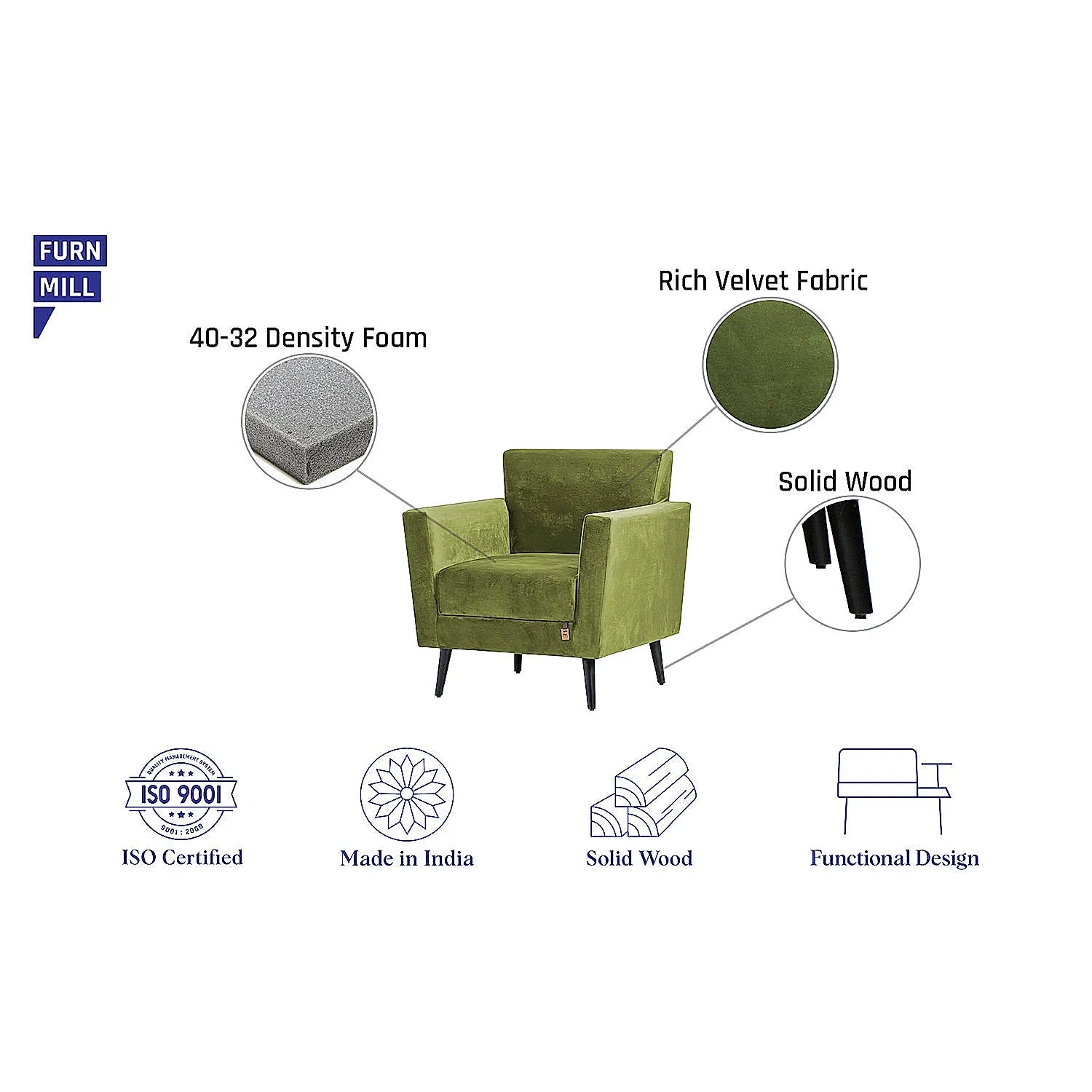 Cairo Wooden 1 Seater Sofa (Velvet, Green)