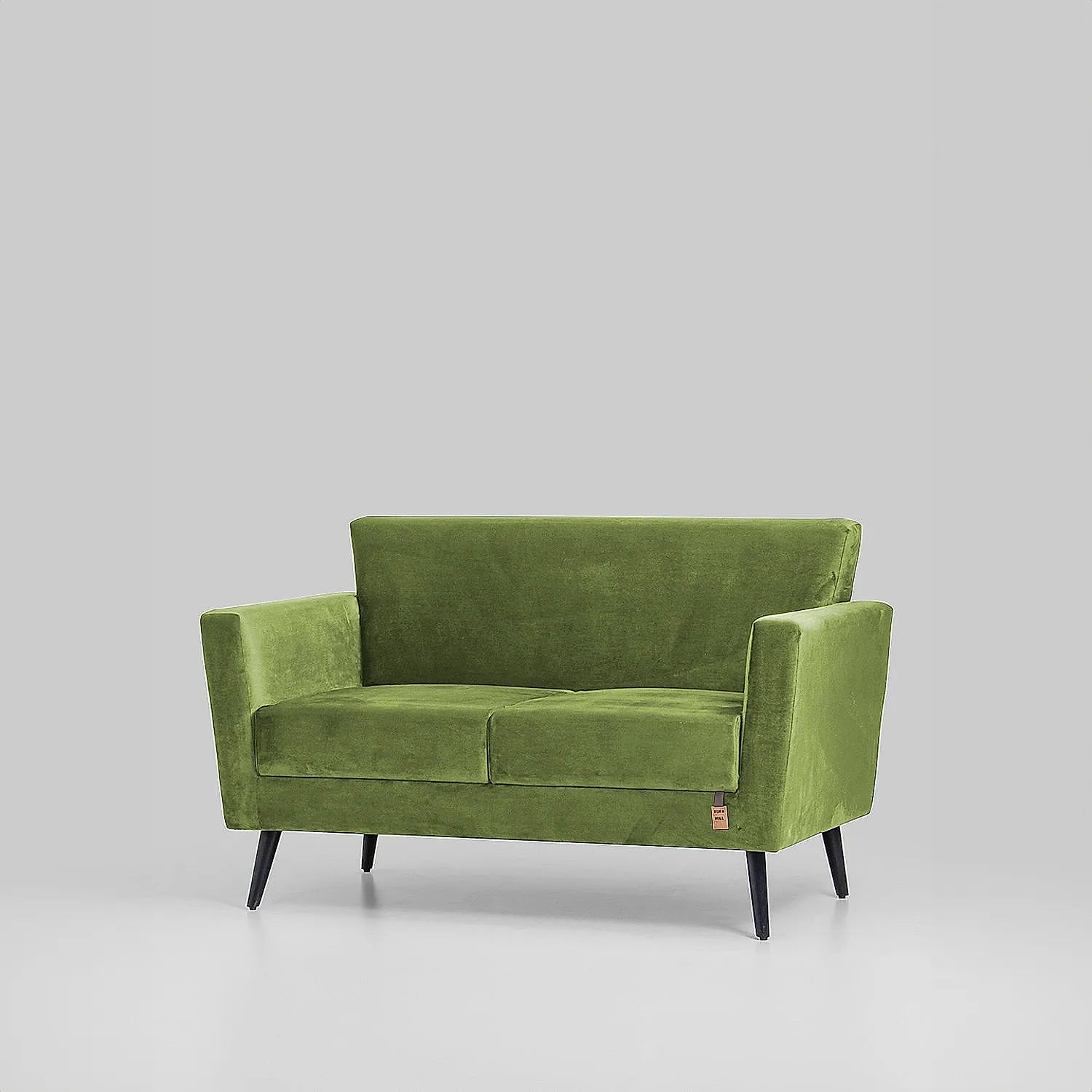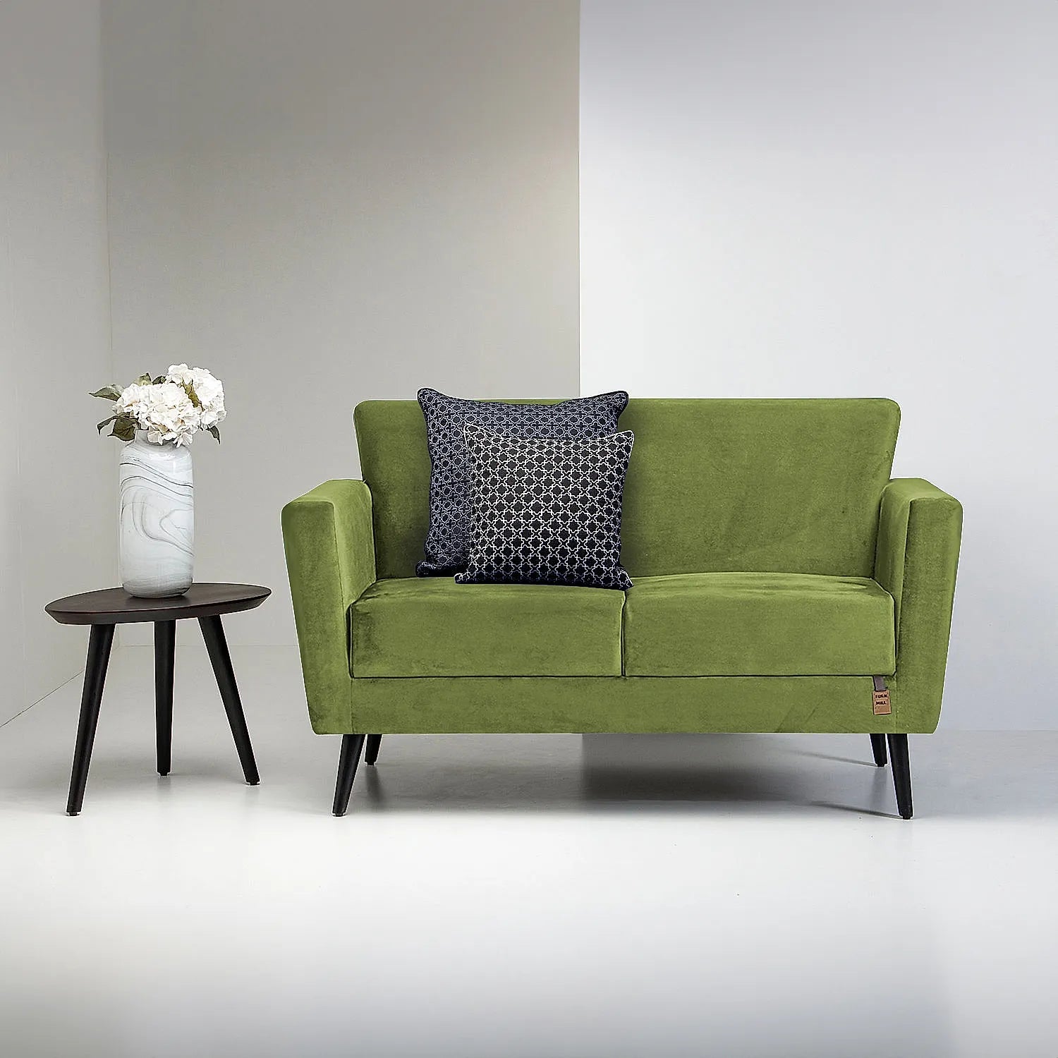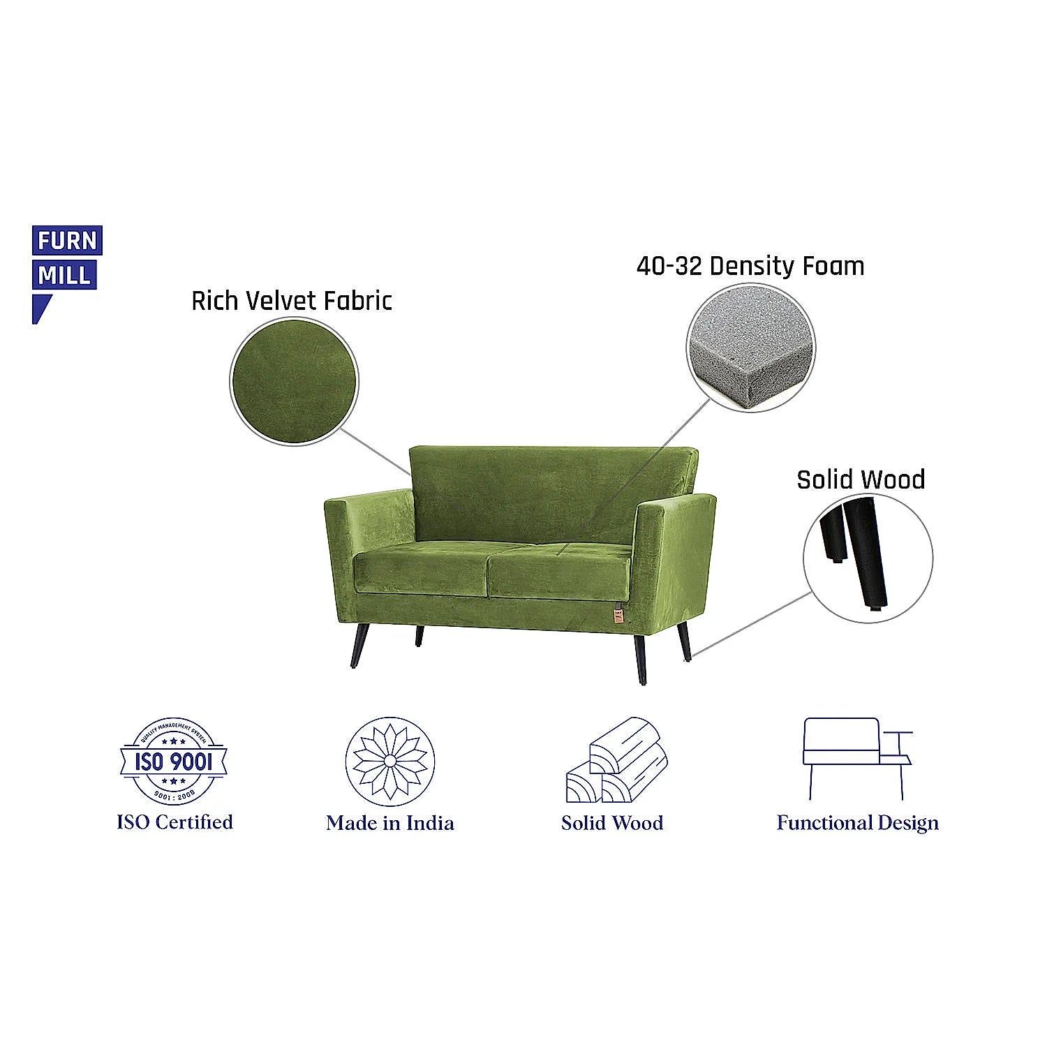 Cairo Wooden 2 Seater Sofa (Velvet, Green)