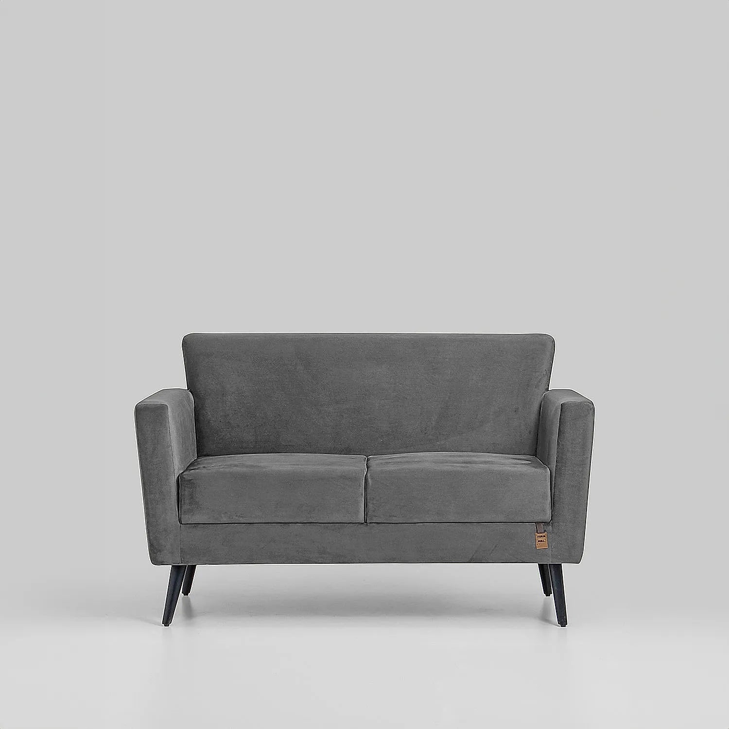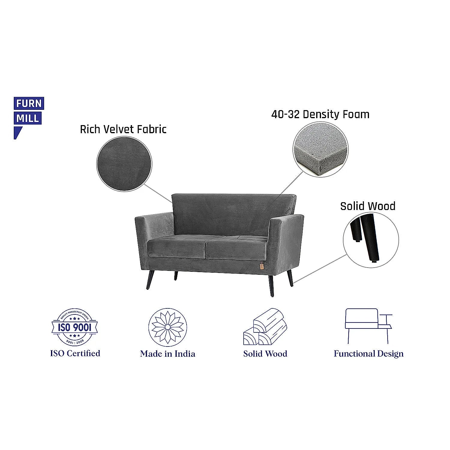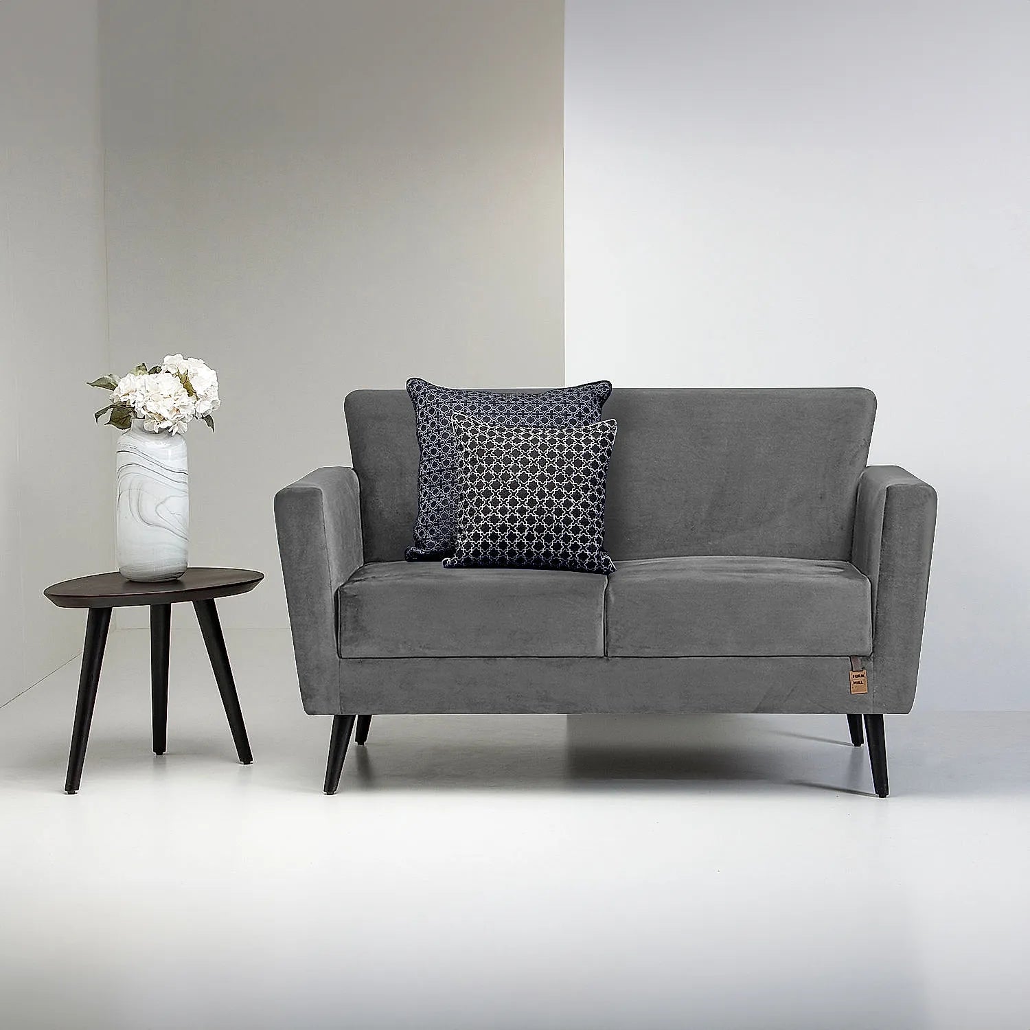 Cairo Wooden 2 Seater Sofa (Velvet, Grey)