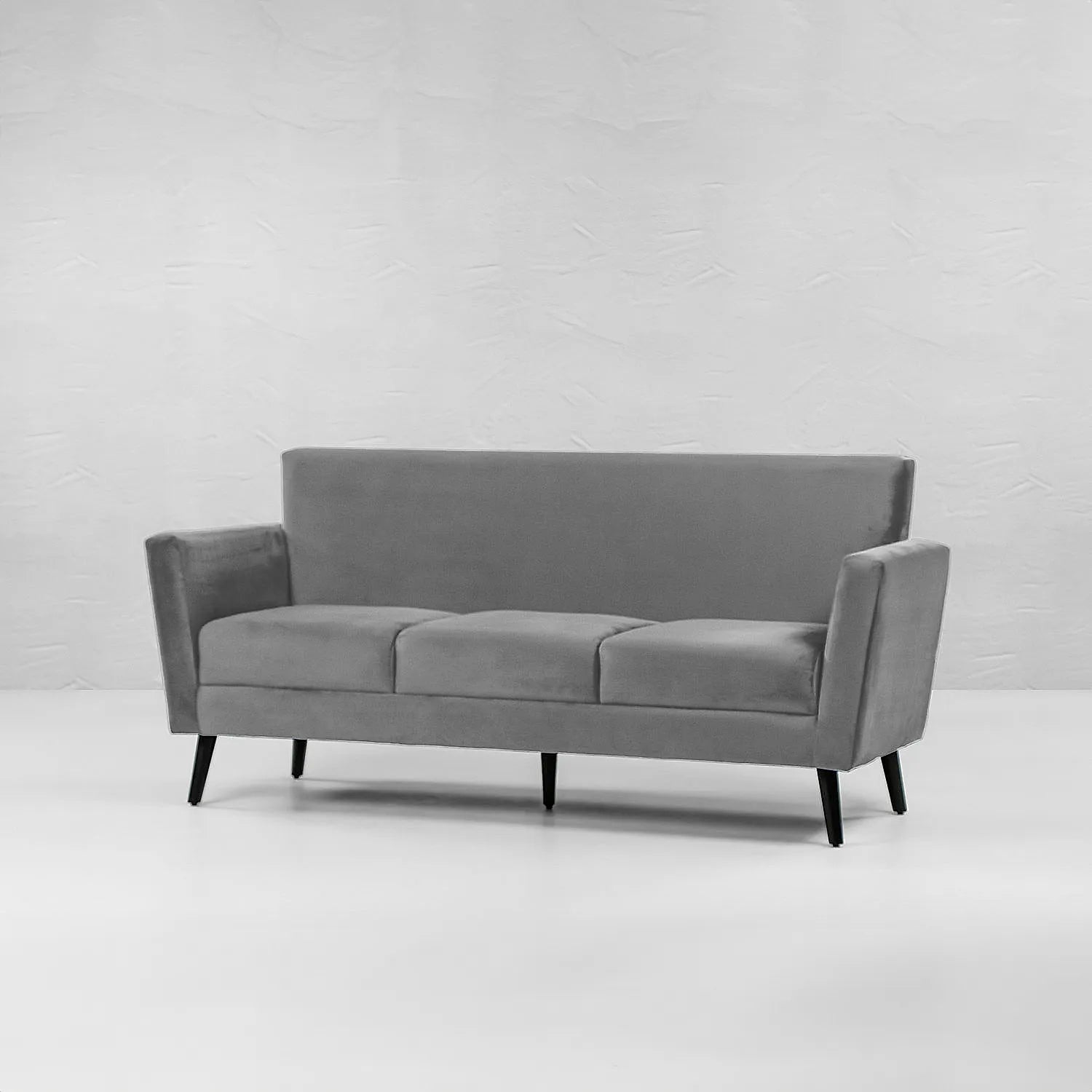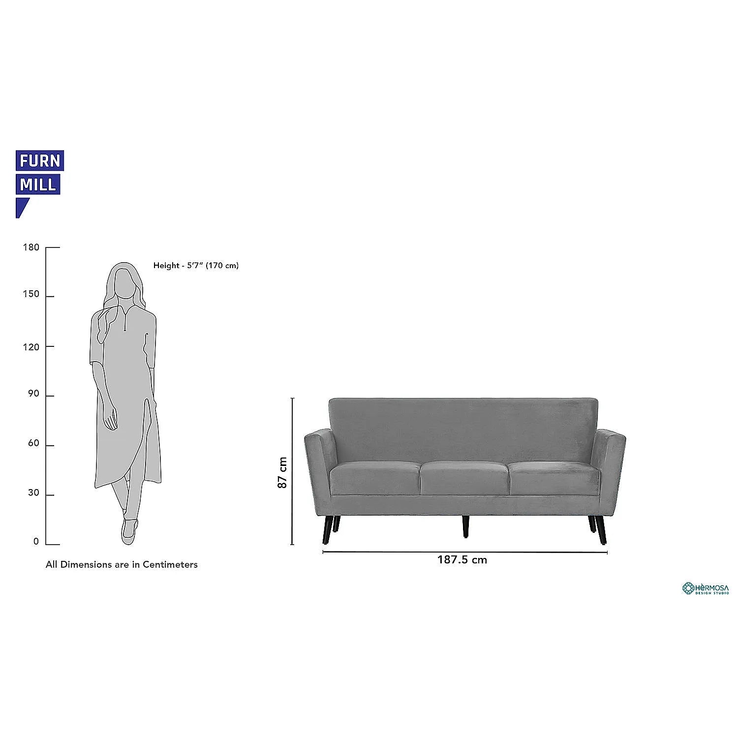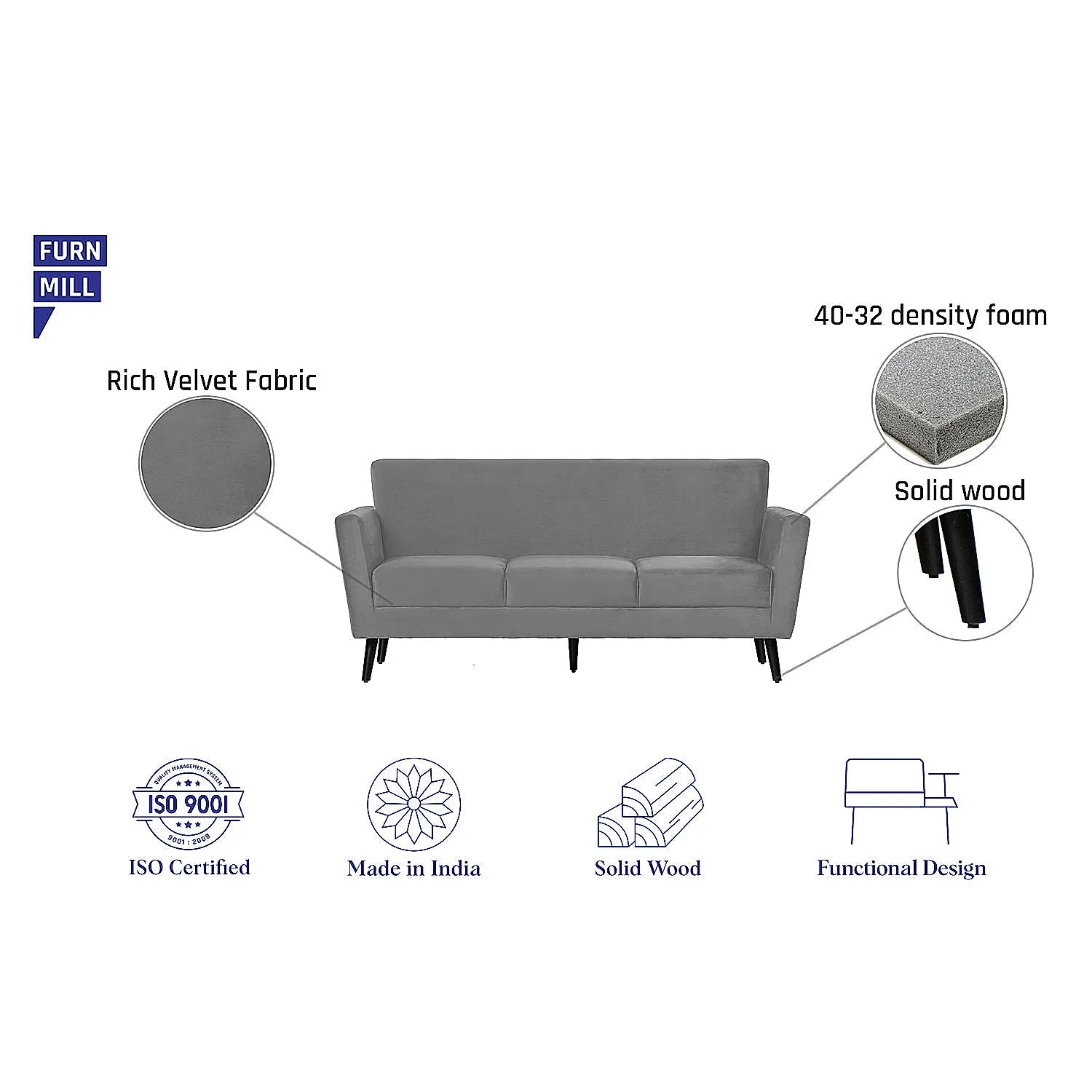 Cairo Wooden 3 Seater Sofa (Velvet, Grey)