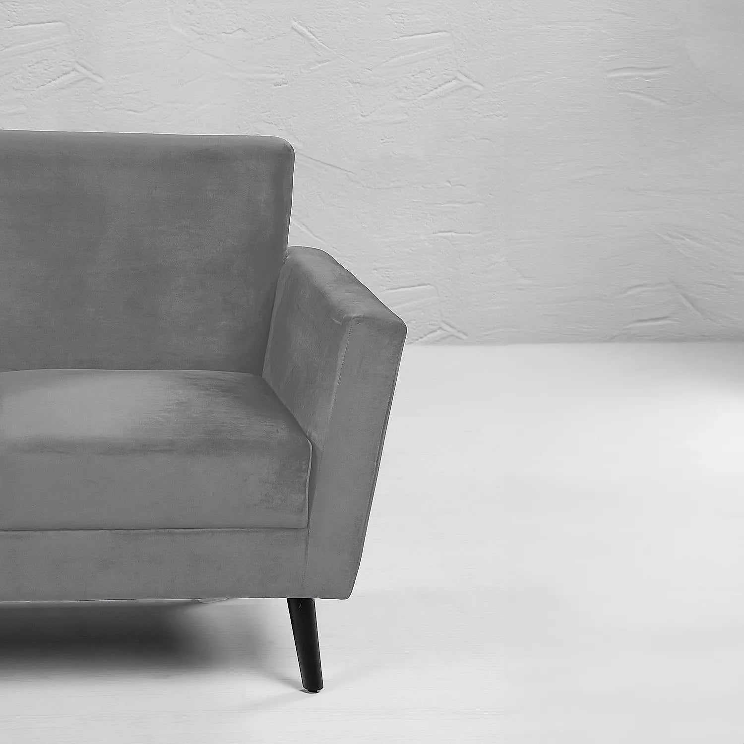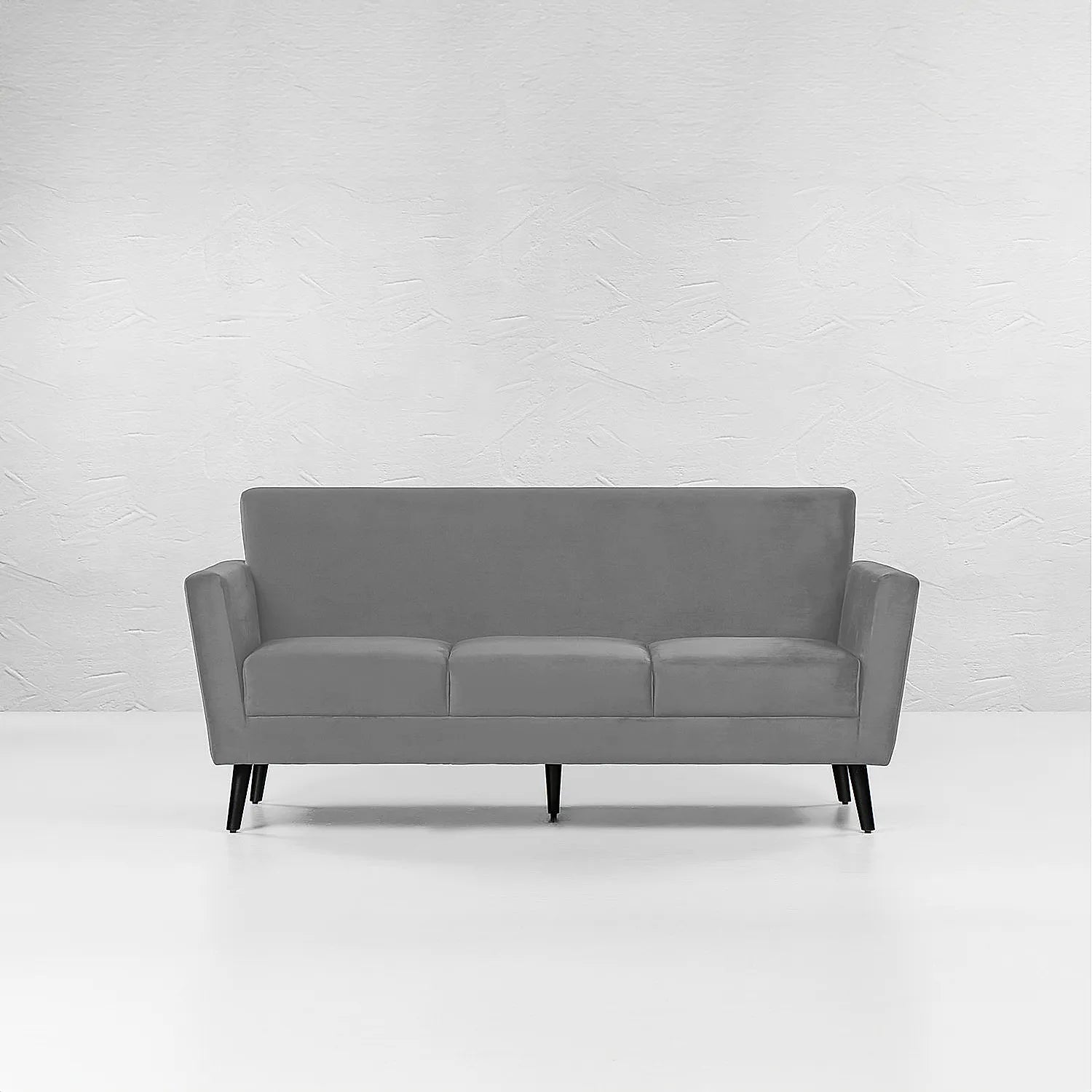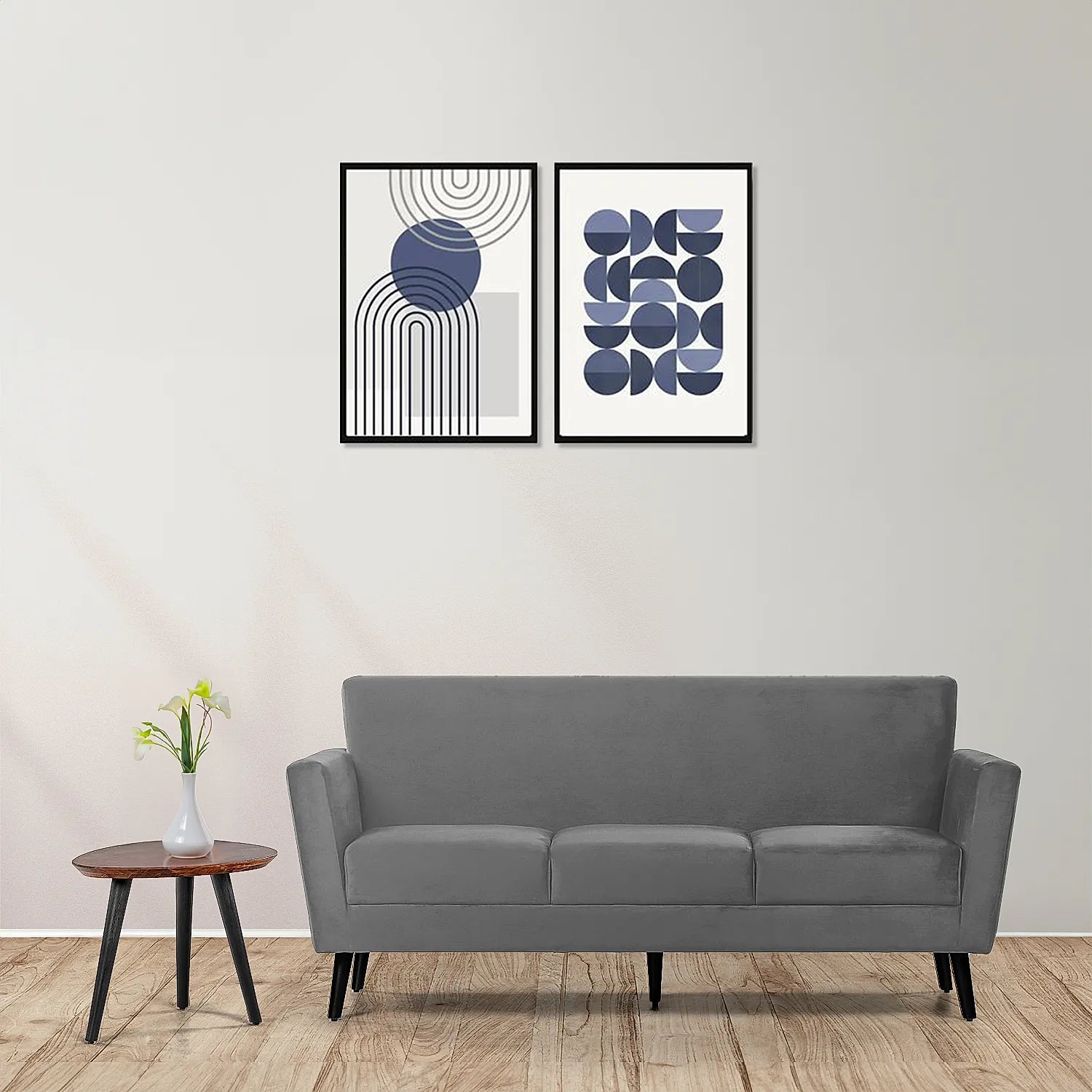 Cairo Wooden 3 Seater Sofa (Velvet, Grey)