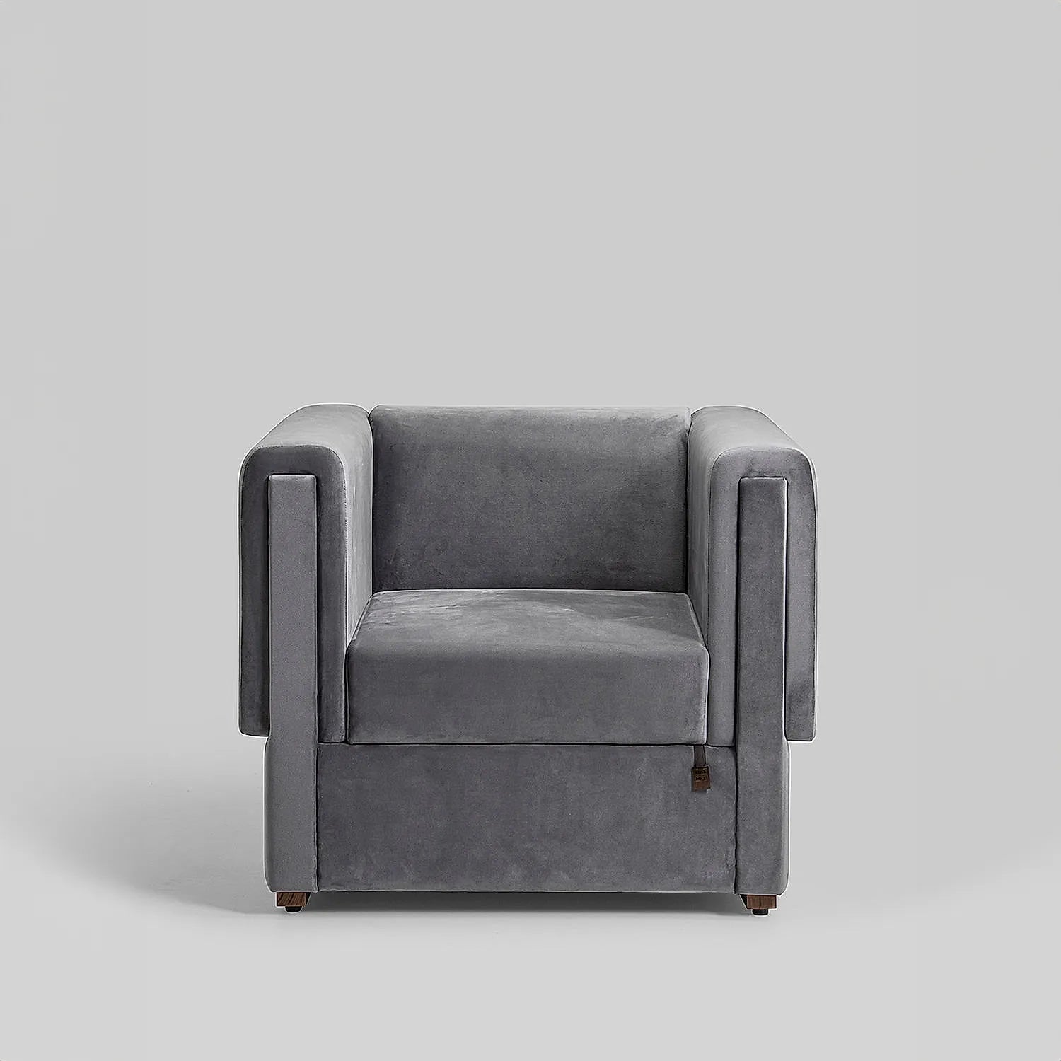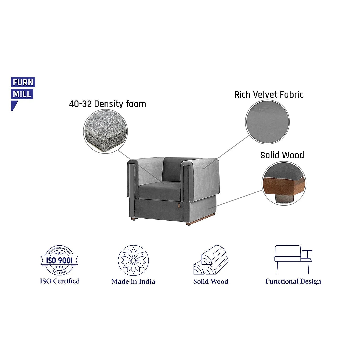 California 1 Seater Fabric Sofa (Velvet, Grey)