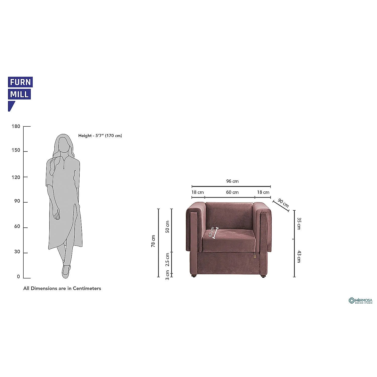 California 1 Seater Fabric Sofa (Velvet, Mauve)