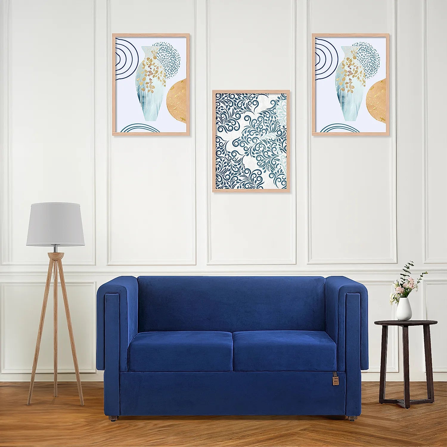California 2 Seater Fabric Sofa (Velvet, Blue)