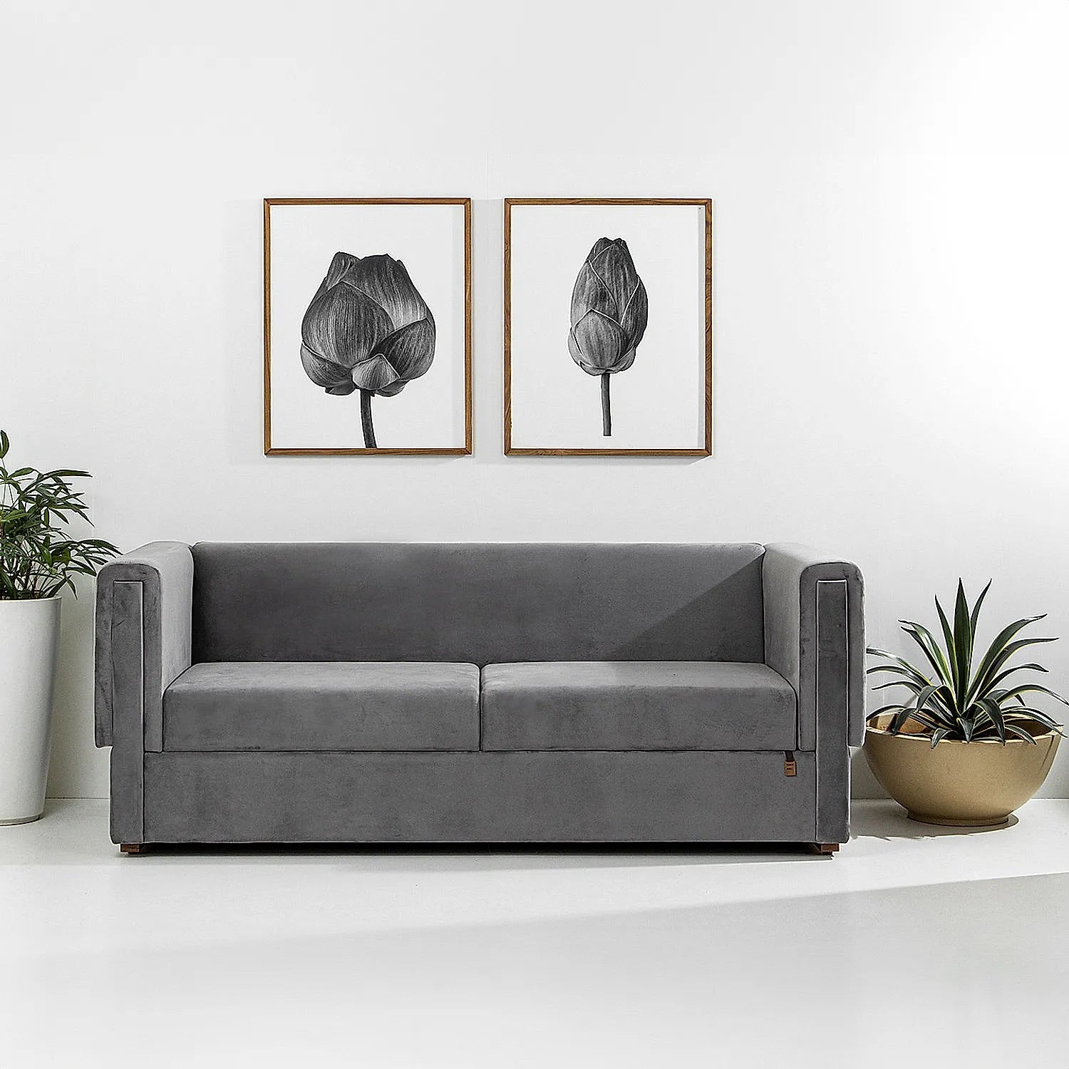 California 2 Seater Fabric Sofa (Velvet, Grey)