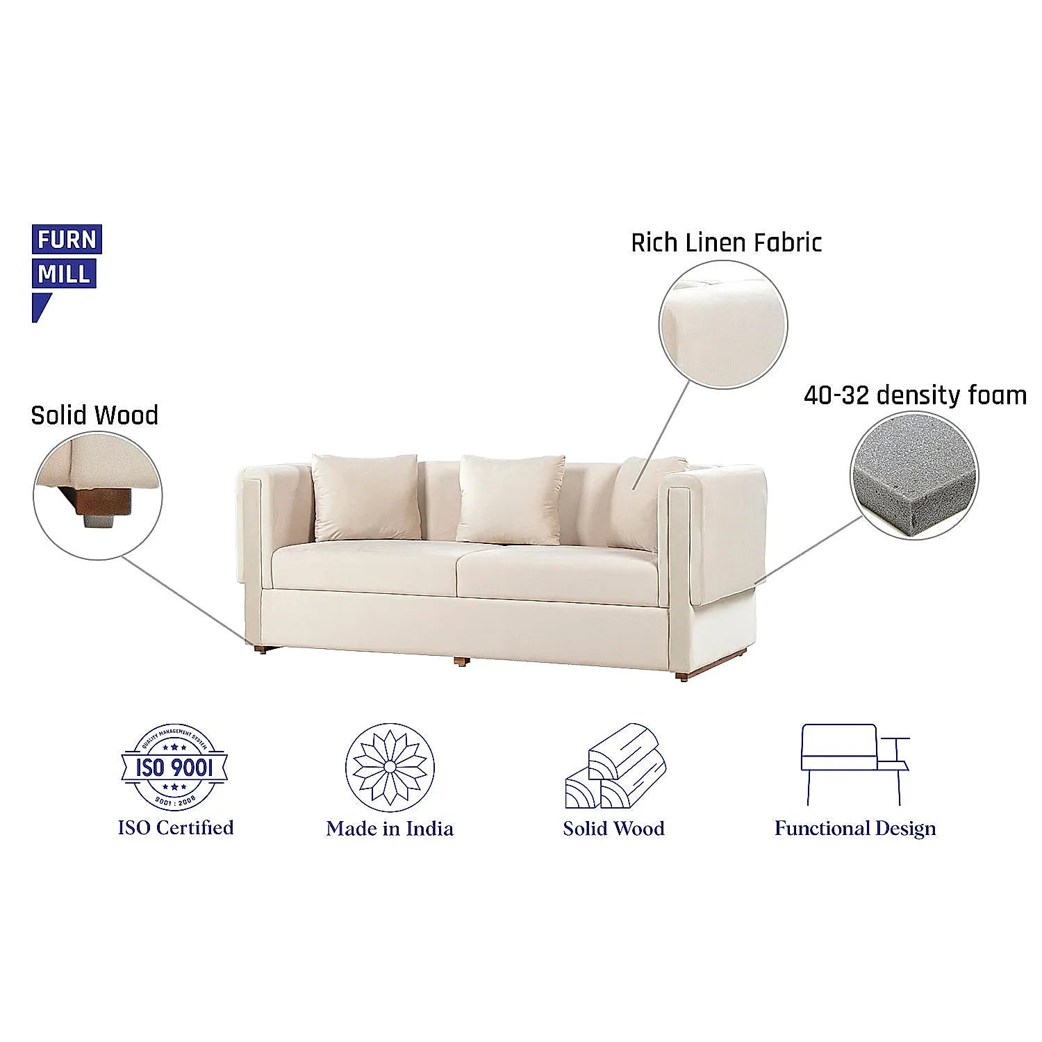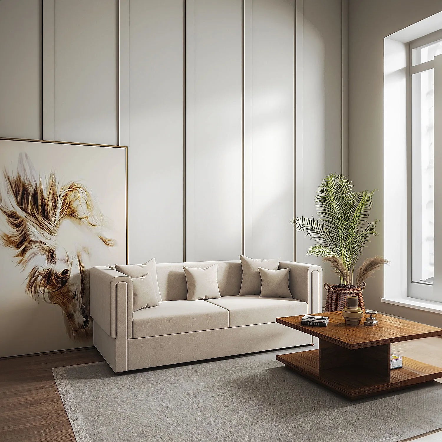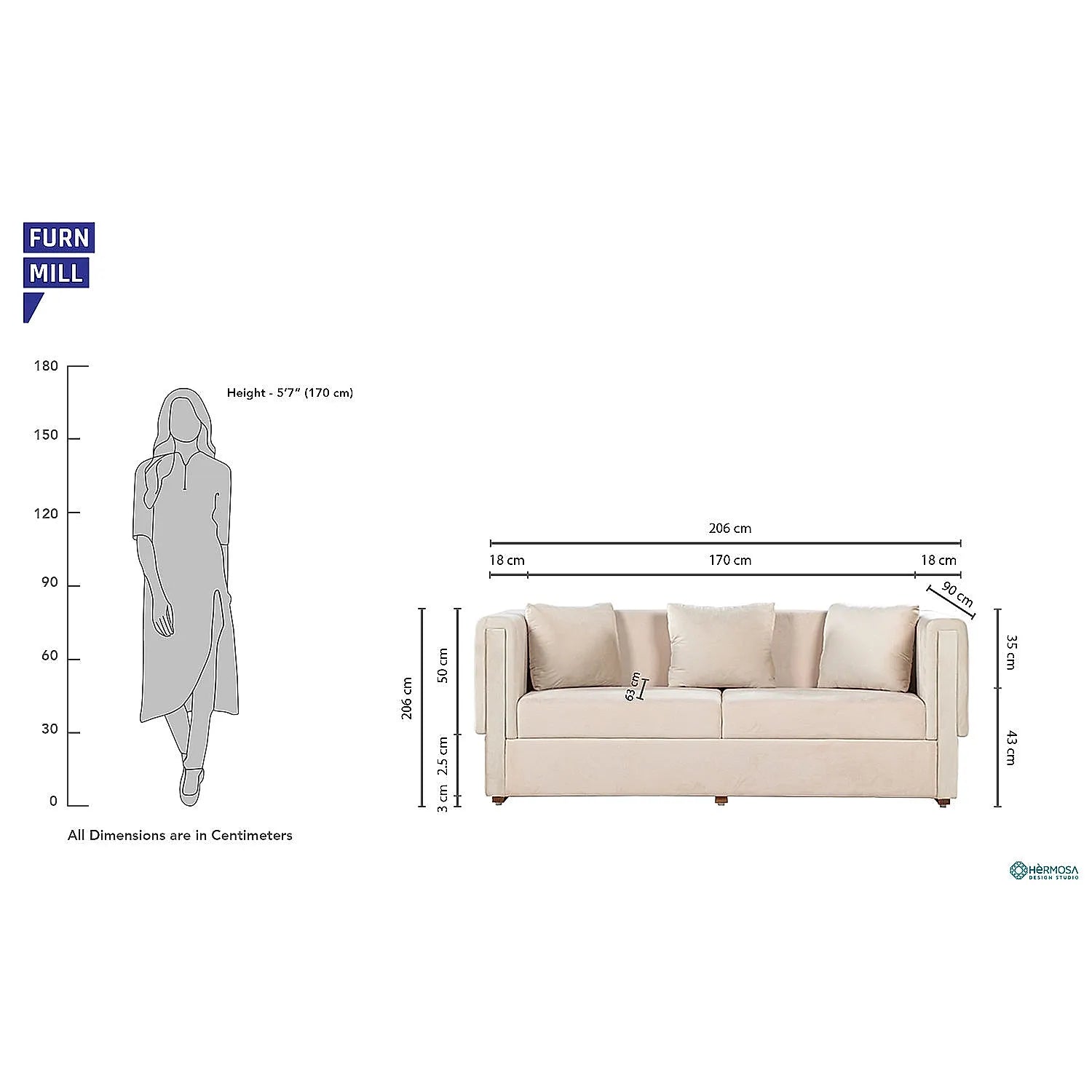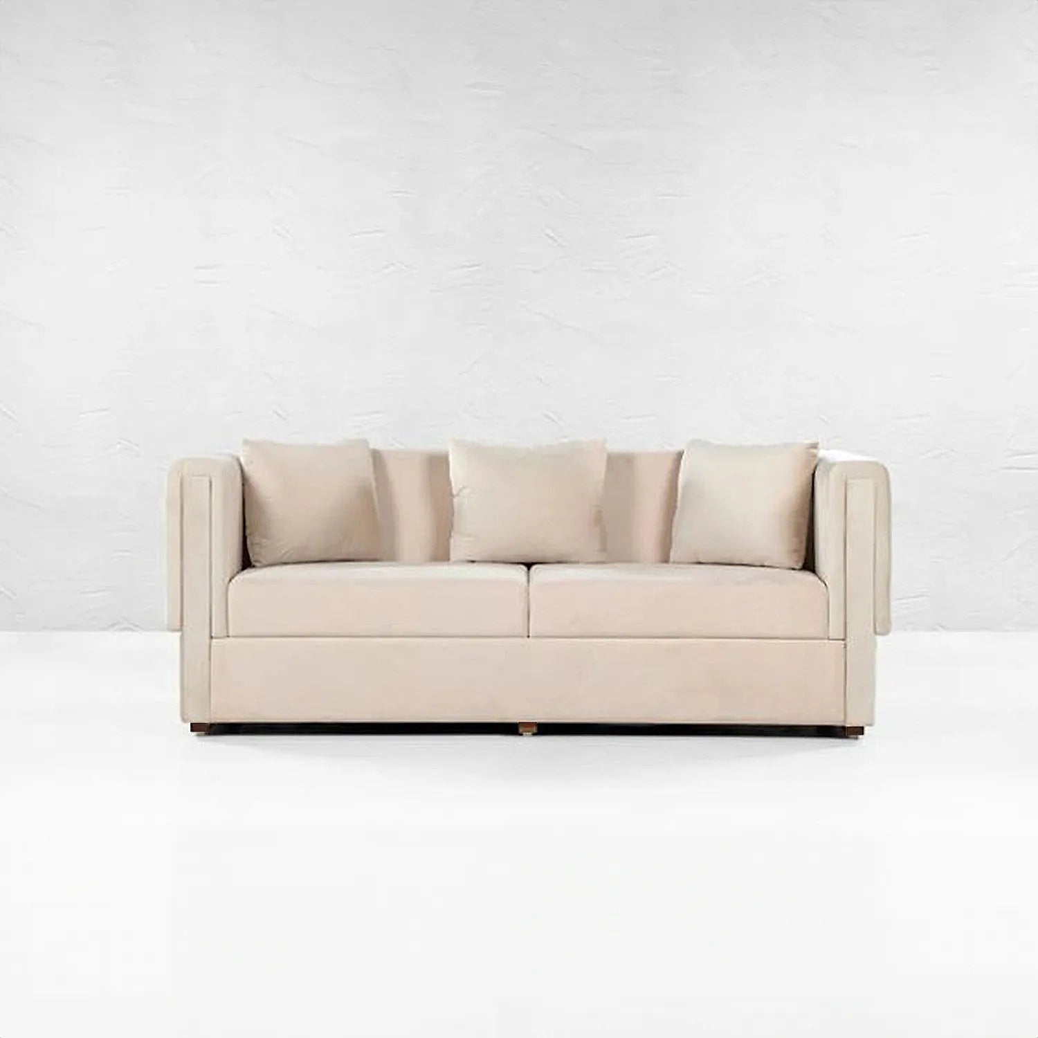 California 3 Seater Fabric Sofa (Velvet, Beige)