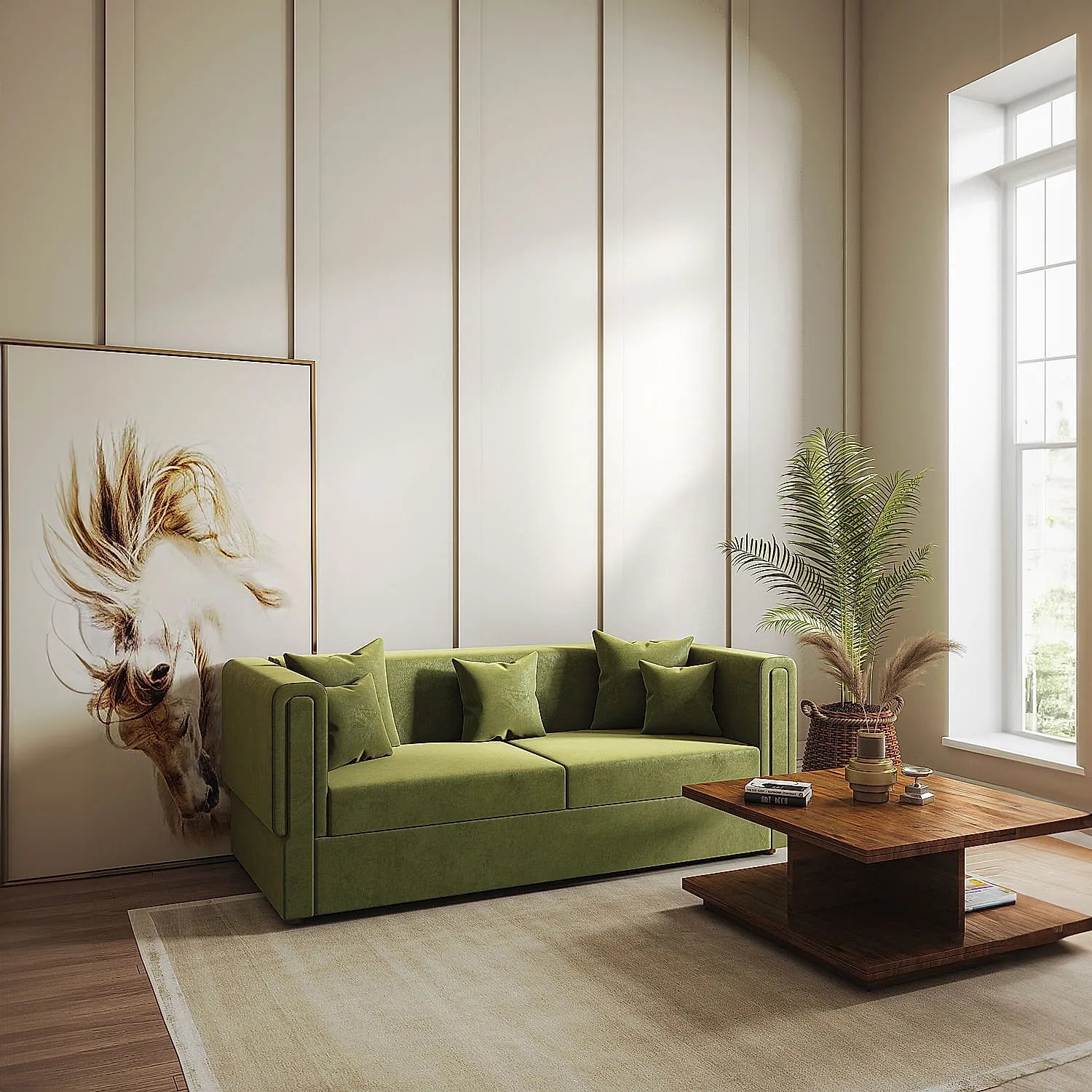 California 3 Seater Fabric Sofa (Velvet, Green)