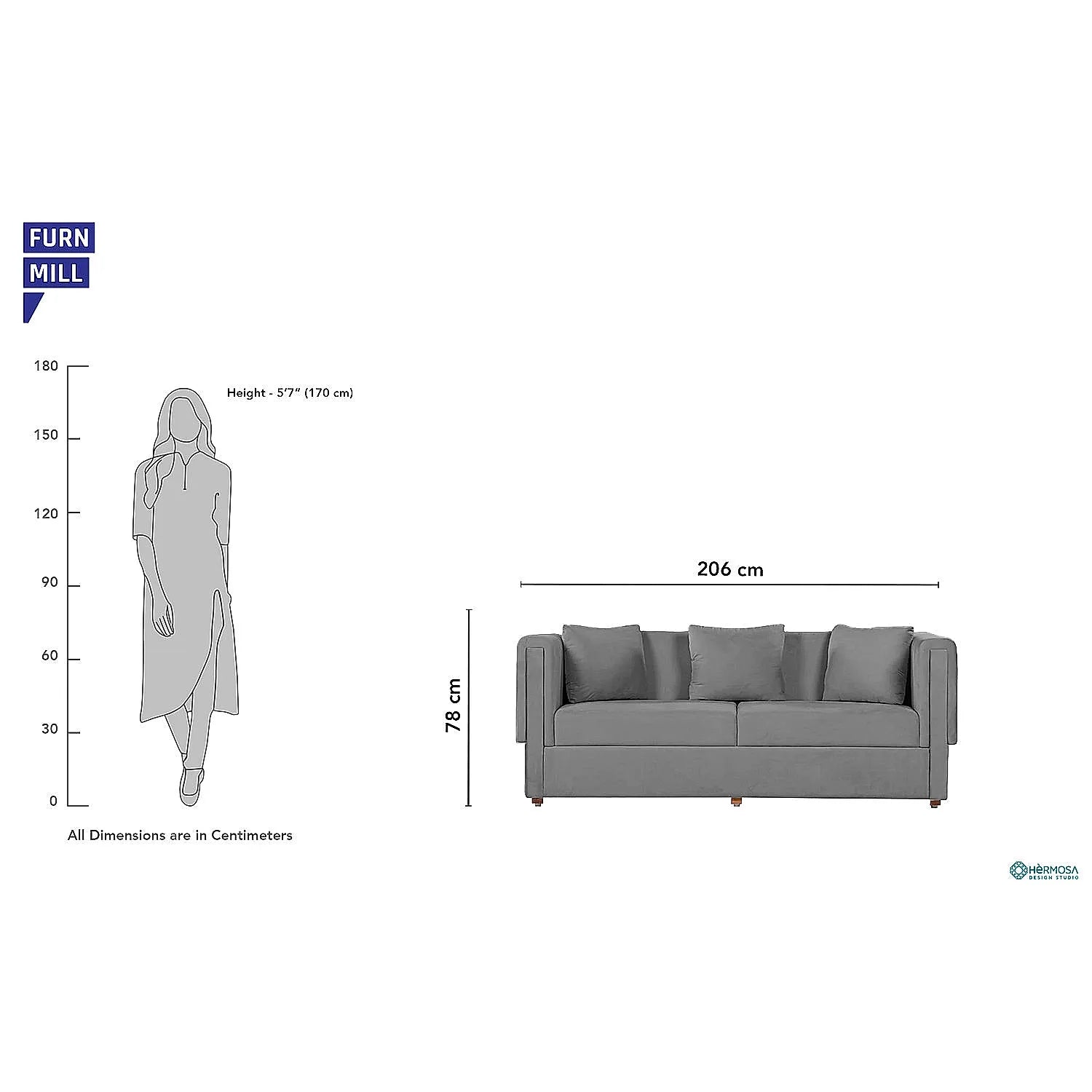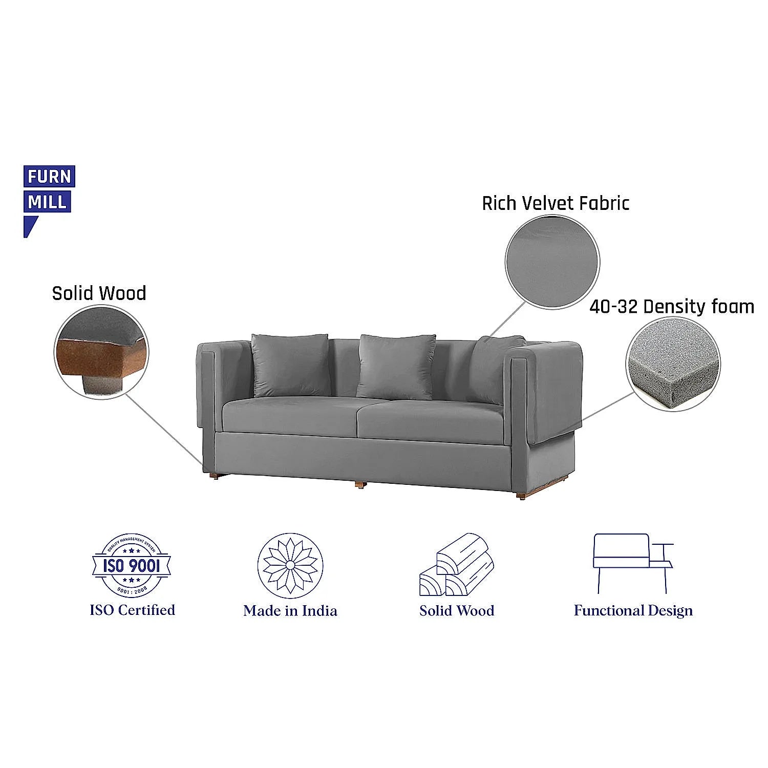 California 3 Seater Fabric Sofa (Velvet, Grey)