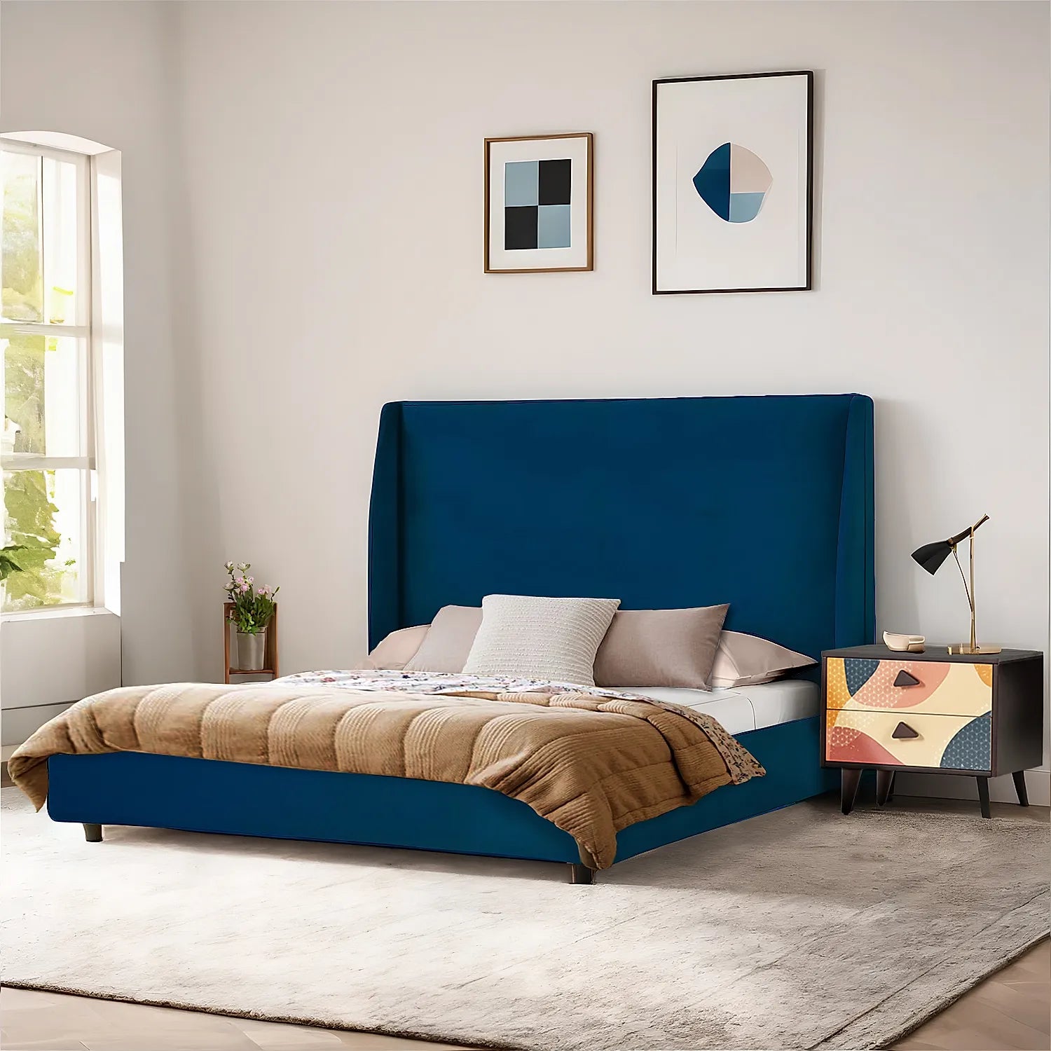 California King Size Fabric Bed (Velvet, Blue)