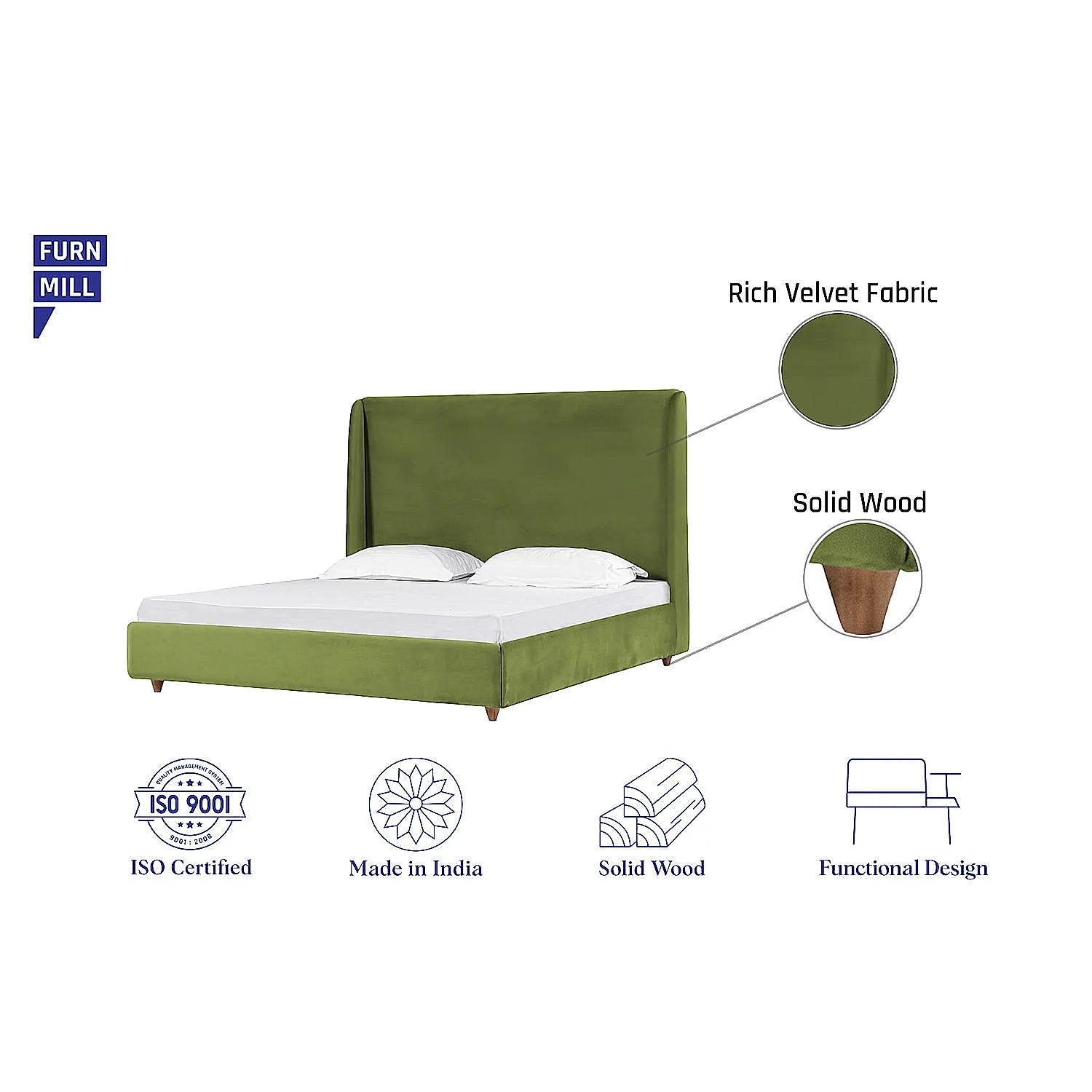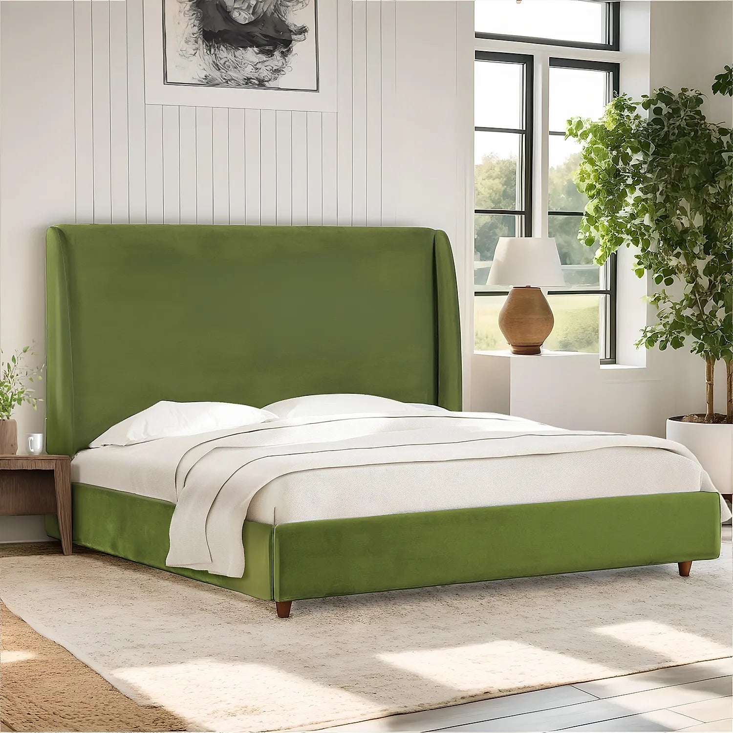 California King Size Fabric Bed (Velvet, Green)