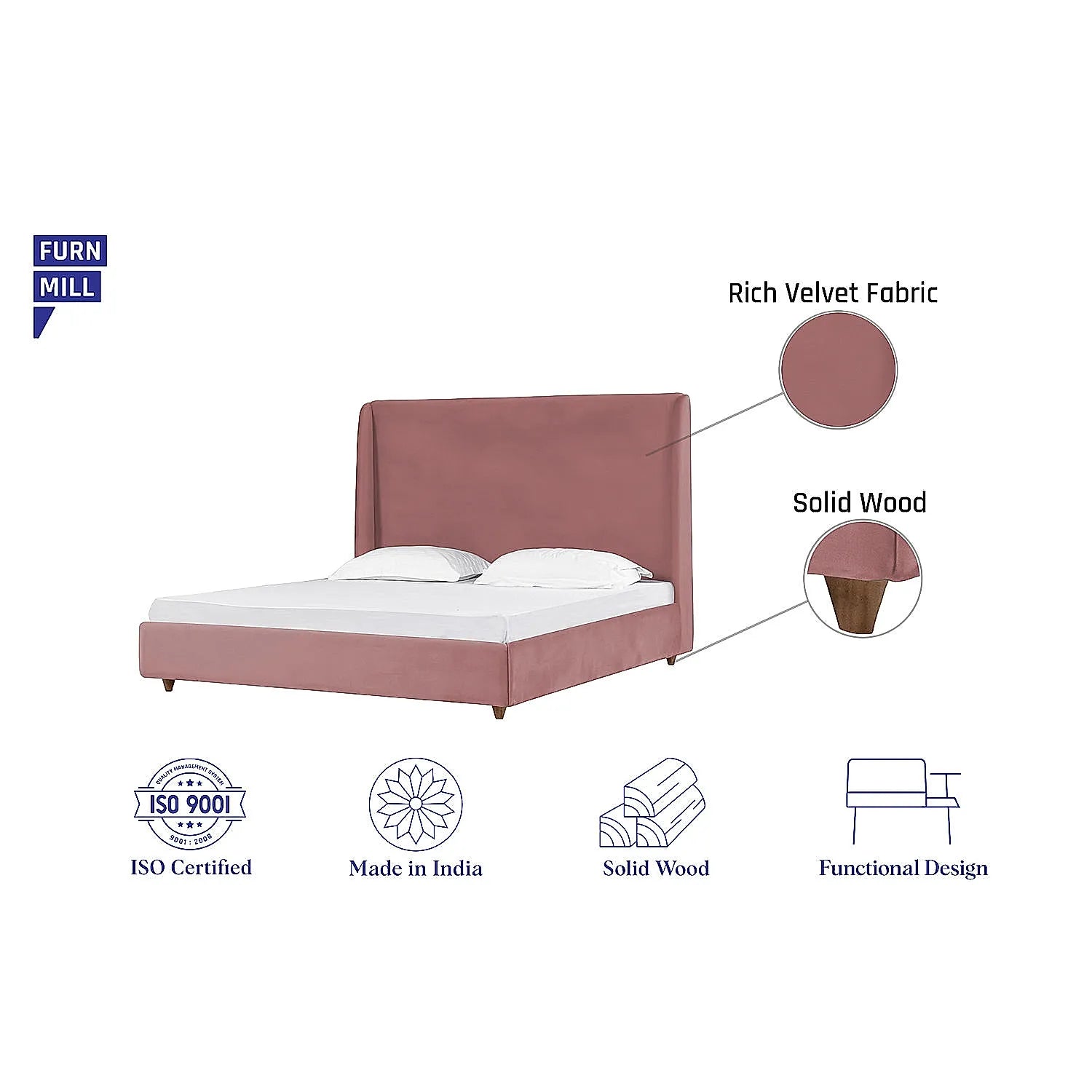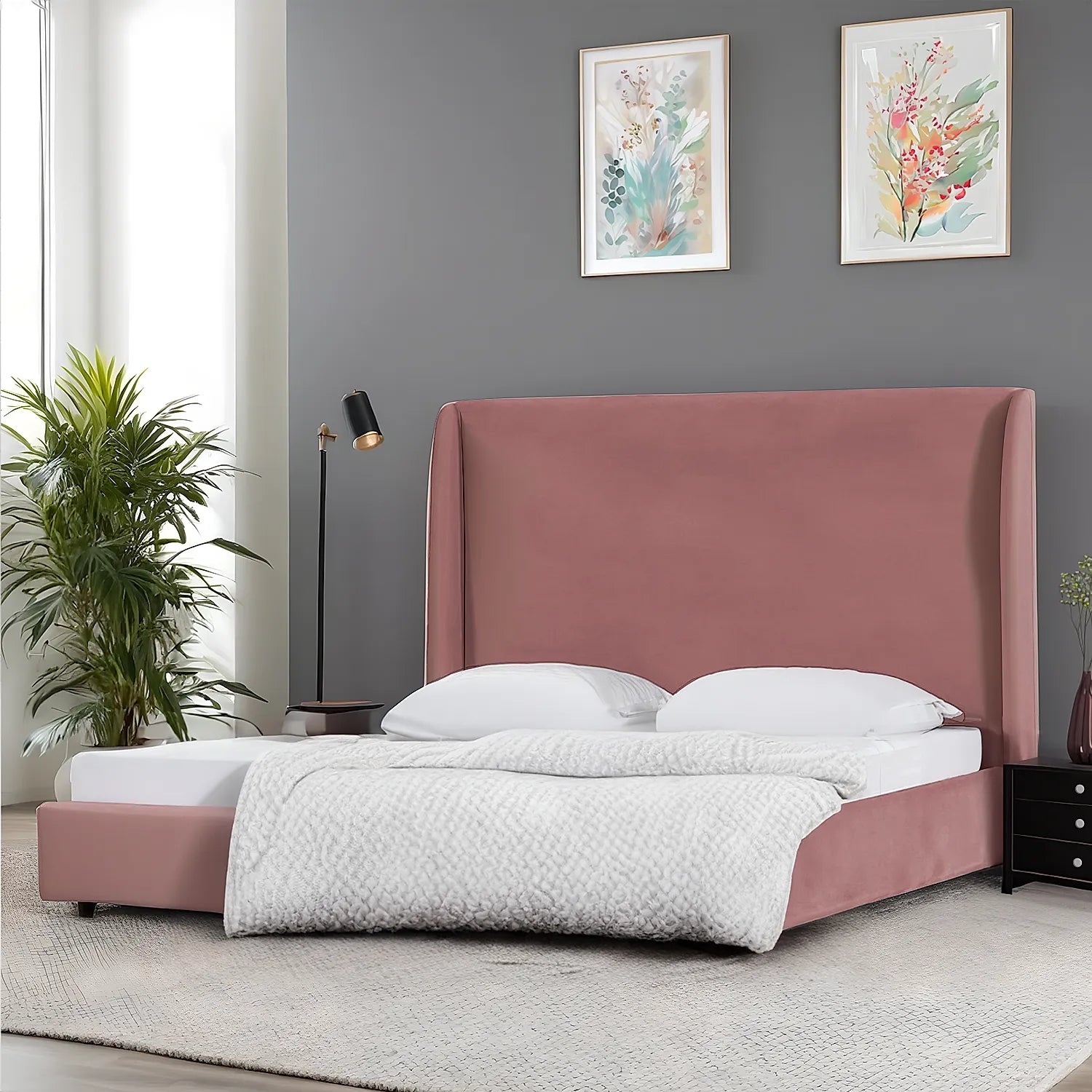 California King Size Fabric Bed (Velvet, Mauve)