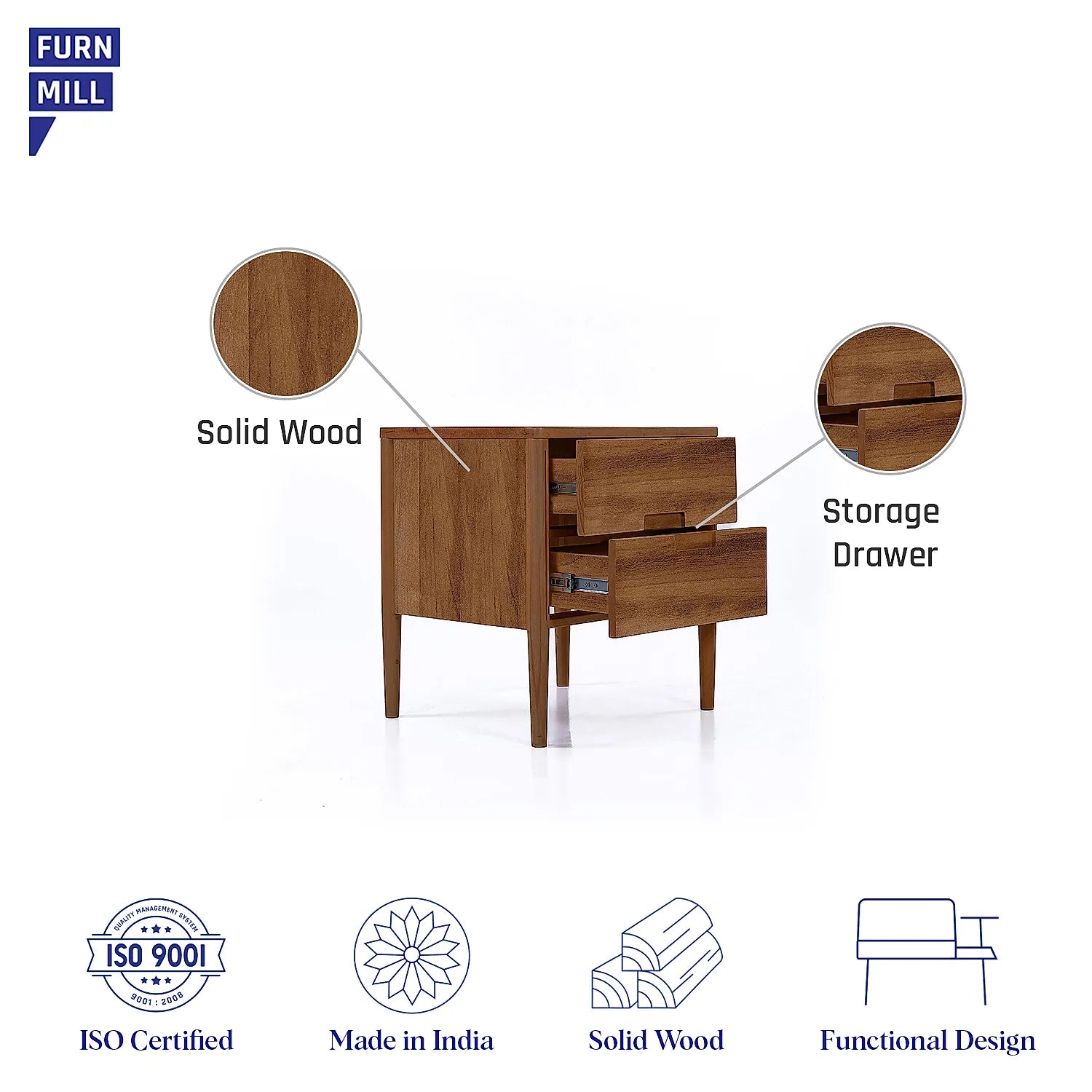 Carol Wooden Bedside Table in Natural Finish