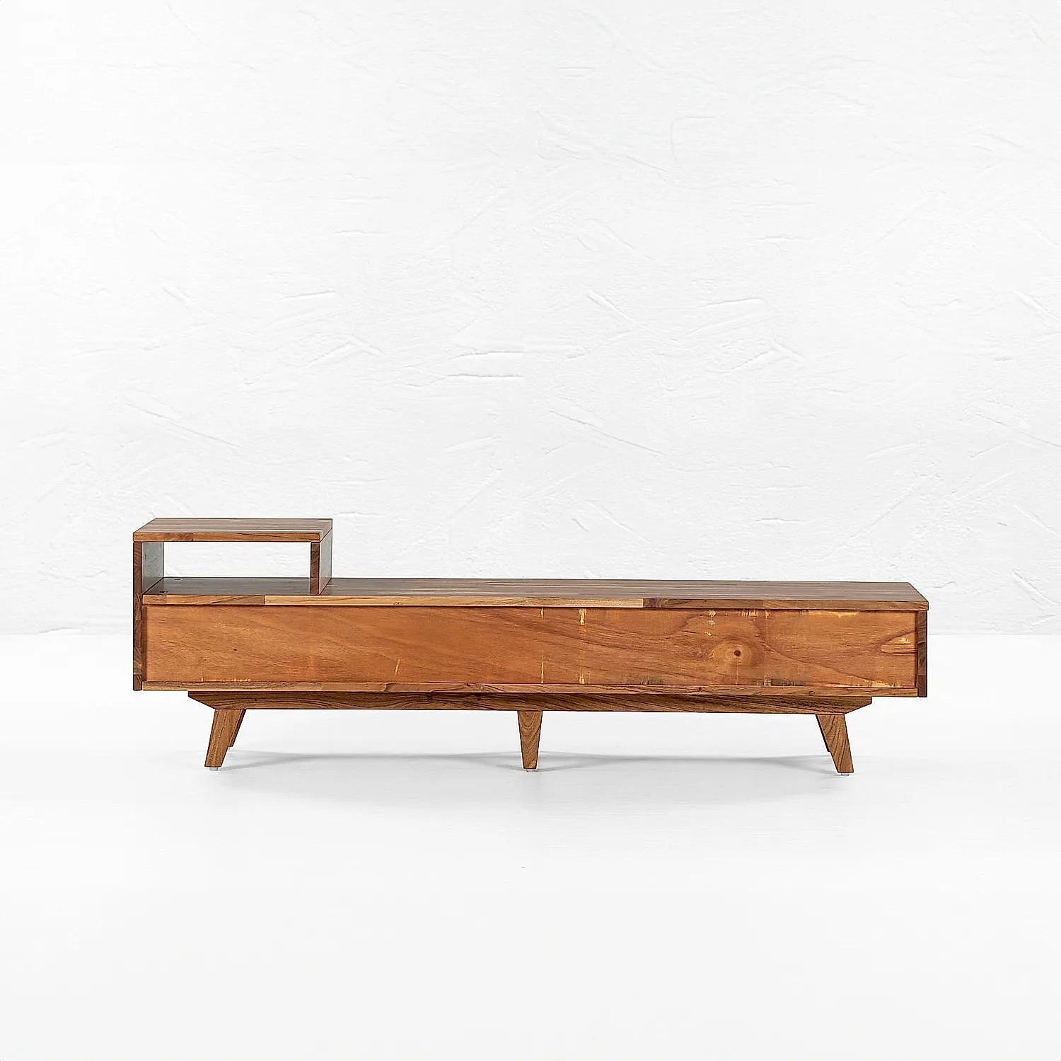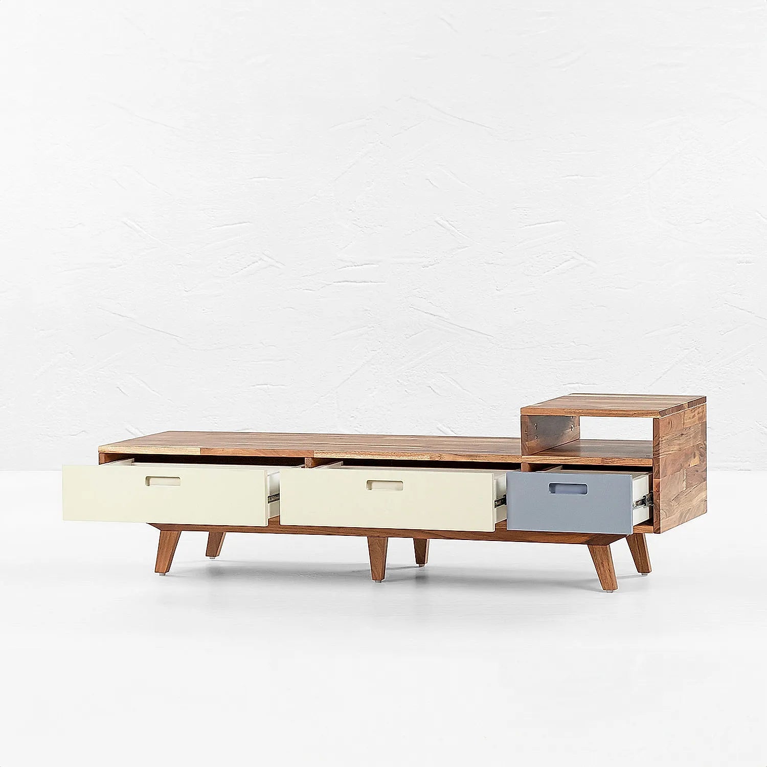 Now, this one is an absolute stunner! The unconventional modern design of the table offers aesthetics and ample storage with three drawers. Use this table to organize your extra cables and wires or keep stationery handy. The stout but exposed legs add a contemporary prop to the art piece while also leaving the surface underneath accessible. No hidden cobwebs or dirty undergrounds with this one!