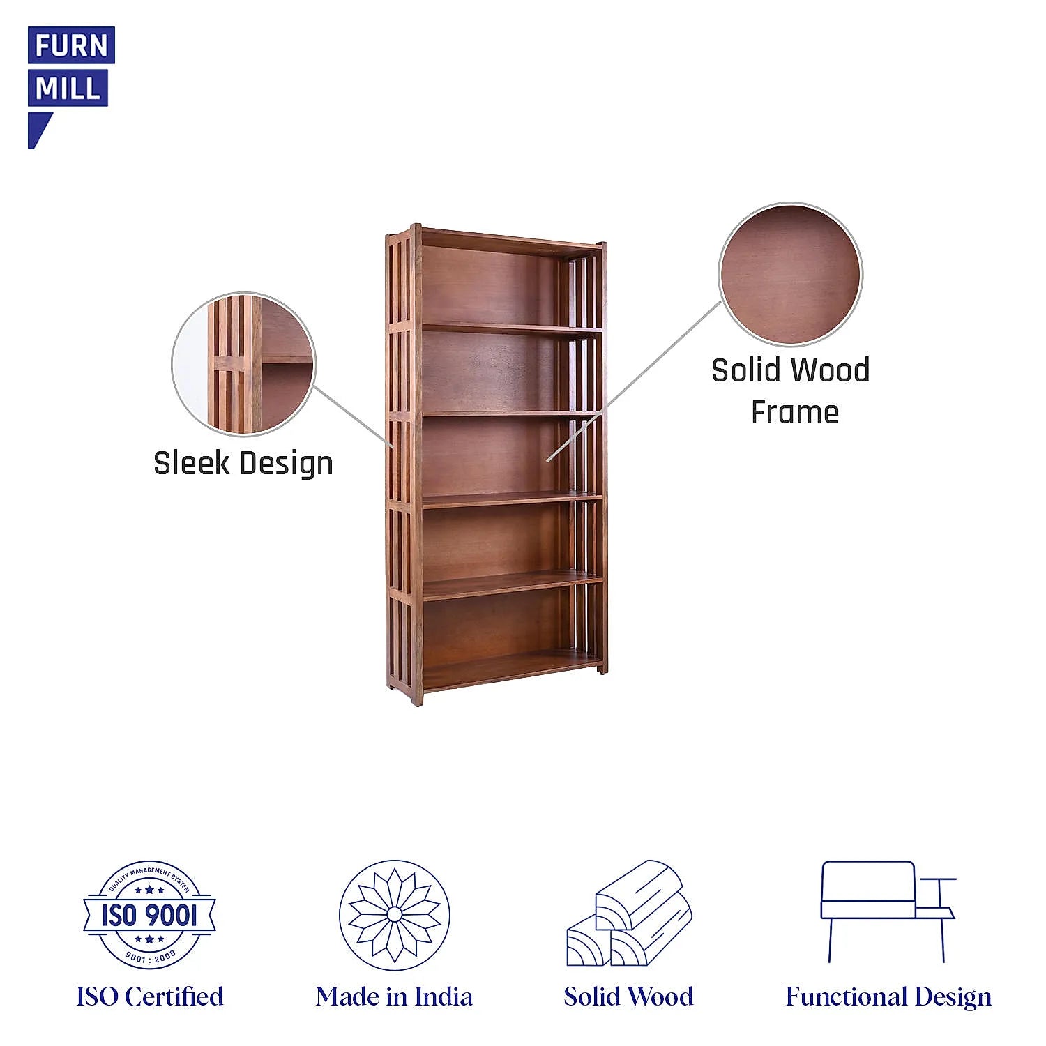Clark Wooden Bookshelf (Natural Finish)