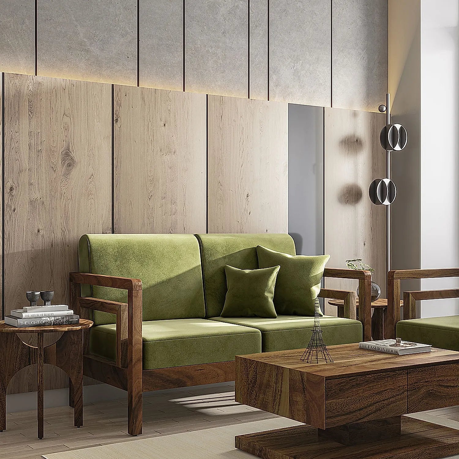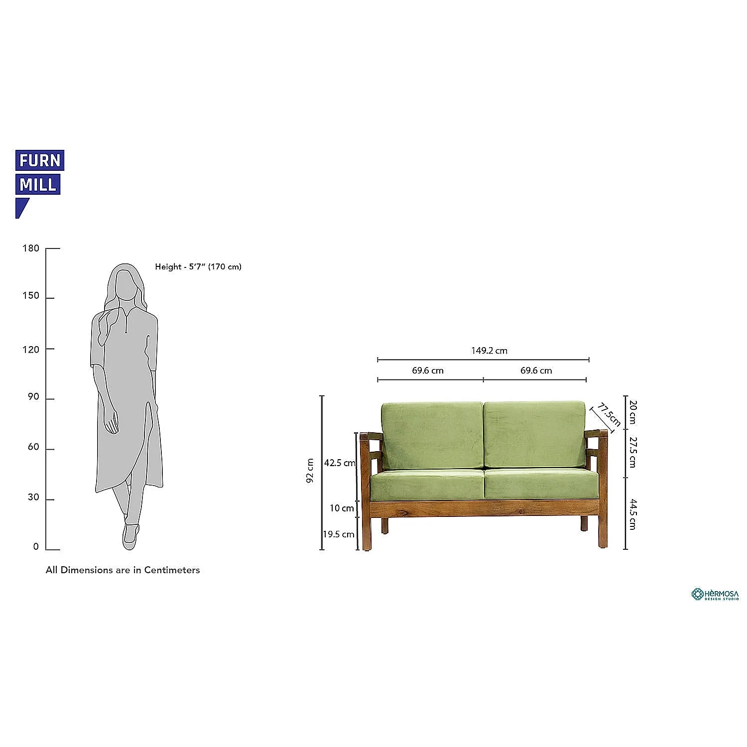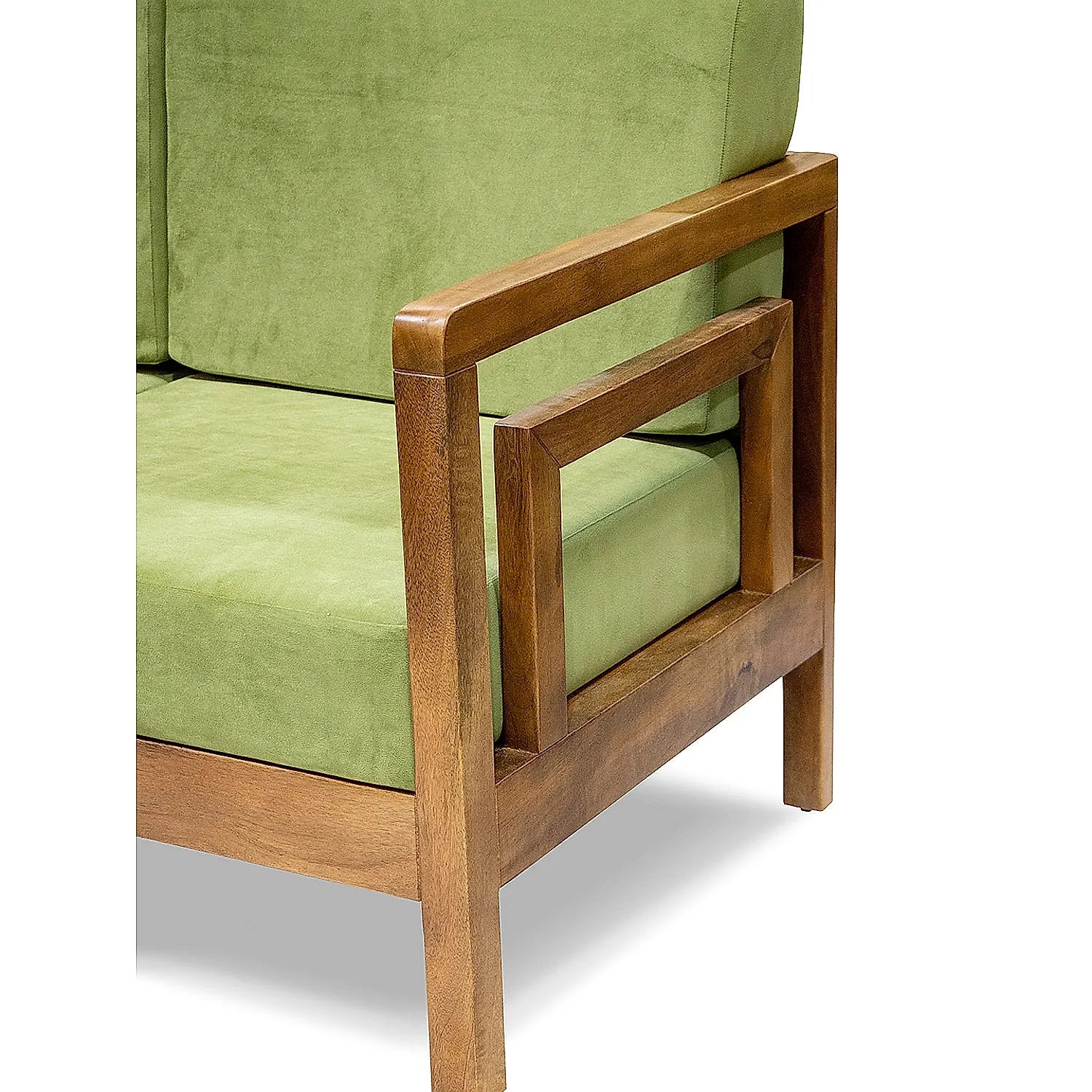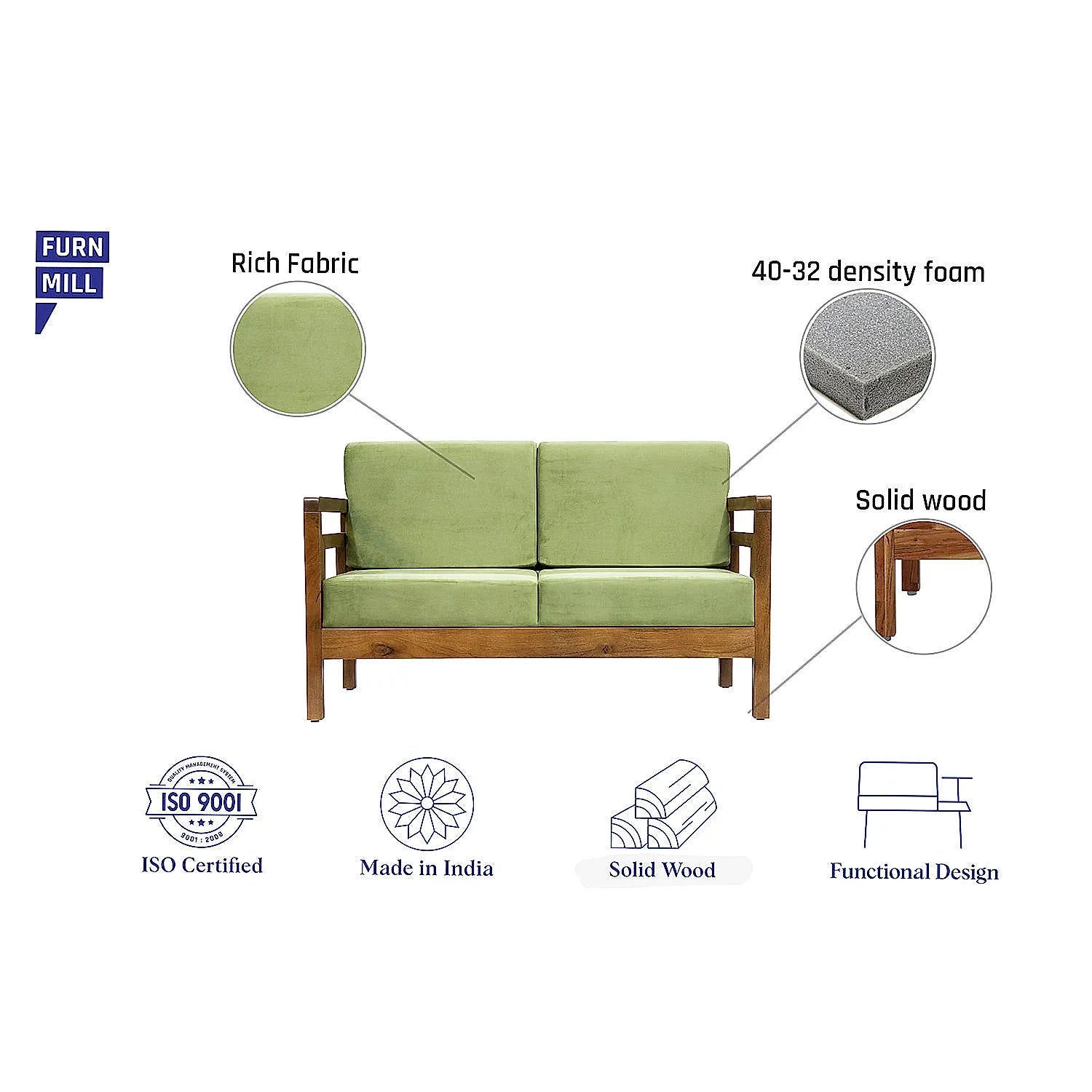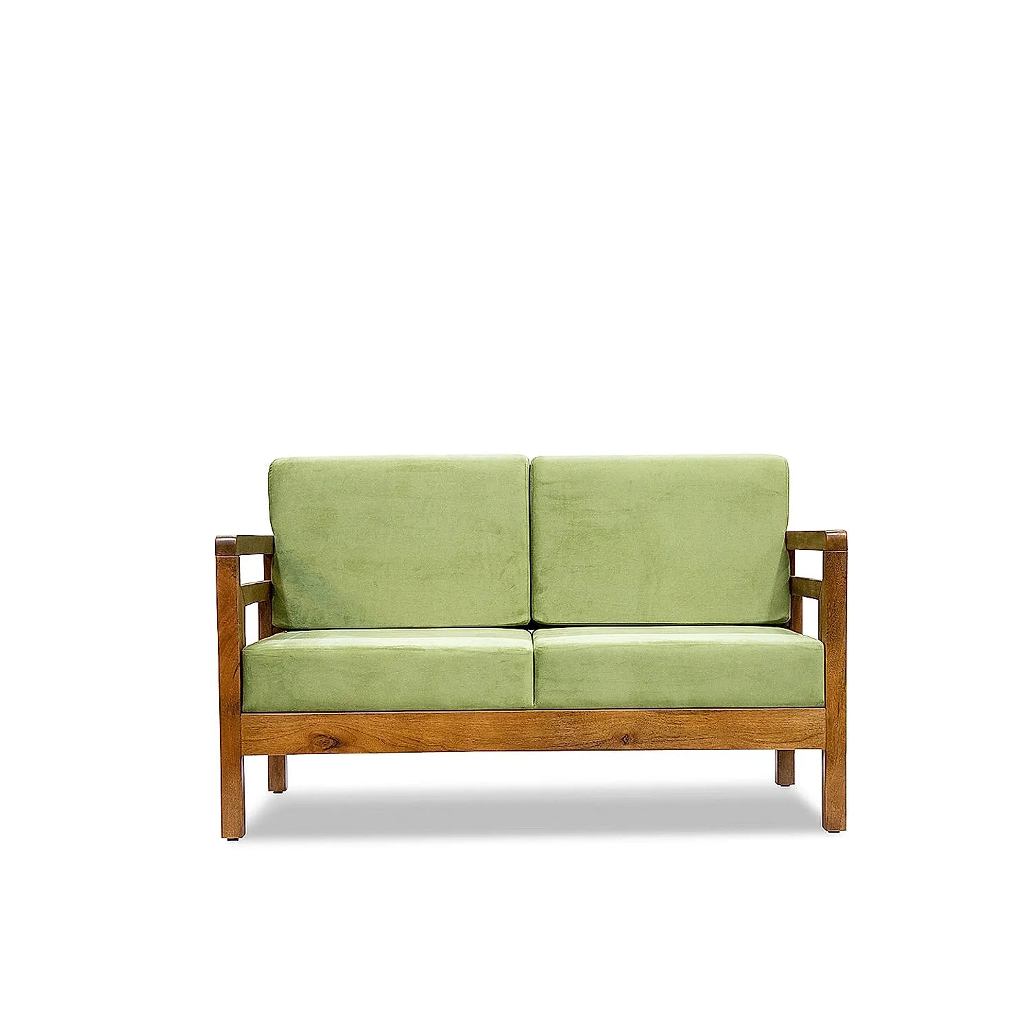 Crate 2 Seater Wooden Sofa (Velvet, Green)