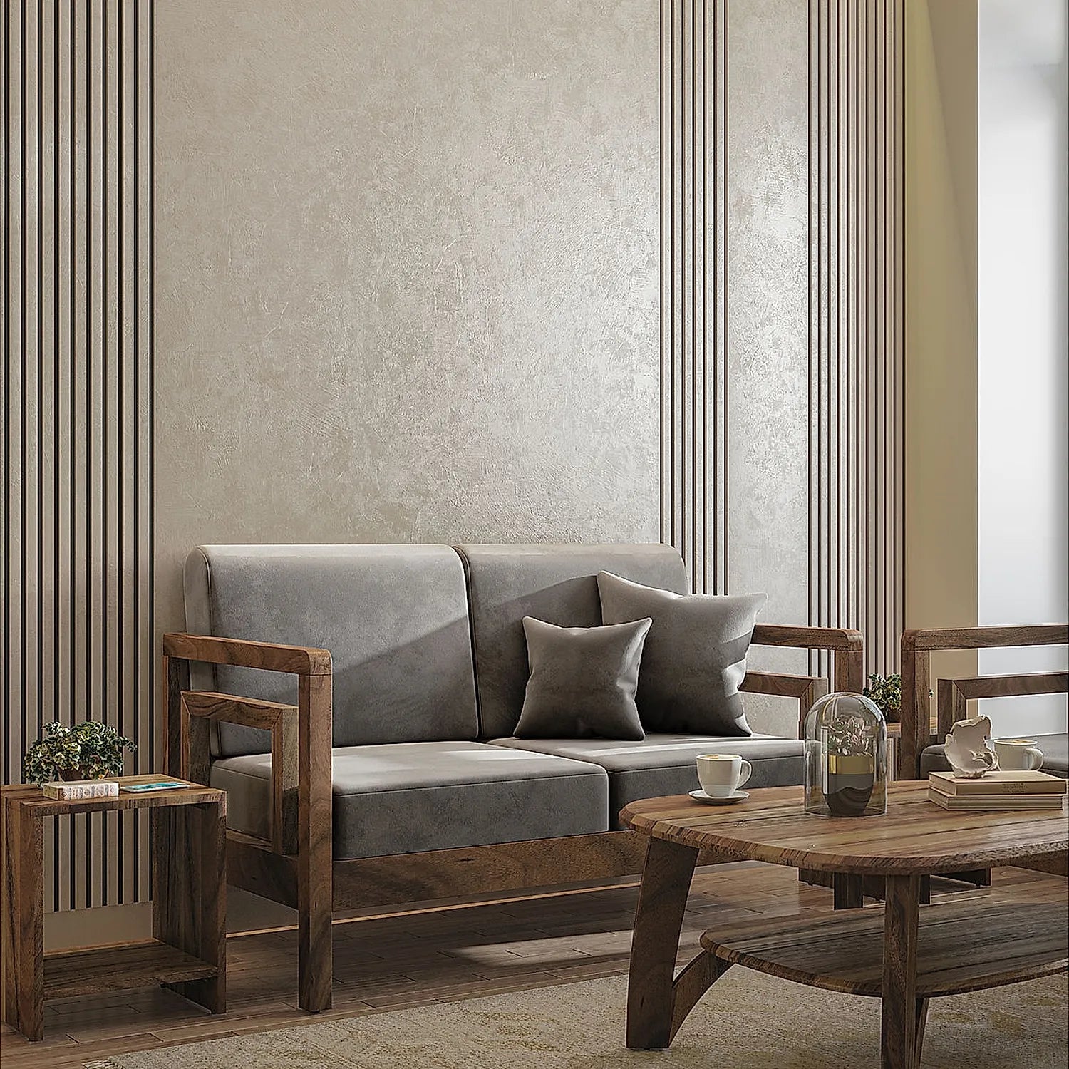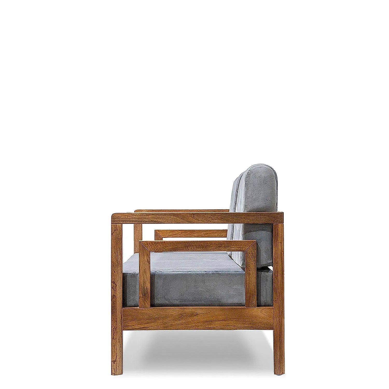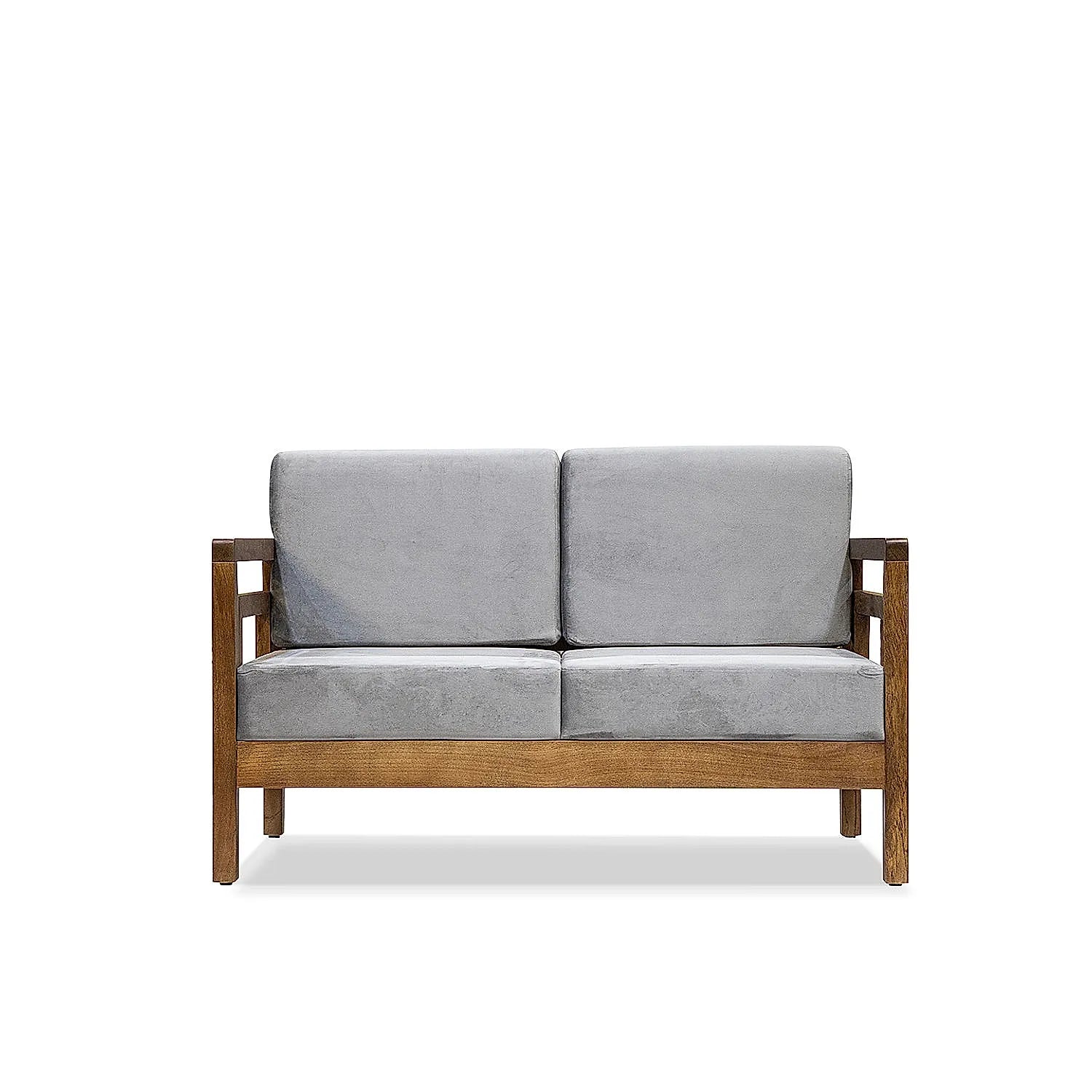 Crate 2 Seater Wooden Sofa (Velvet, Grey)