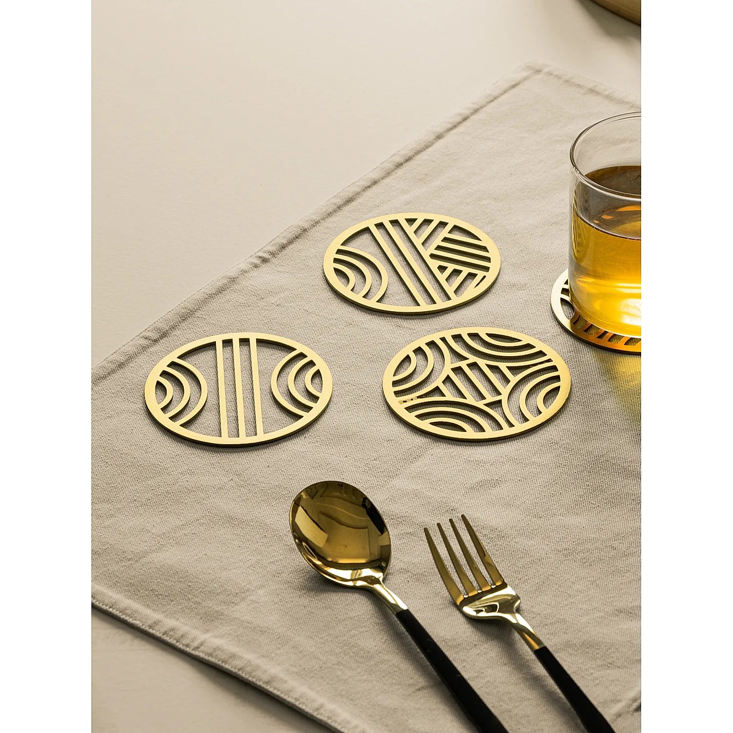 Bringing to you- The Chrysler Collection The collection is a perfect amalgamation of Furnmill's Design Philosophy and Classical French Aesthetic of Art Deco. Geometrical linearity, angular form, Sleek design, symbolize modernism with an explicit touch of tradition. The premium collection is perfect to add the right amount of bling and elegance to any setup. Crafted in stainless steel, the coasters are PVD coated with a gold finish. The intricate geometric patterns are laser cut with high-tech machinery for fine detailing while promising strength and durability.