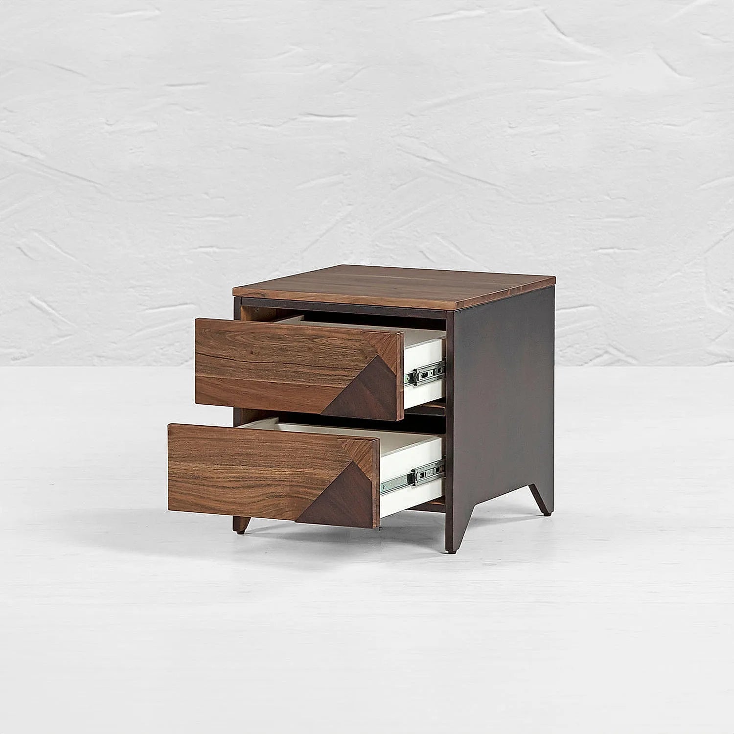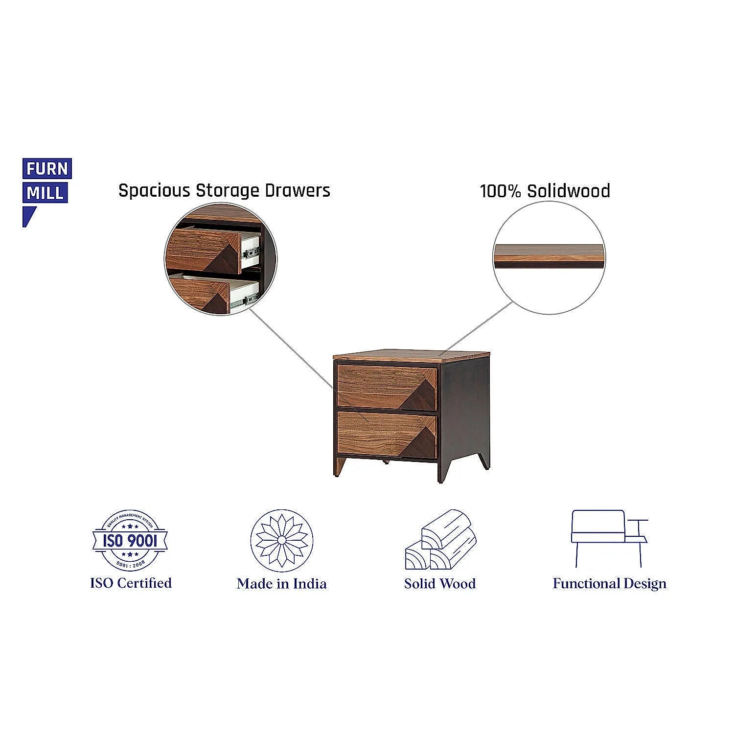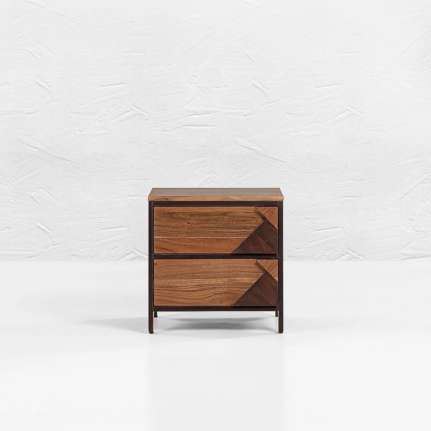 Della Bed Side Table redefines elegance with its beautiful Aztec design. The two big drawers provide with sufficient room to store essentials that you want to keep at a hand's distance.