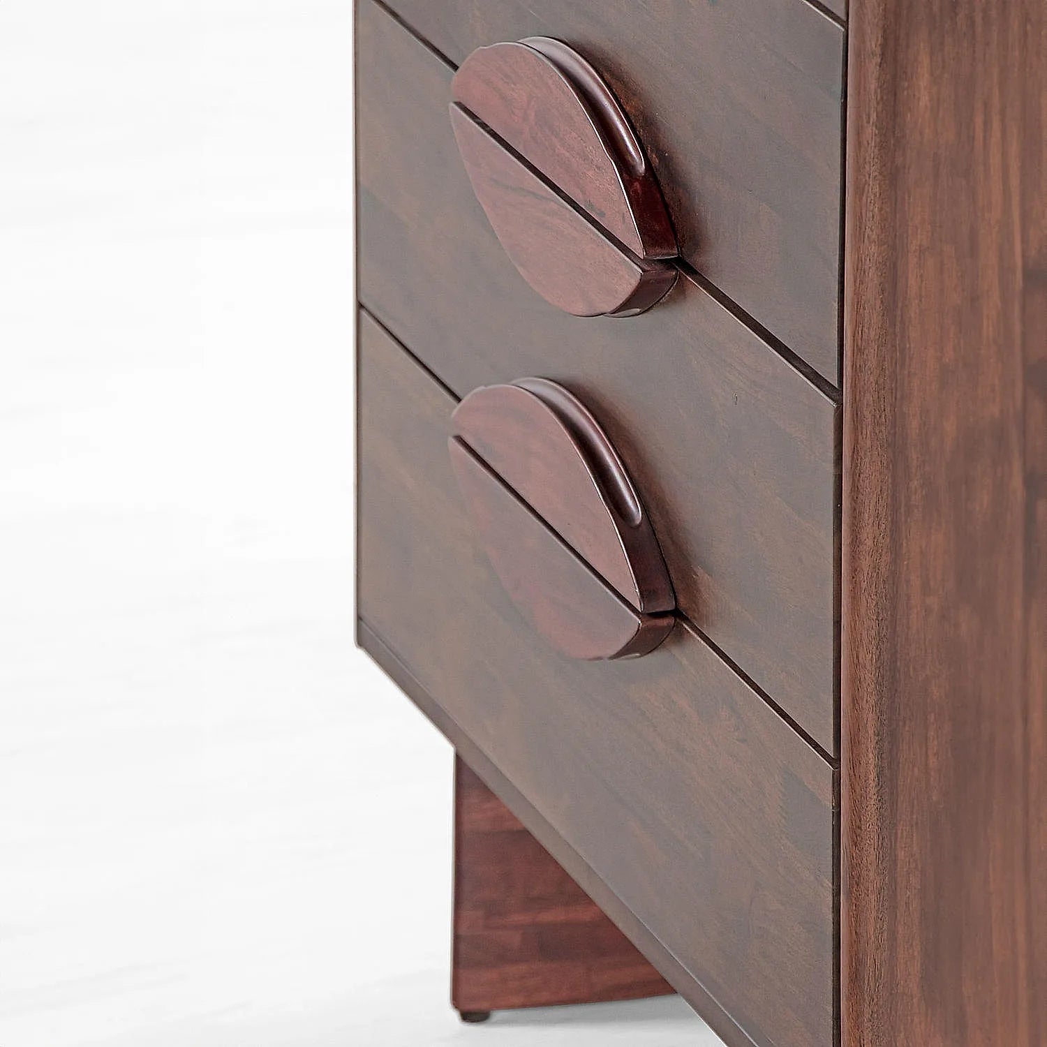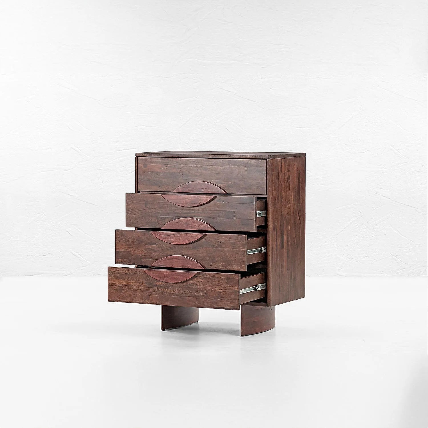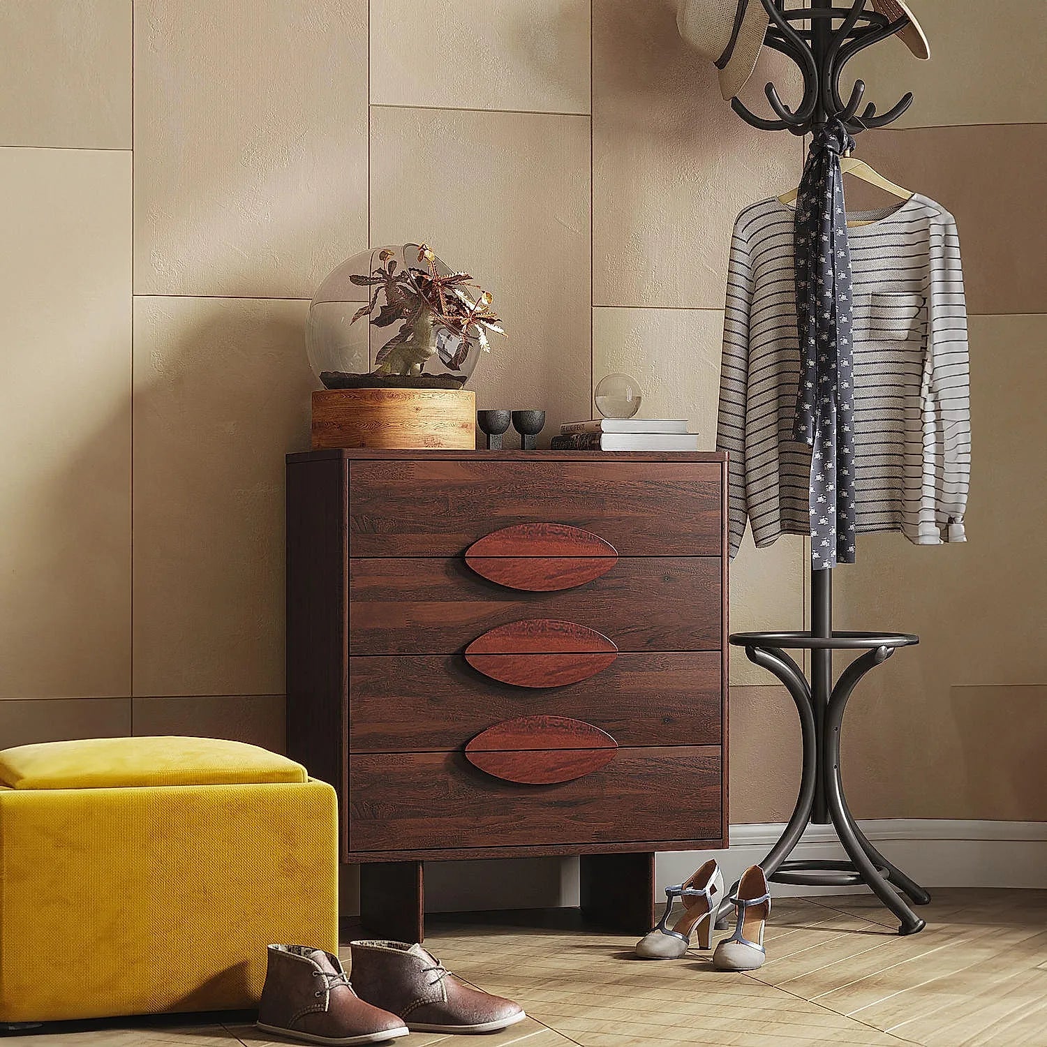 A sturdy 4 drawer chest of drawers with a simple unassuming style. The proportions strike the perfect balance between storage space and a compact footprint add a warm-nostalgic feel to the decor