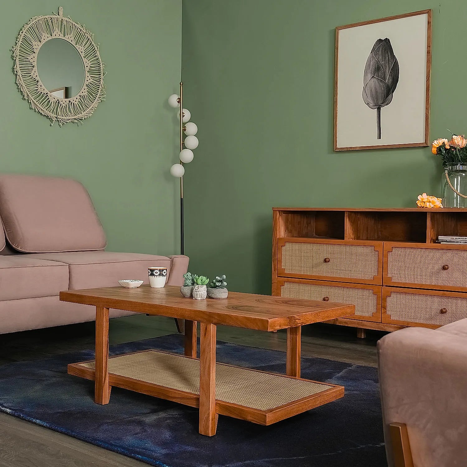 The Hilton Center table proves that simple can be simply stunning. Its rattan base gives a nod to tropical style while solid wood top exudes rustic warmth. Together they strike a balance of casual and chic that's ideal for any living room. However you style it, this table's minimalist yet impactful design acts as a natural focal point in your space. Who knew something so uncomplicated could make such a statement
