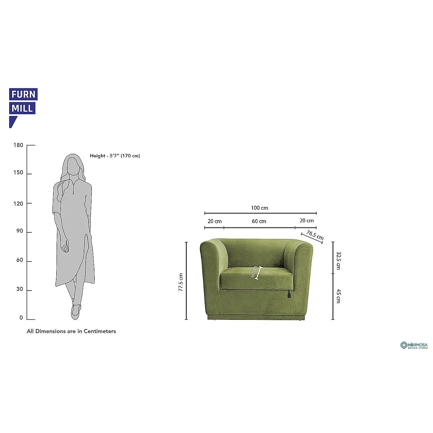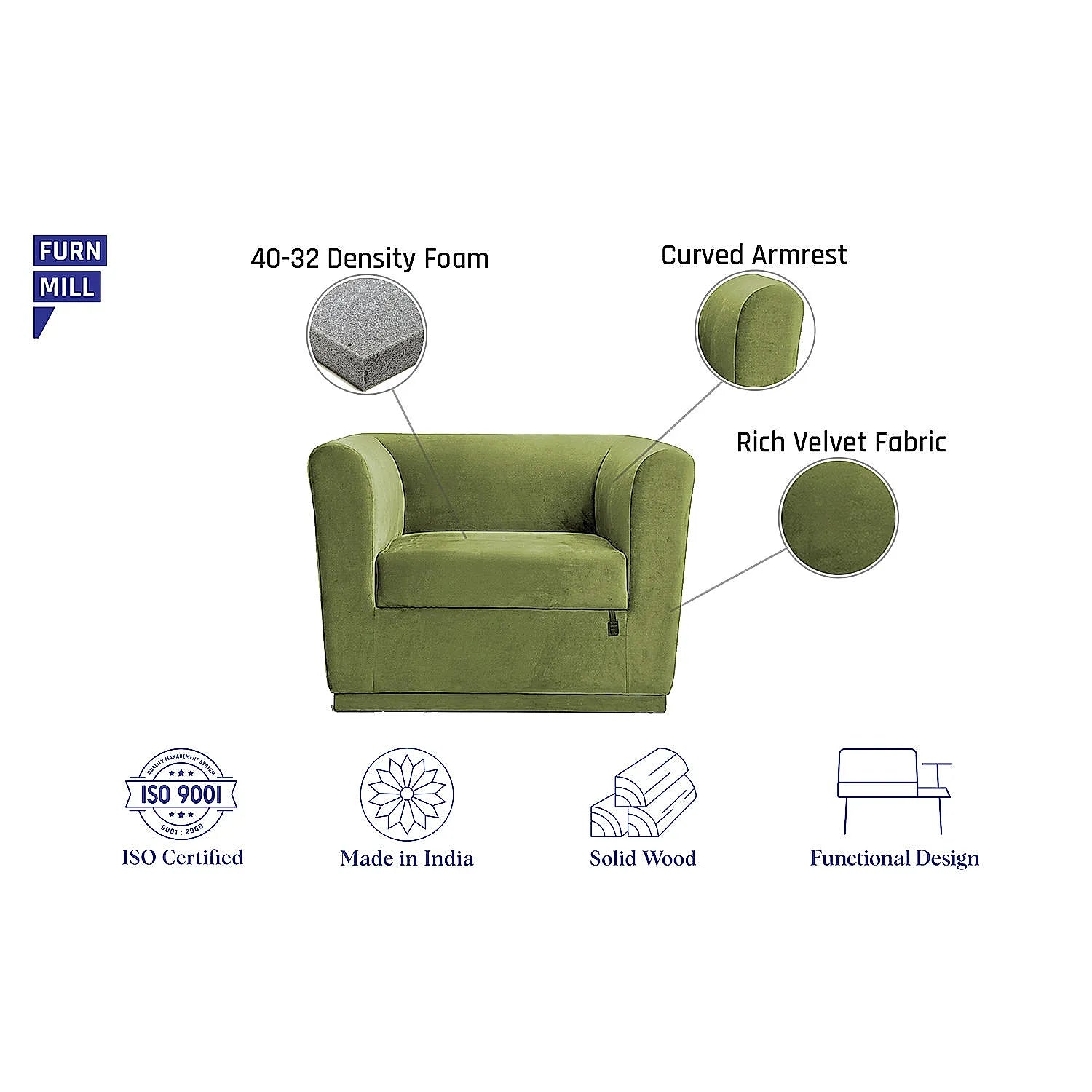 Hudson 1 Seater Fabric Sofa (Velvet, Green)