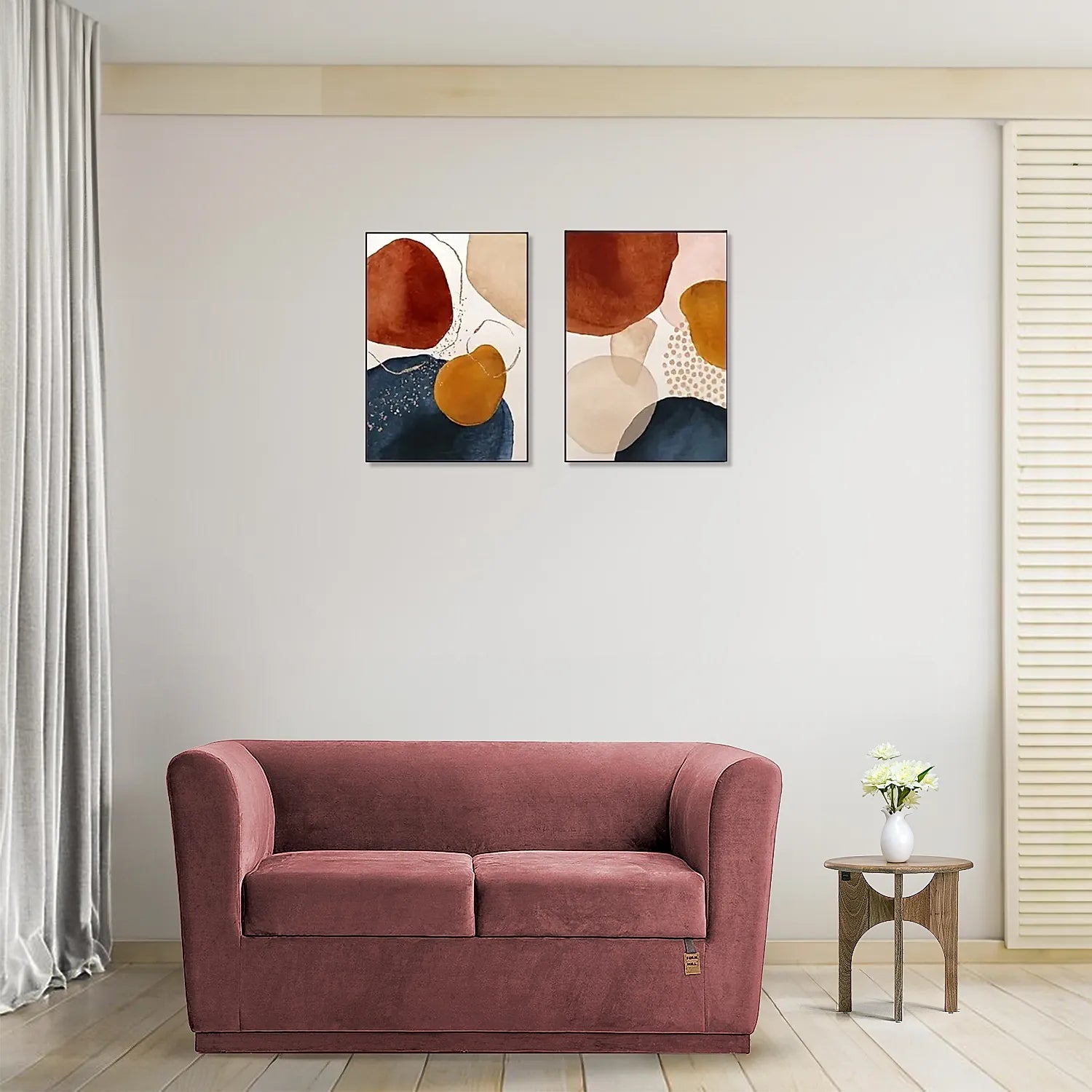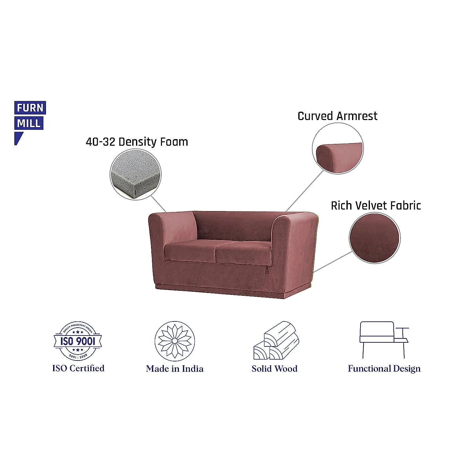 The Hudson 2-seater solid wood mauve velvet sofa is a blend of elegance and comfort. This 2-seater velvet wooden sofa is made up of soft upholstery fabric to give you an urban feel in a chic way. This comfortable fabric sofa goes great with your bedrooms, lounge areas, or living rooms. Decorate it with vibrant color cushions or contrasting layers and throws.