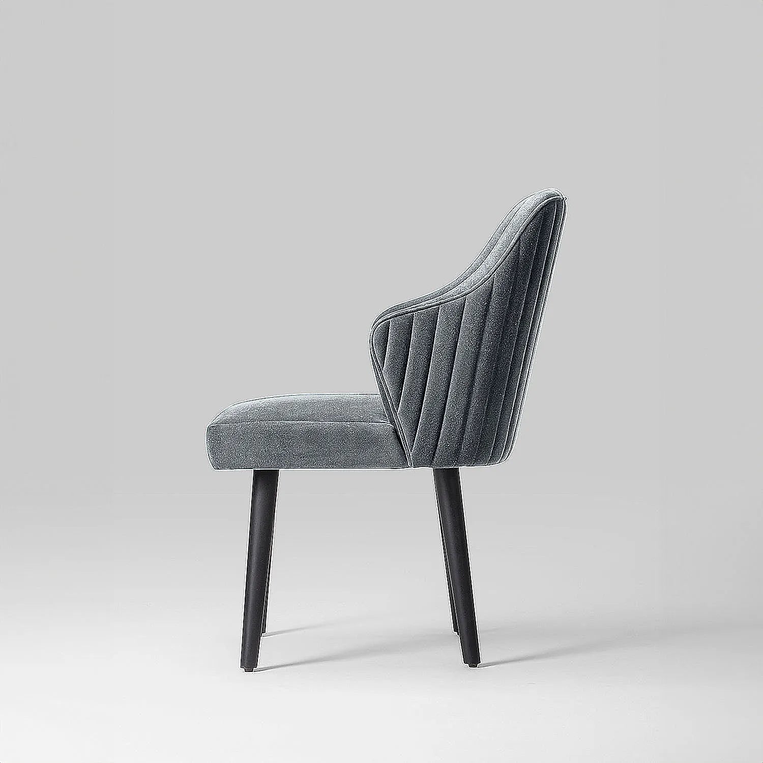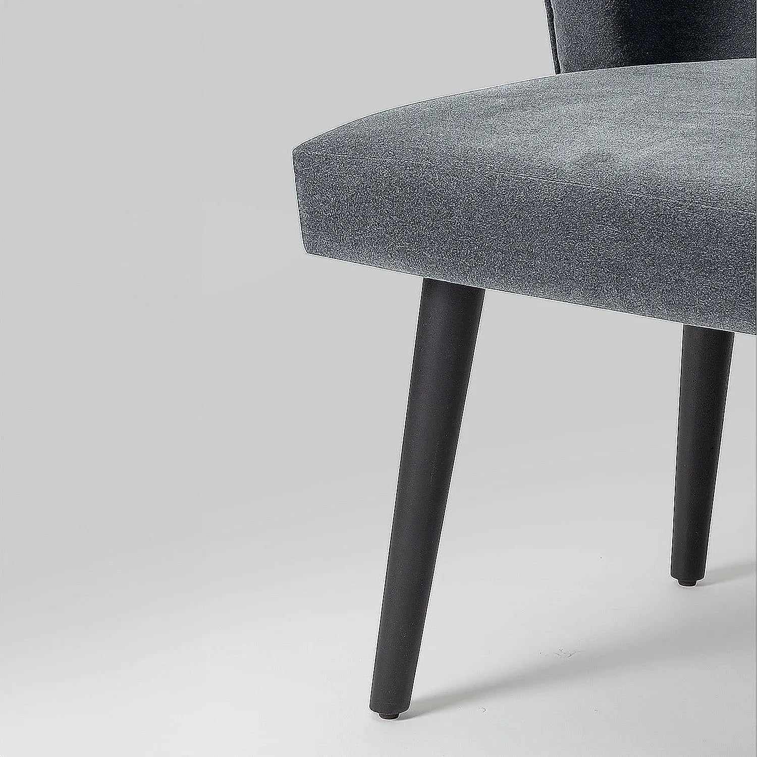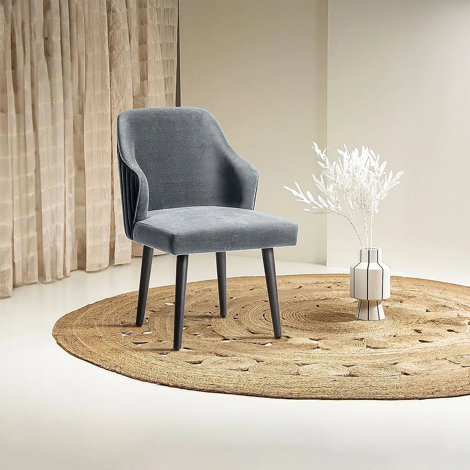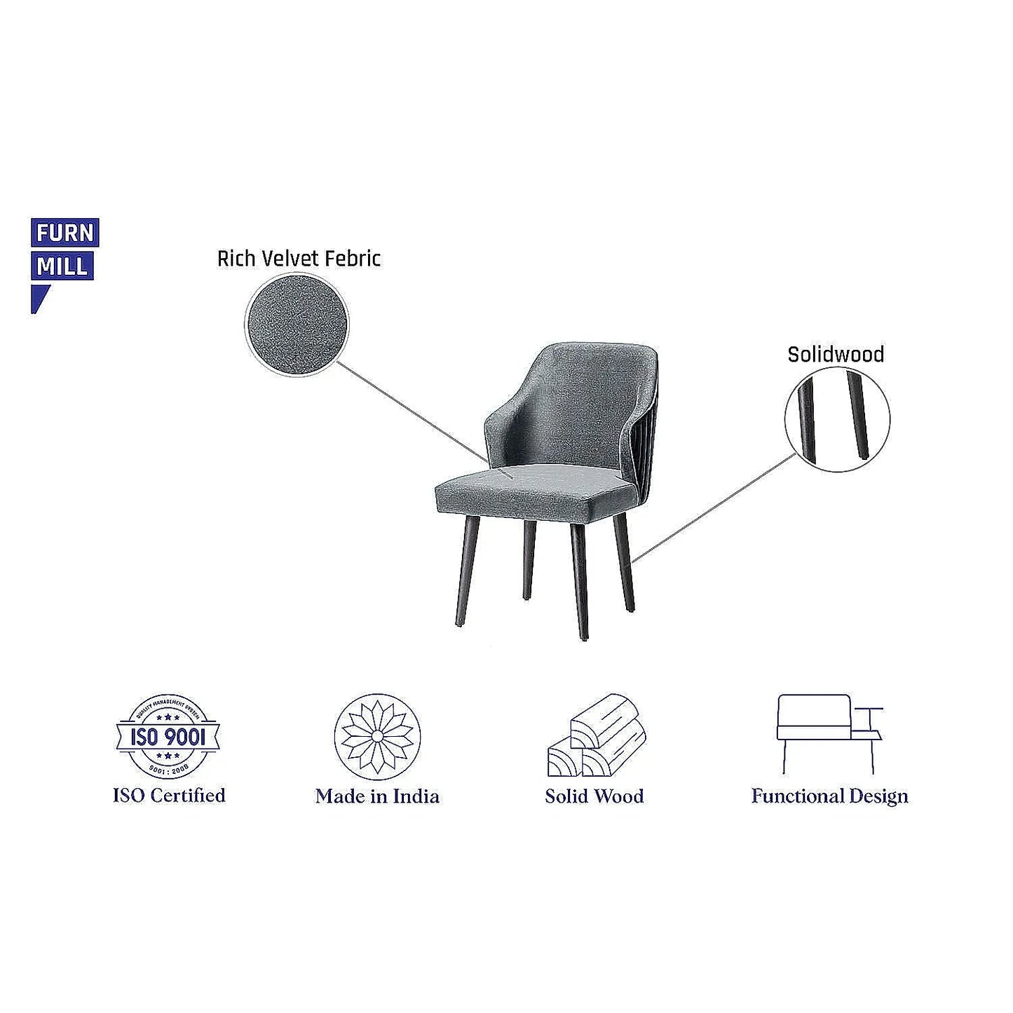 Hugo Wooden Accent Chair ( Grey Velvet Fabric, Ebony Finish )