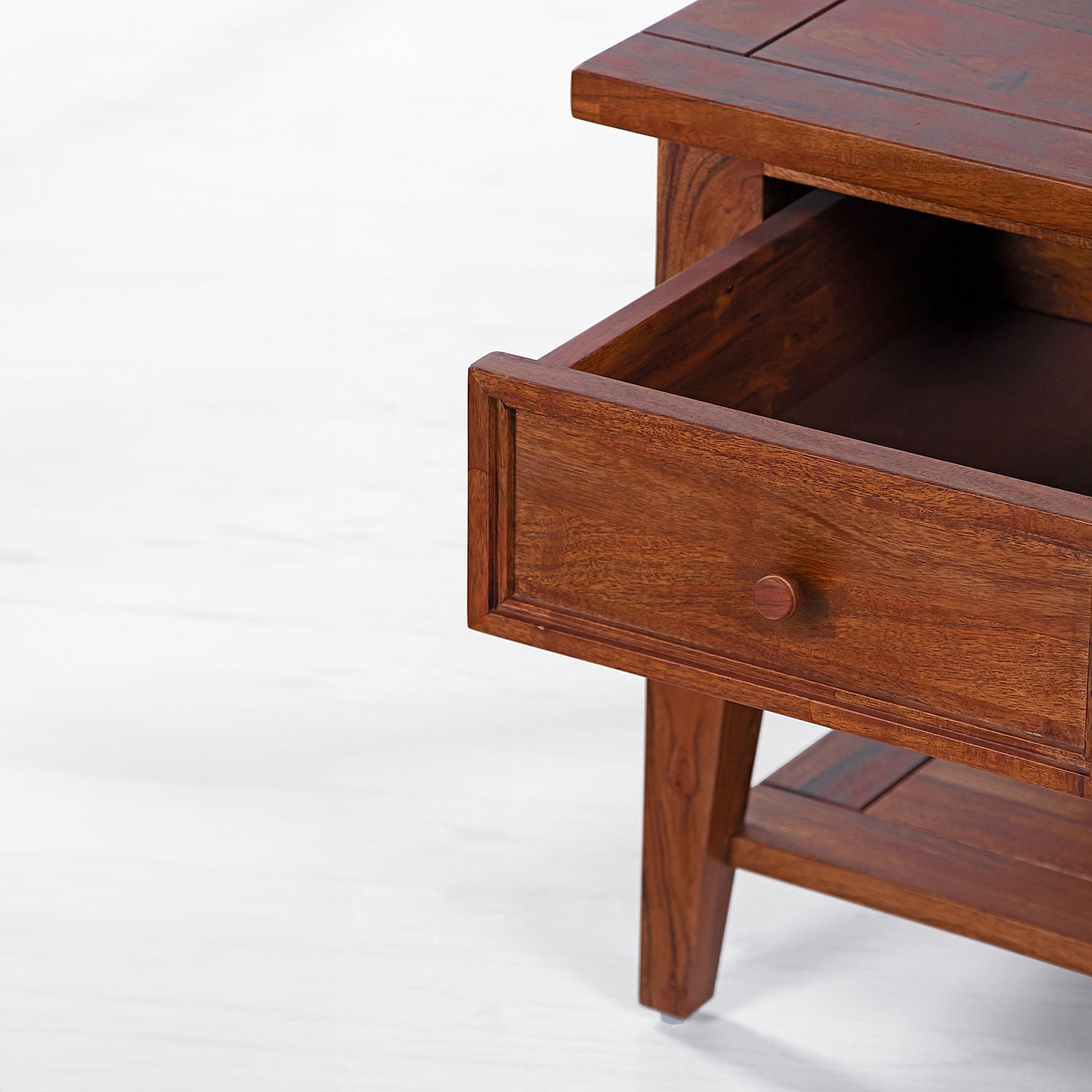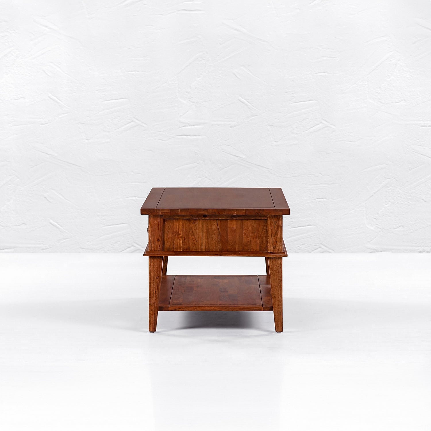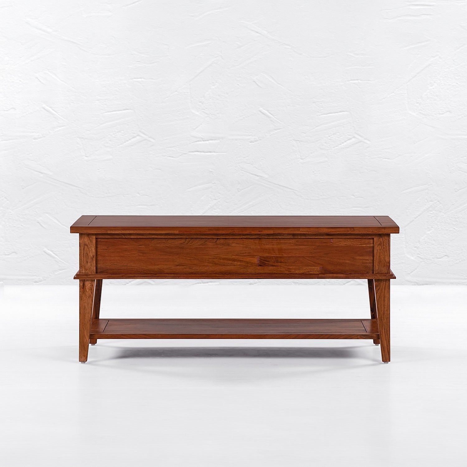 Jasmine Center Table attributes 3 drawers and a low-lying support shelf for added space. The unadorned top provides a seamless surface and allows the natural luster of the wood to take center stage. The whole unit stands on graciously angeled corner feet providing the ideal balance & stability