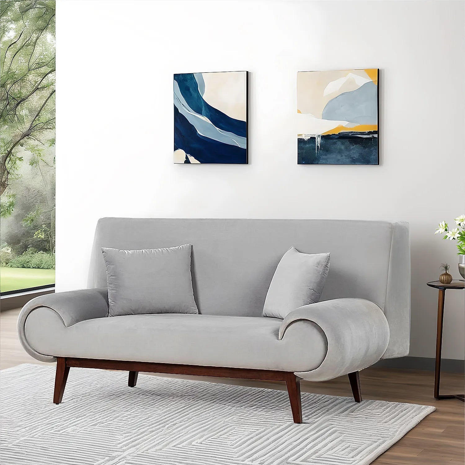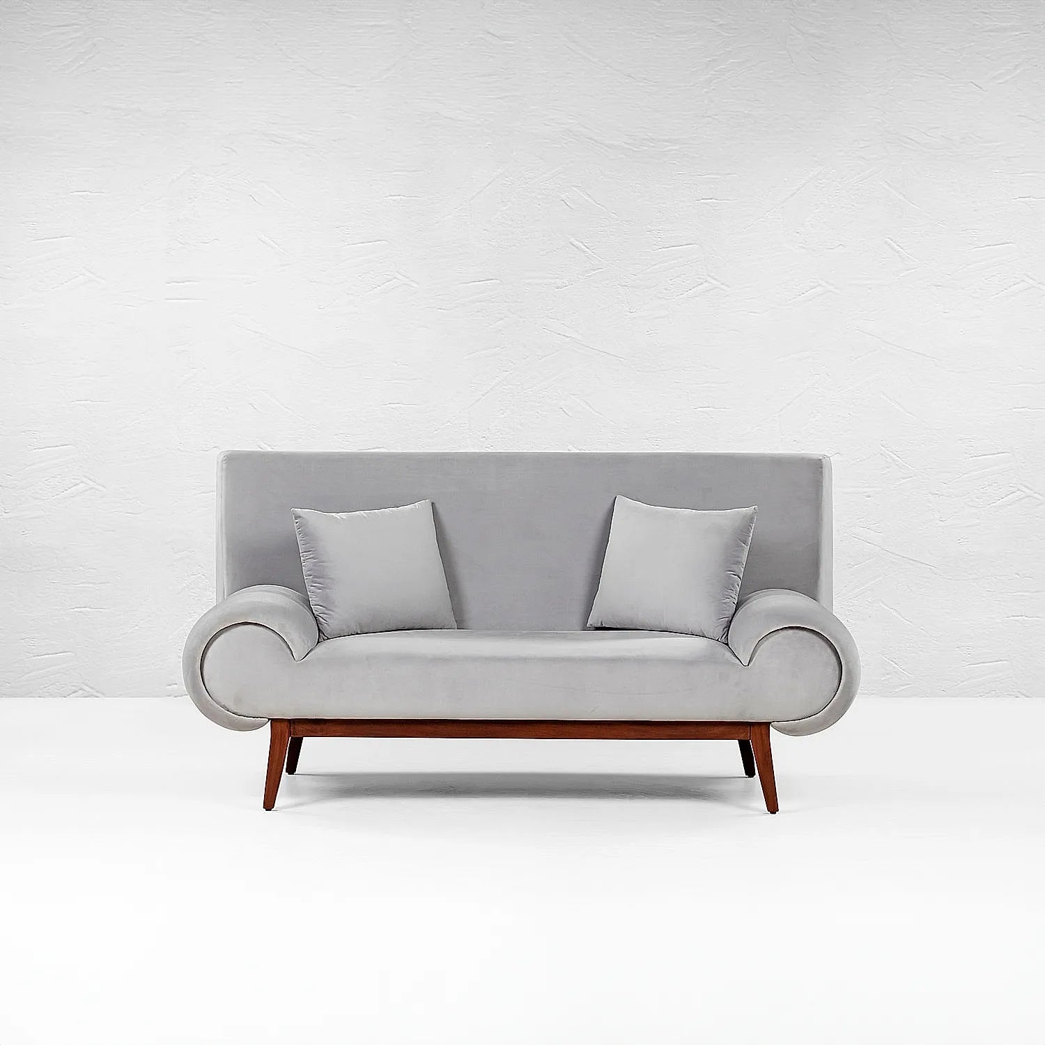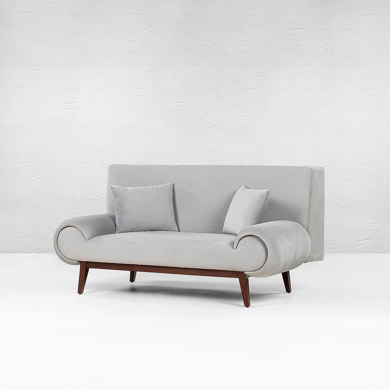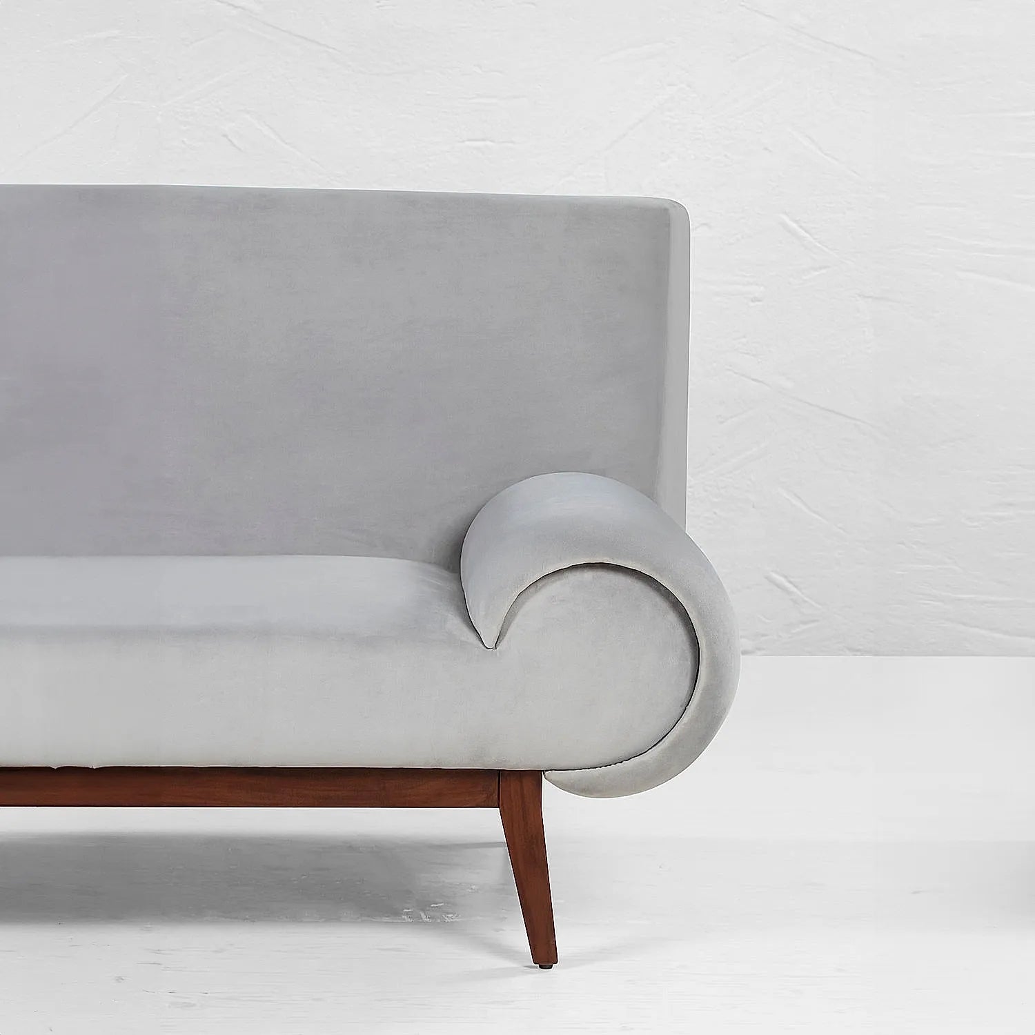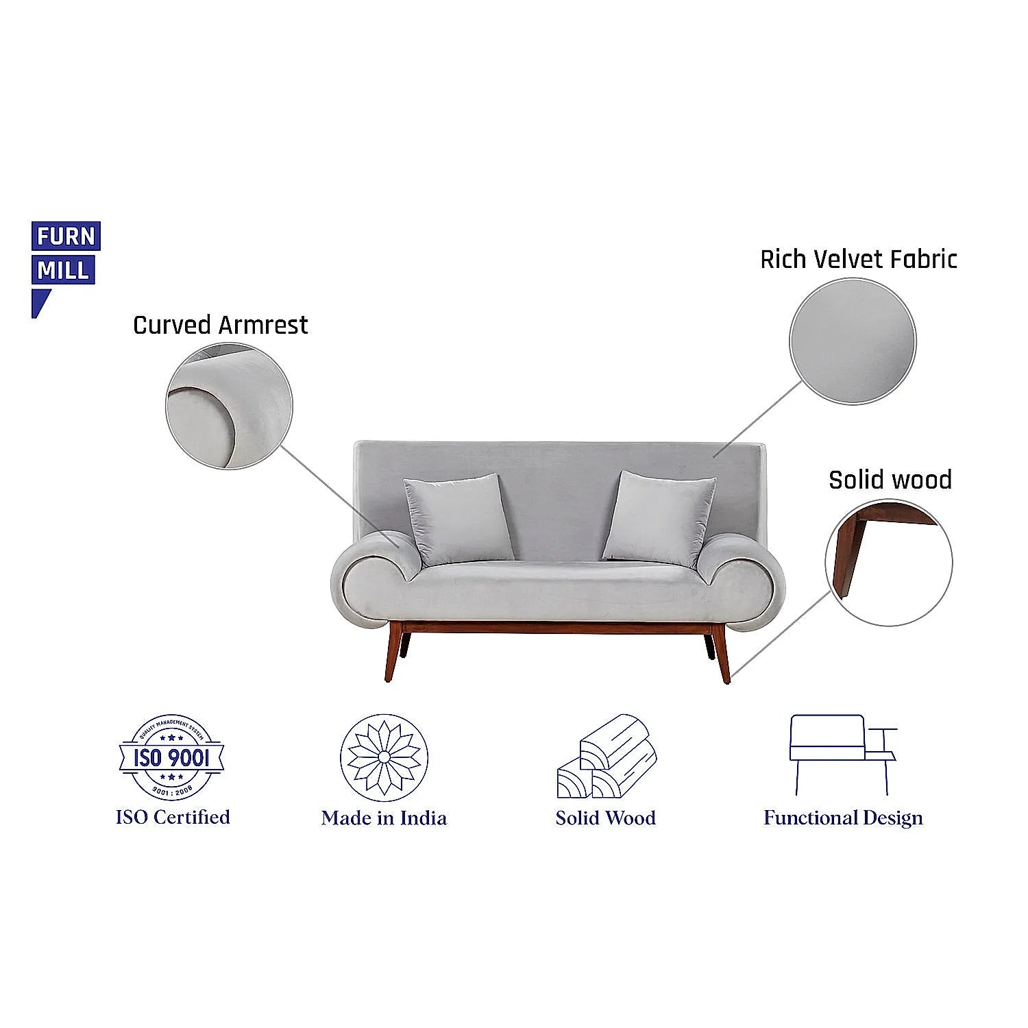 Kow Tow 2 Seater Wooden Sofa (Velvet, Grey)
