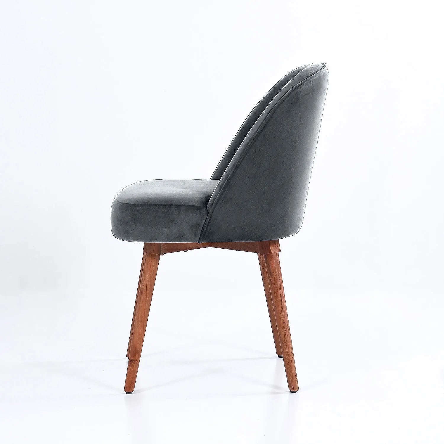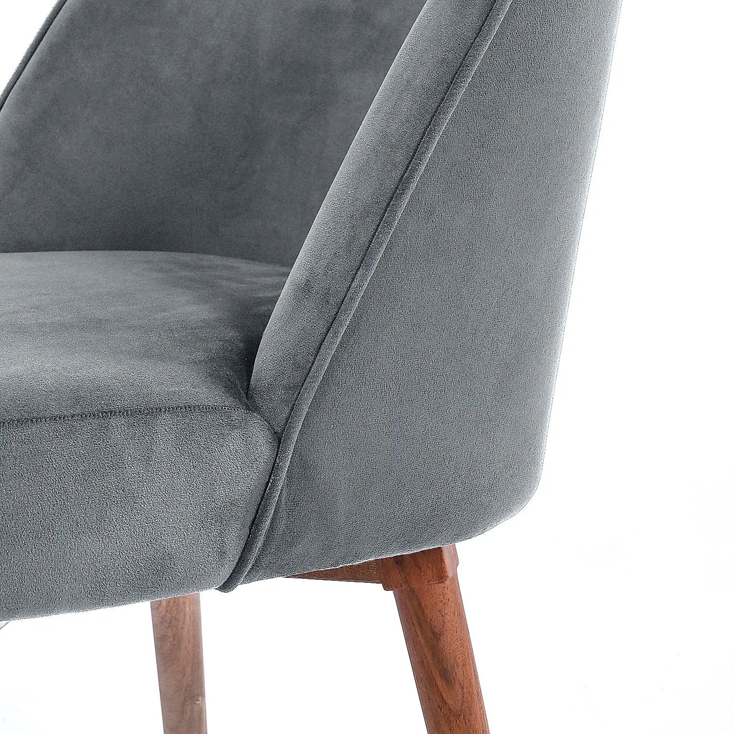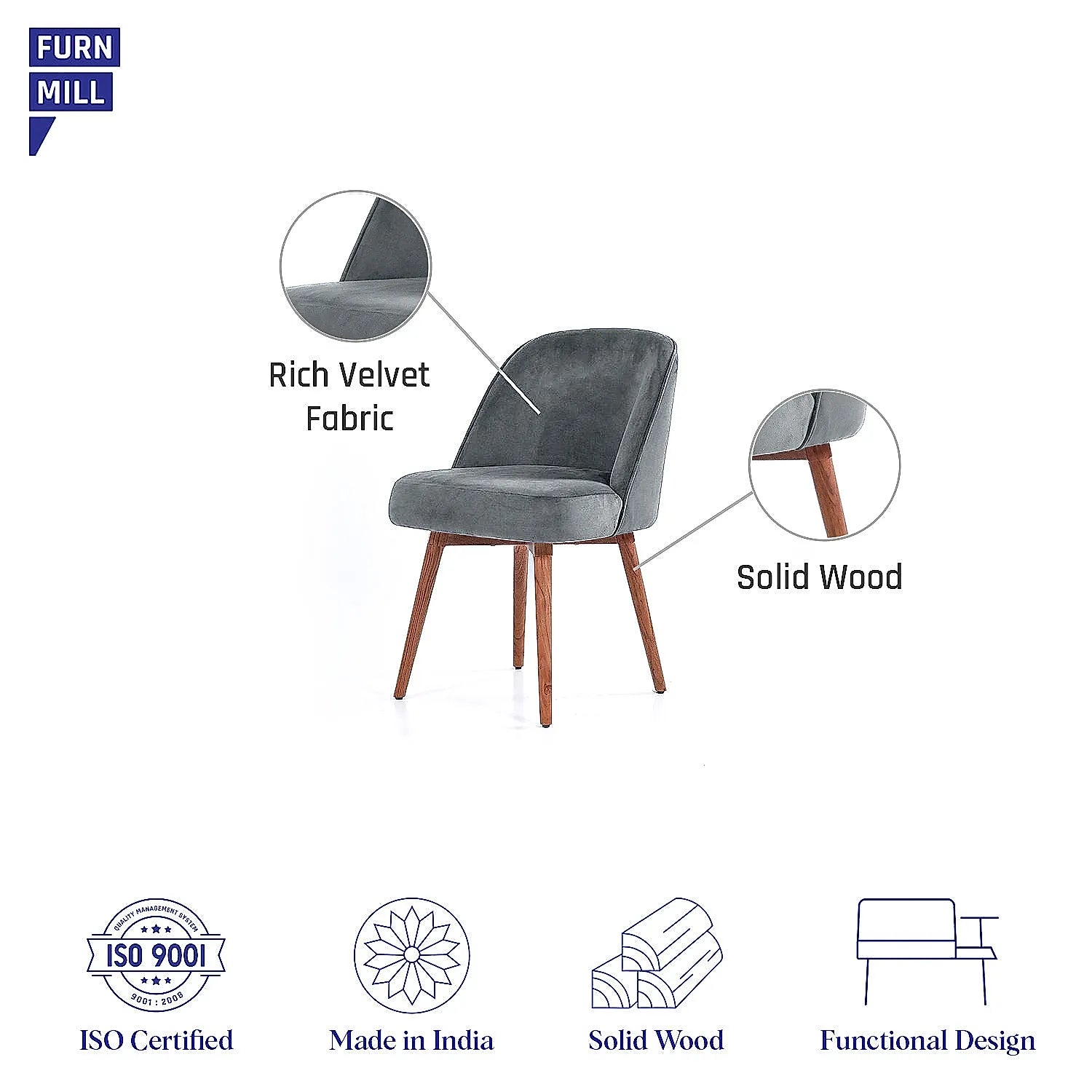 Lugo Wooden Accent Chair ( Grey Velvet Fabric, Natural Finish )