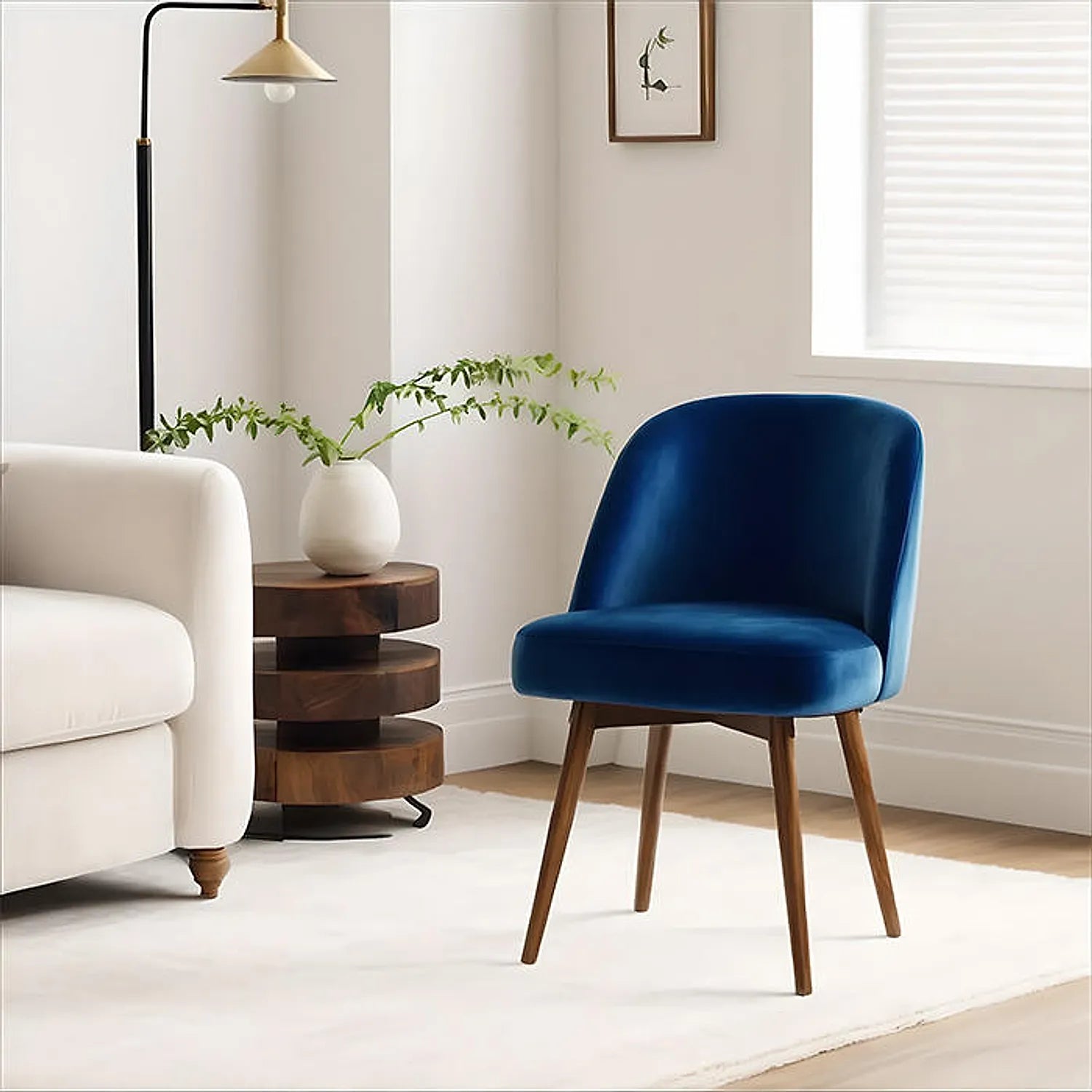 Furnmill's Lugo Accent Chair features a curved back and plush seat cushion that invite you to cozy up with your latest read or curl up for a catnap. Four tapered wooden legs provide sturdy support while adding a touch of natural warmth. Whether used as a standalone statement piece or paired with a sofa, the Lugo Accent Chair timeless silhouette and fabric upholstery seamlessly blend into a variety of decor styles from mid-century modern to bohemian chic. However you choose to use it, one thing is certain-this accent chair was made for unwinding.