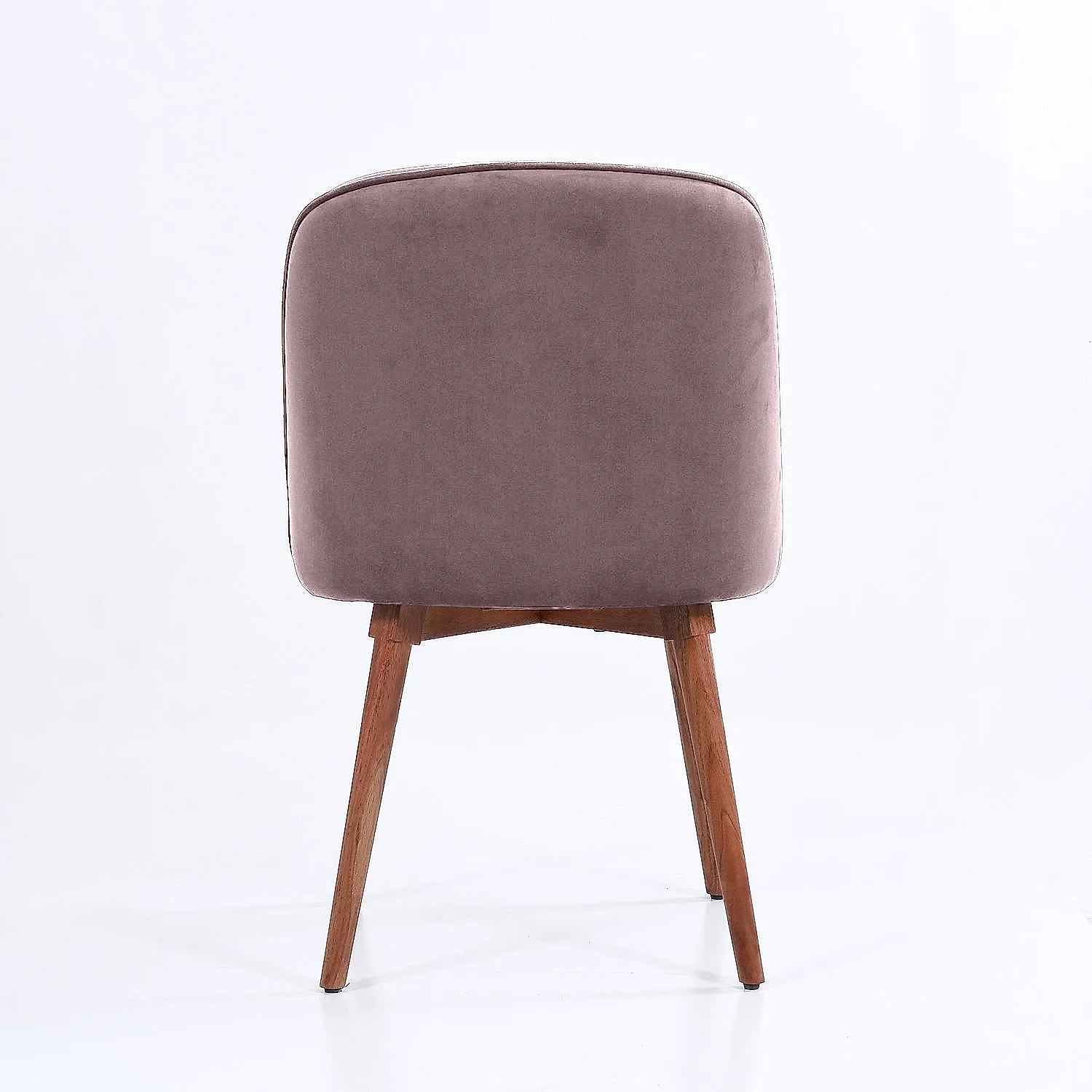 Lugo Wooden Accent Chair ( Pink Velvet Fabric, Natural Finish )