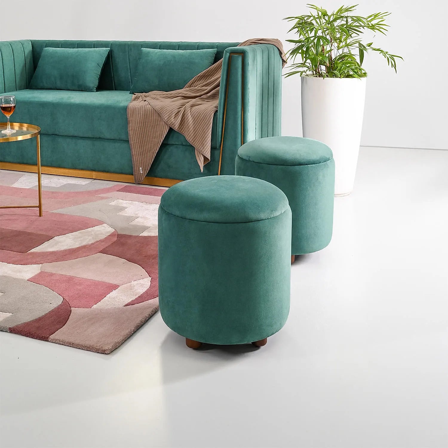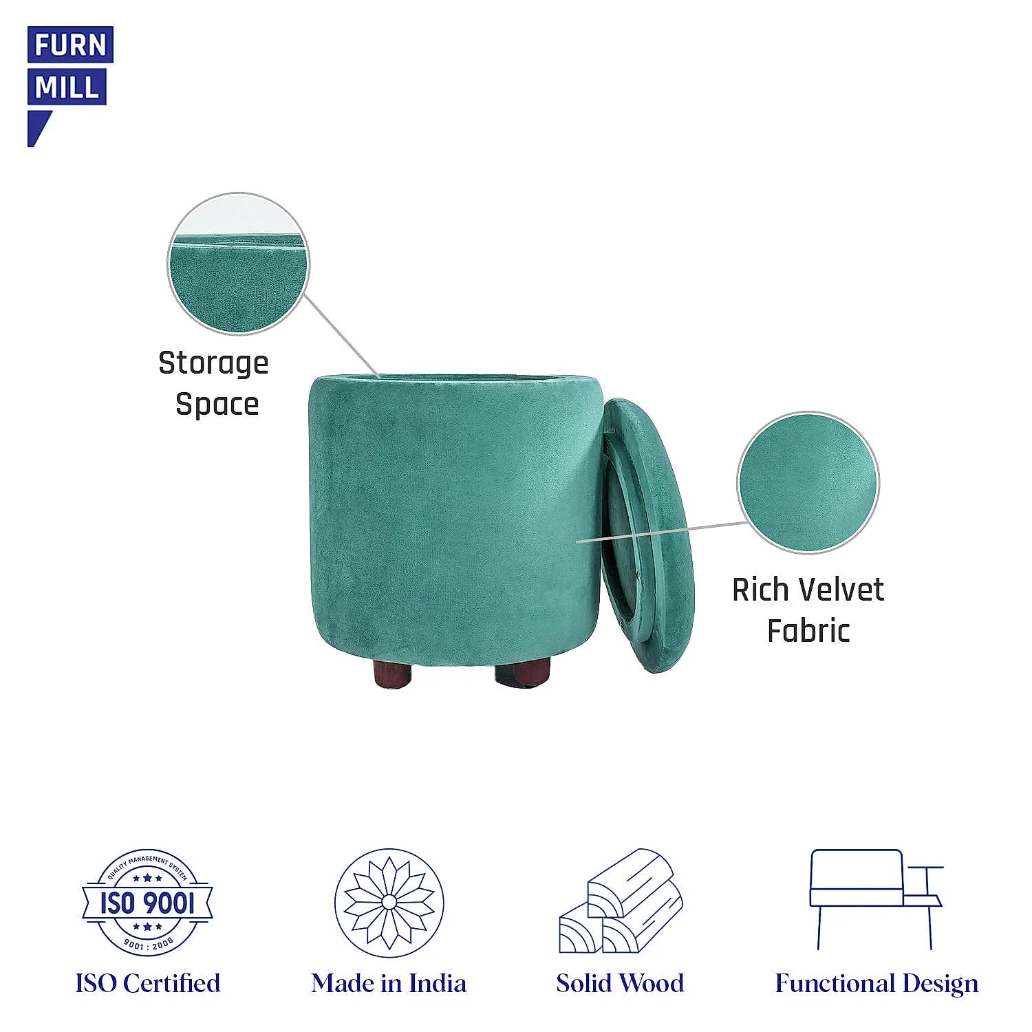 Luxor Storage Ottoman in Sea Green Color