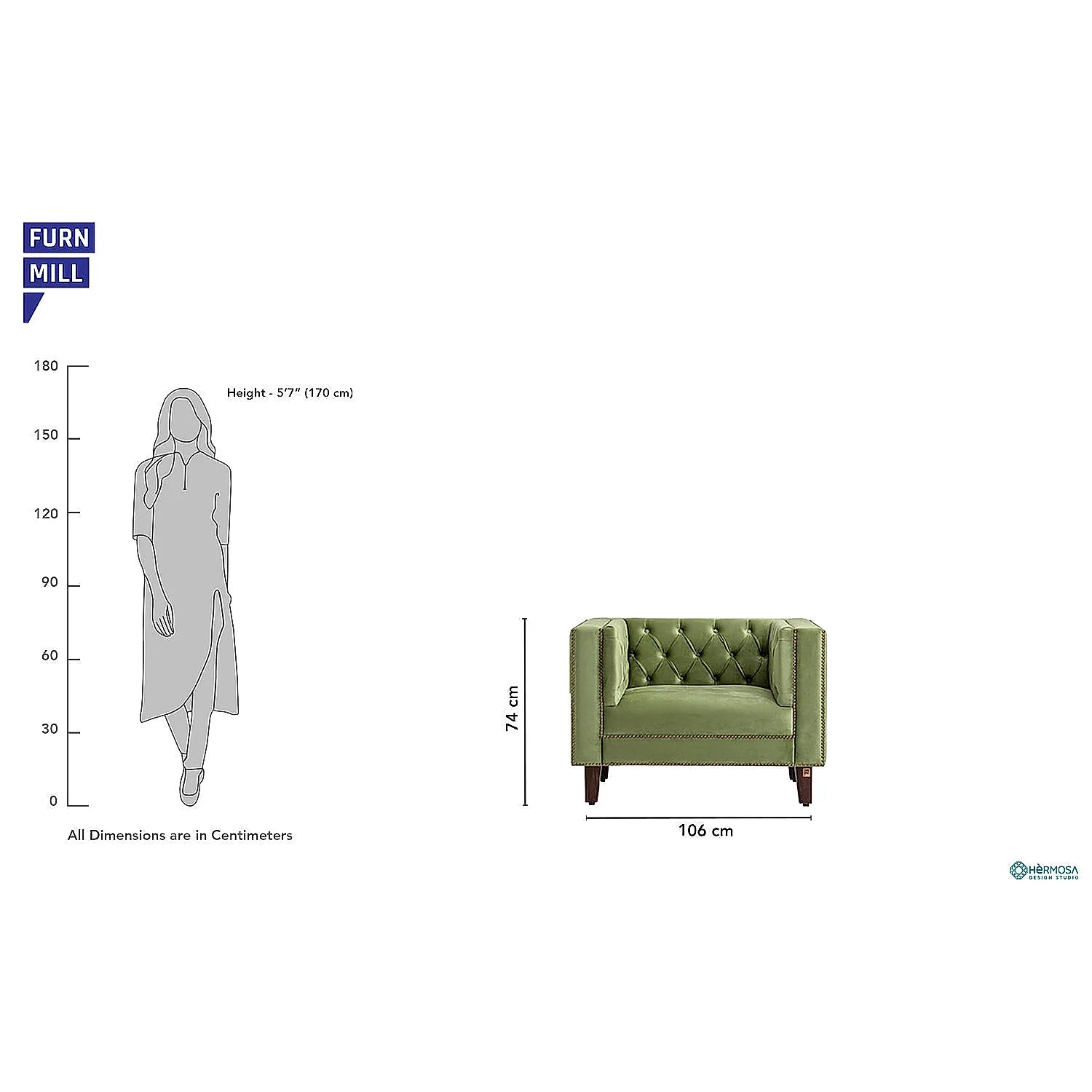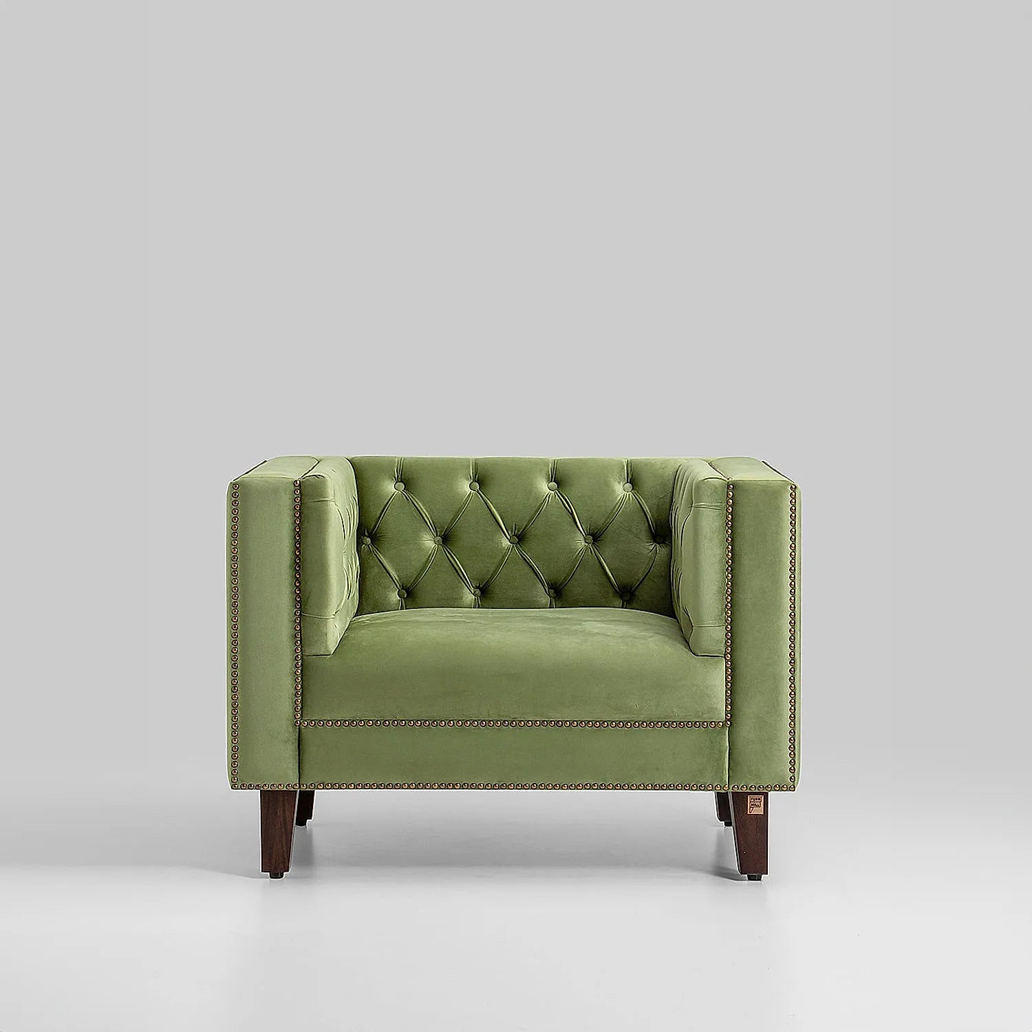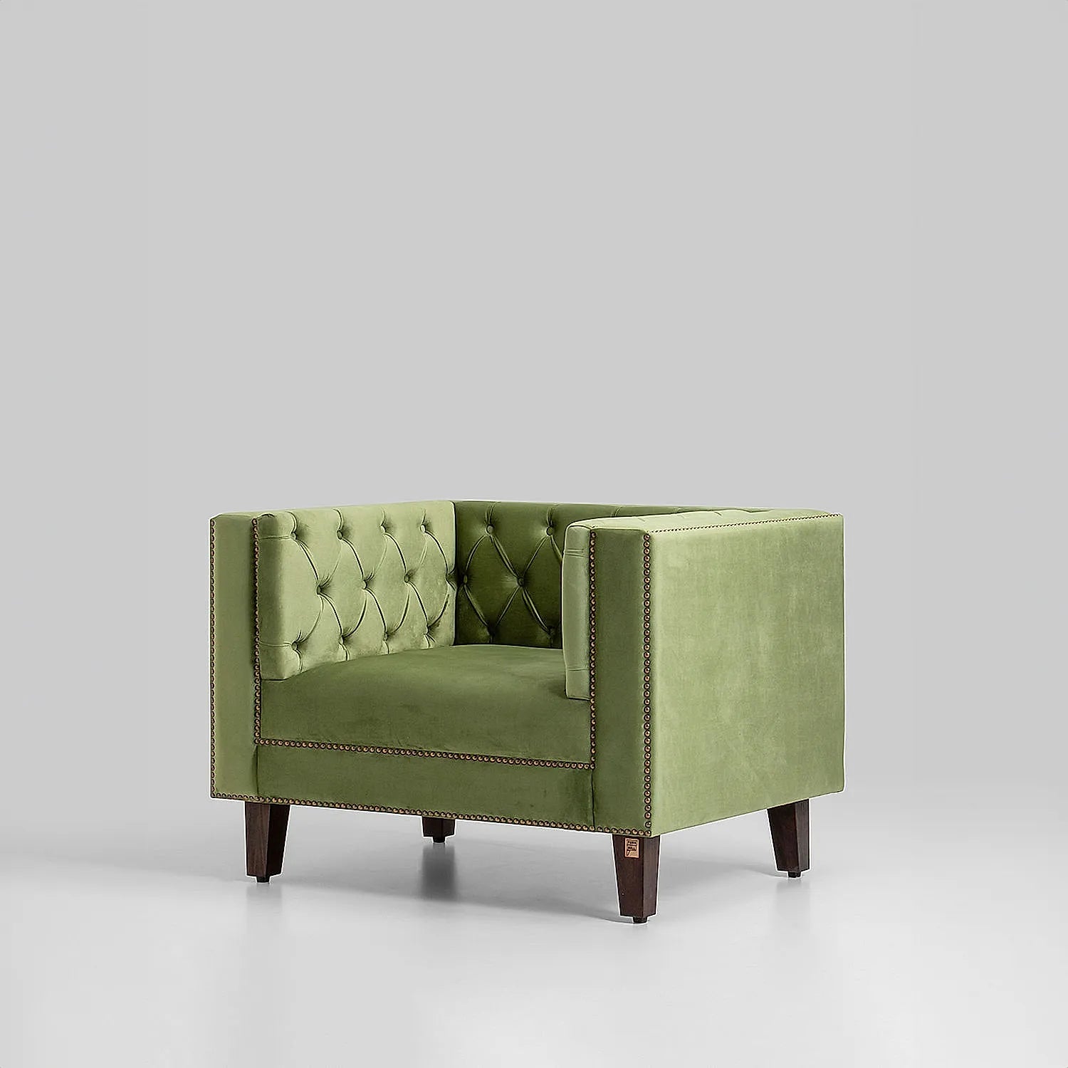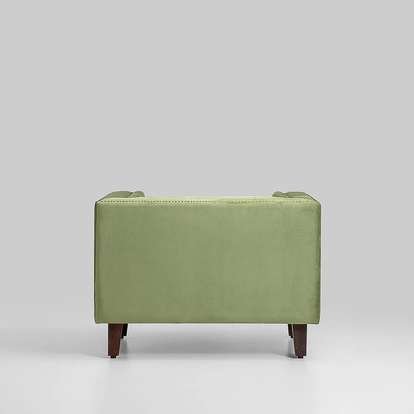 Designed beautifully, this lavish Manchester 1-seater solid wood velvet sofa will turn all heads in the room. Crafted in block green body with dark walnut finished legs, this pretty decorative upholstered furniture is super comfy and pleasurable. The luxe design of this piece is enough to grab the attention of everyone. You can use it with multi-coloured cushions, vibrant throws or even on its own.