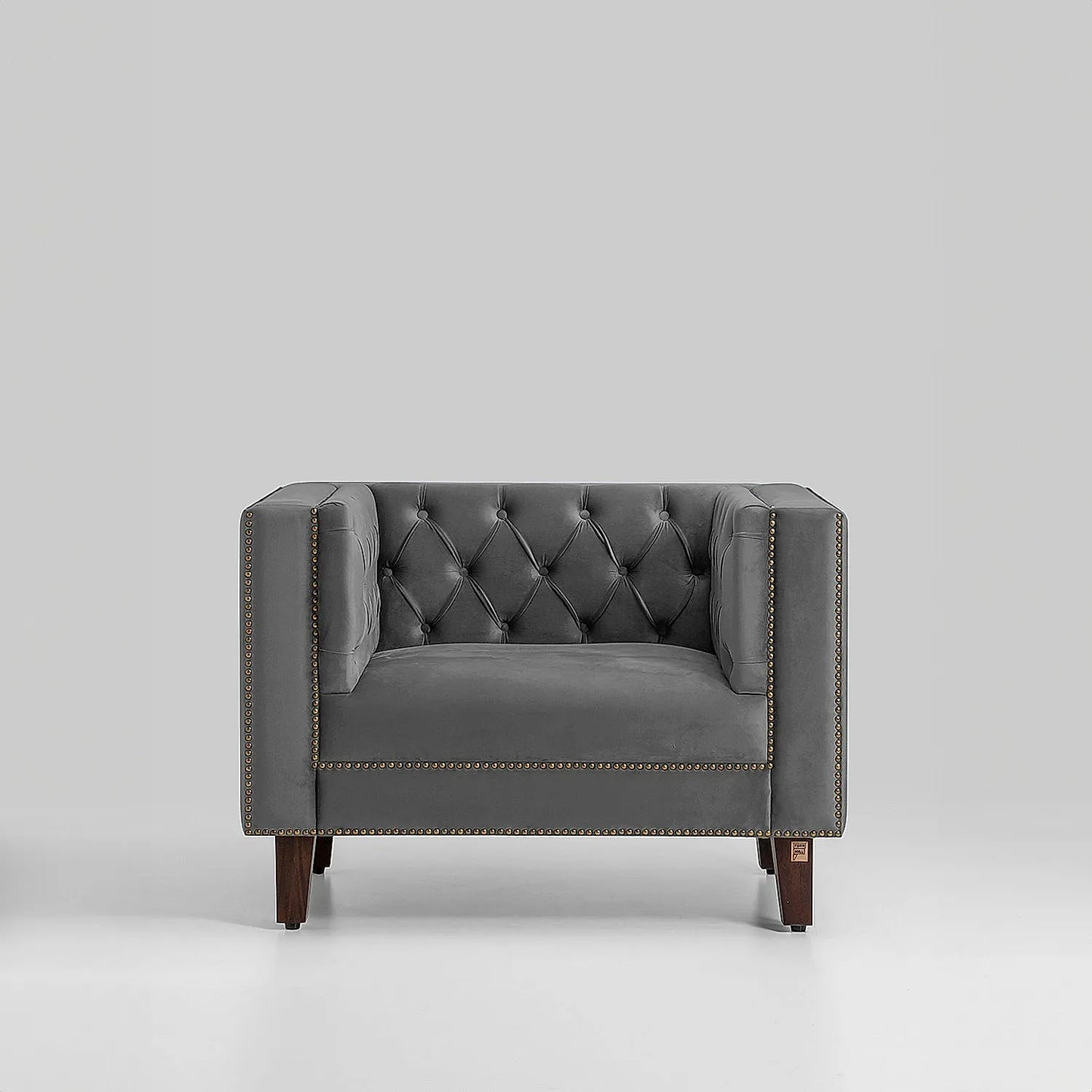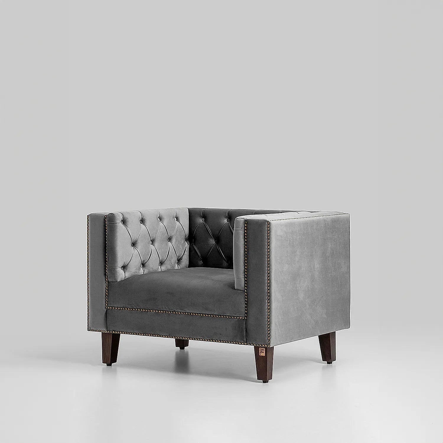 Manchester 1 Seater Wooden Sofa (Velvet, Grey)