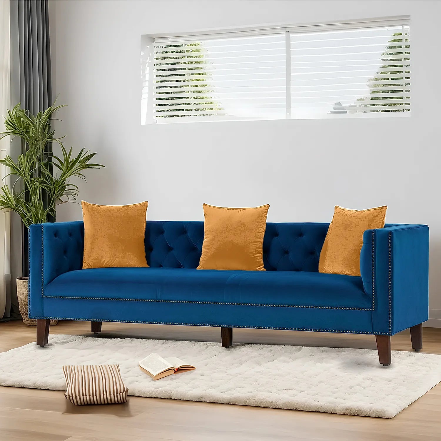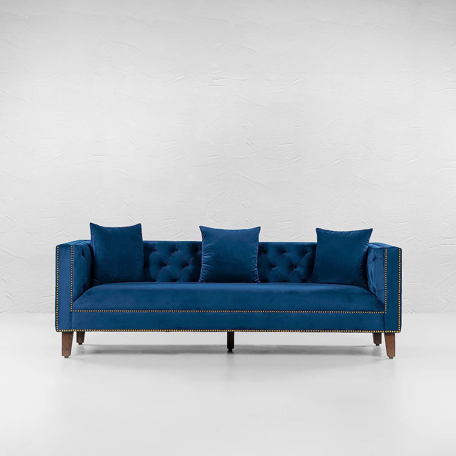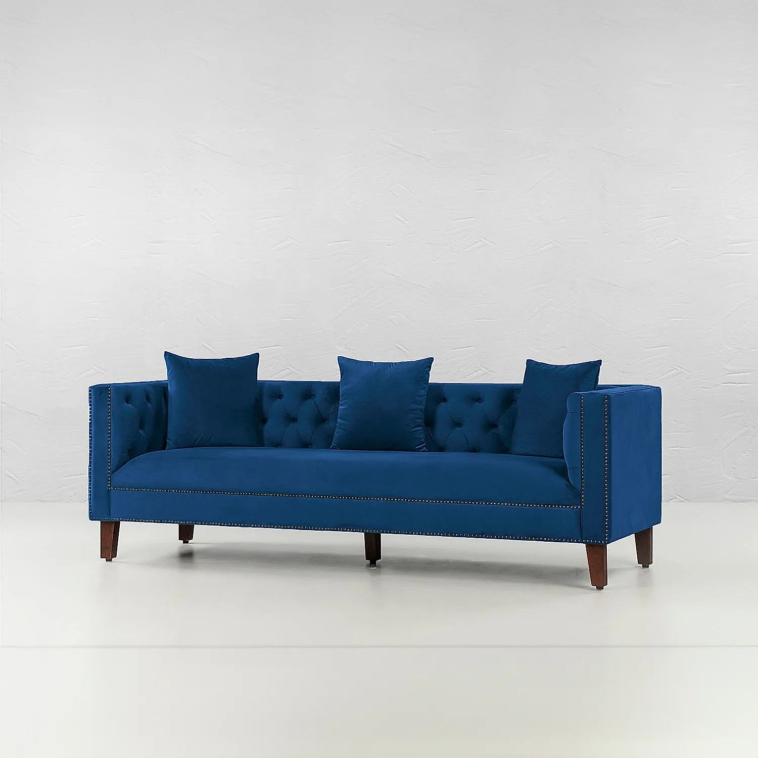 There has never been a more luxurious combination than velvet and solid wood. Get the strength and reliability of solid wood, making the inner threadworks of the sofa while enjoying the soft cushiony feels of velvet. The exposed and sturdy leg rests make for a modern sofa, while the top half resembles elegant and luxe pieces straight from the movies.