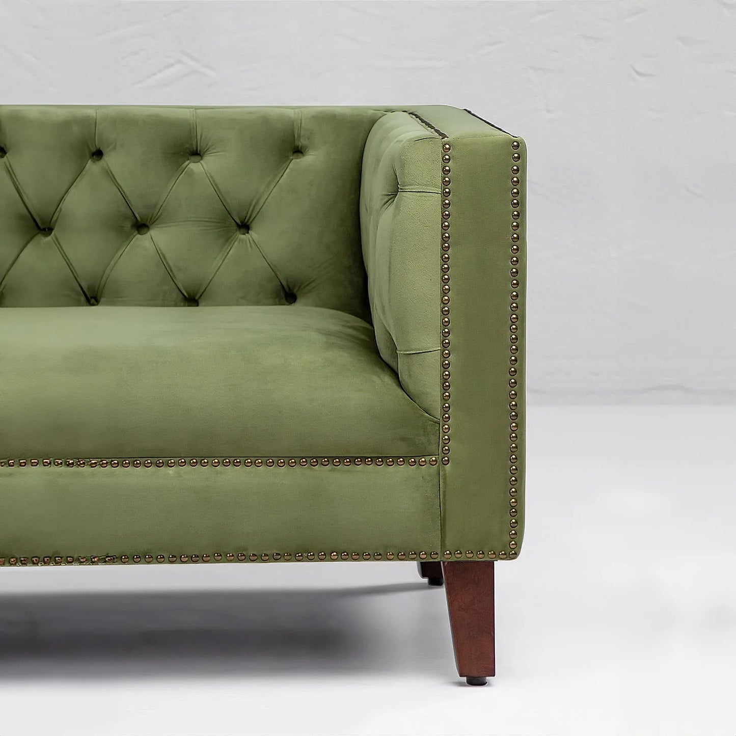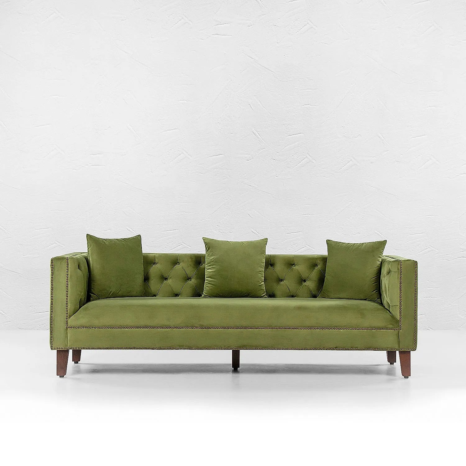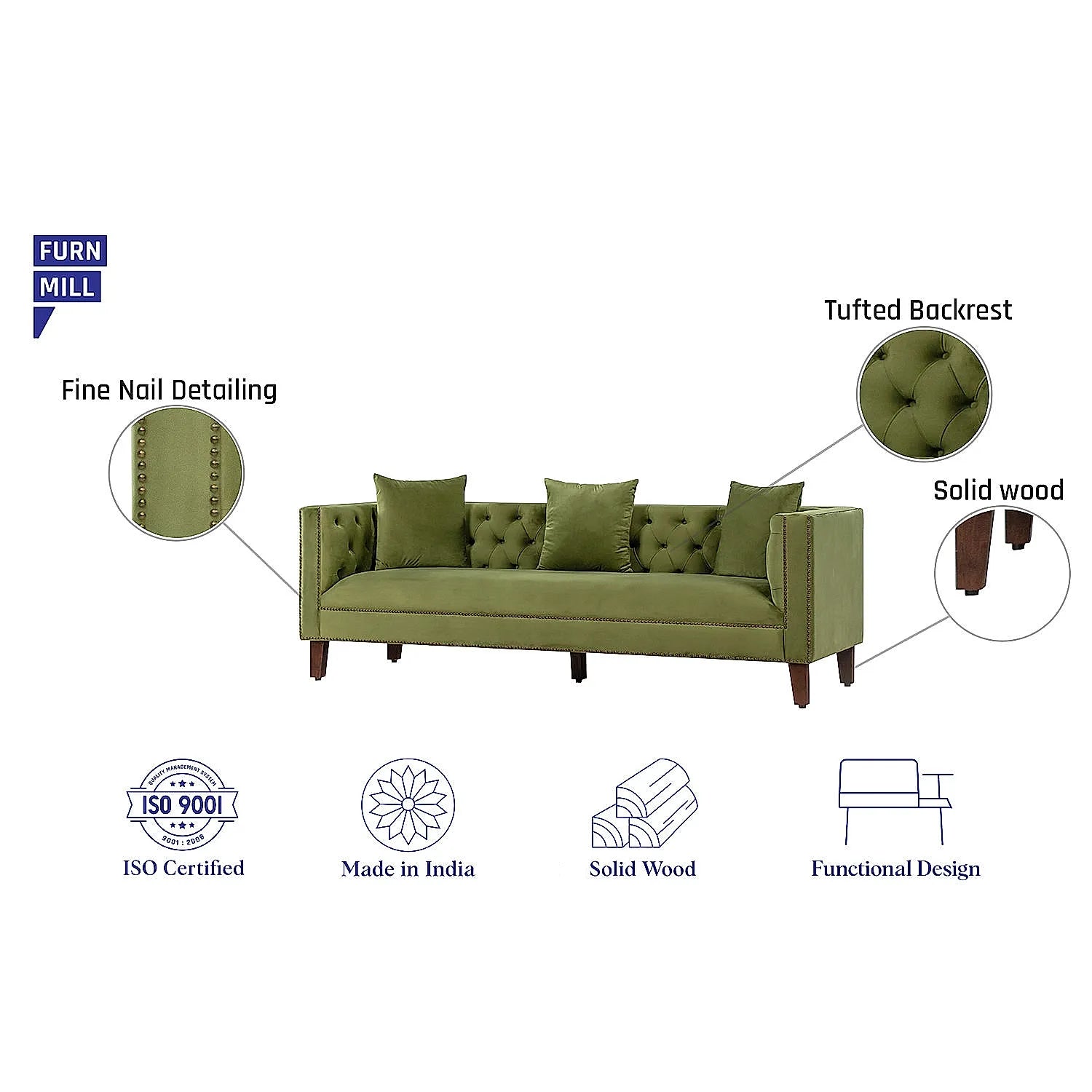 Manchester 3 Seater Wooden Sofa (Velvet, Green)