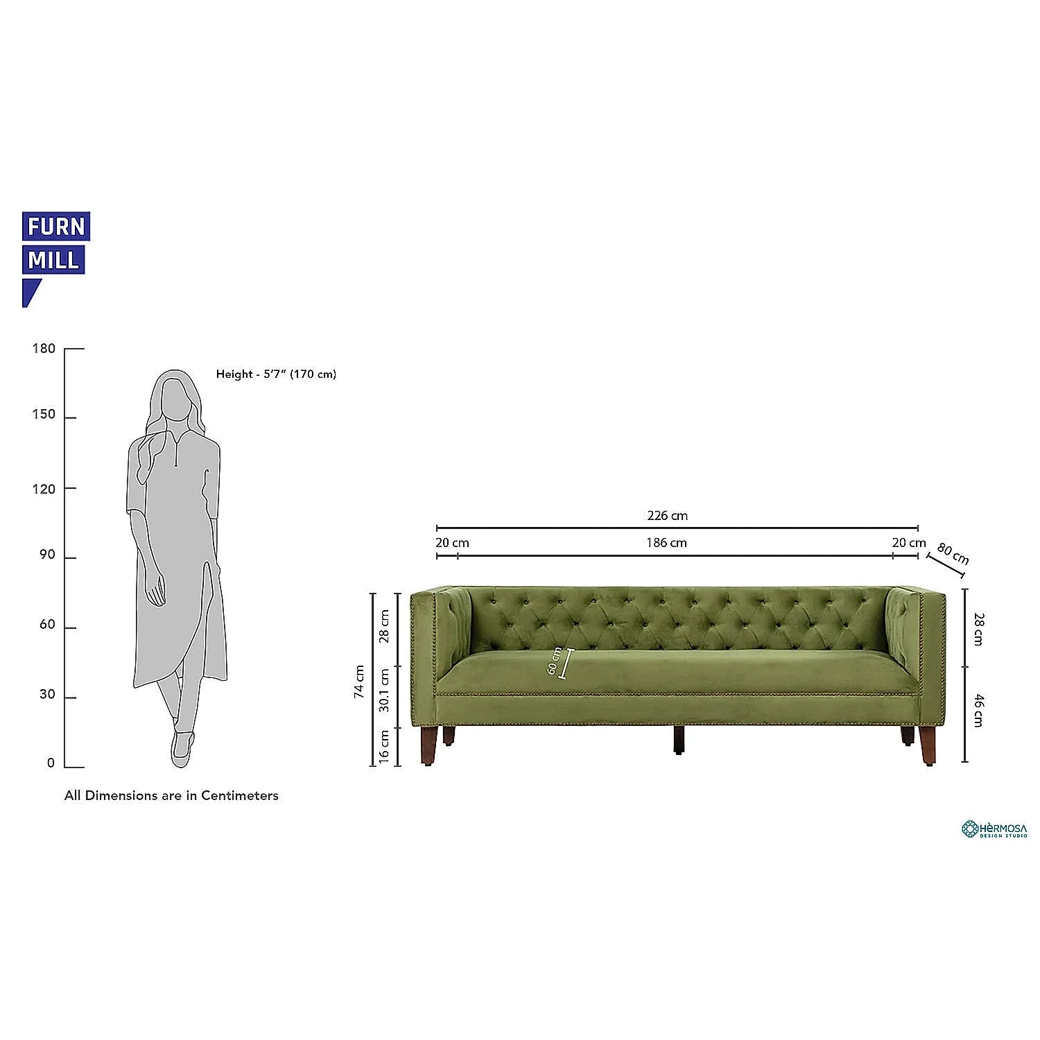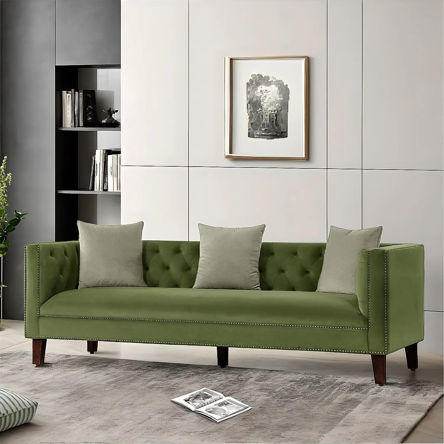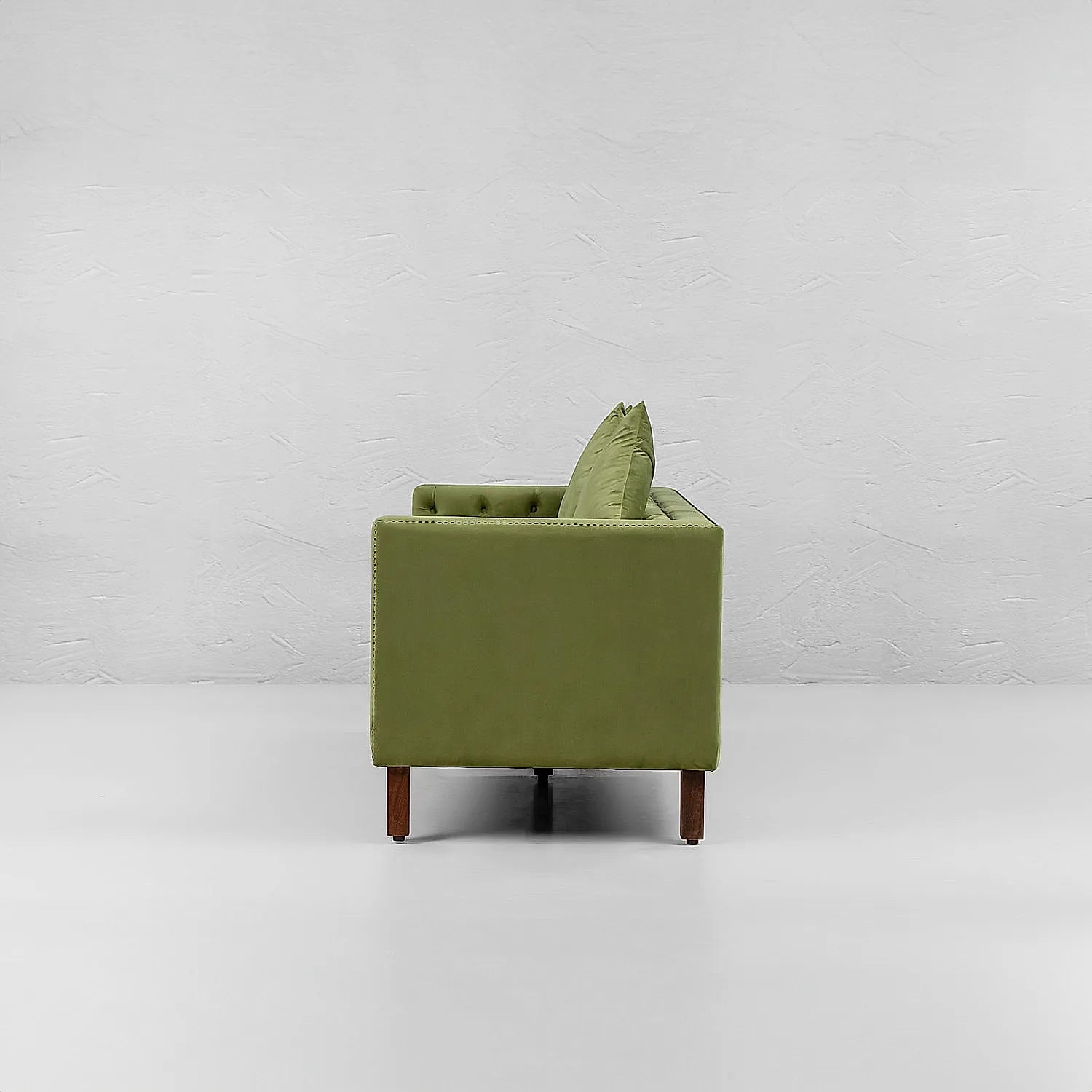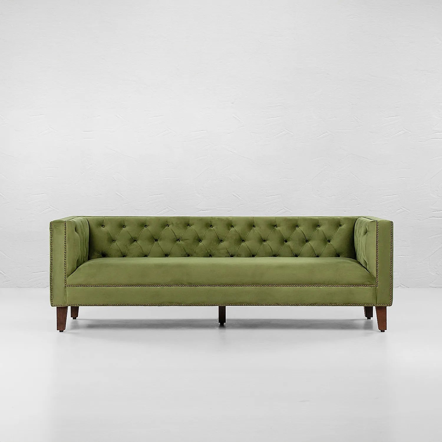 Manchester 3 Seater Wooden Sofa (Velvet, Green)