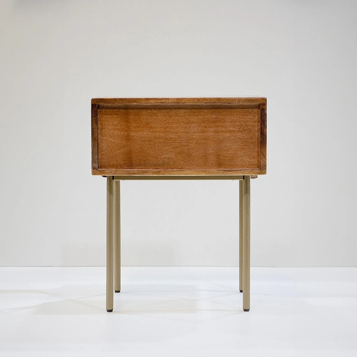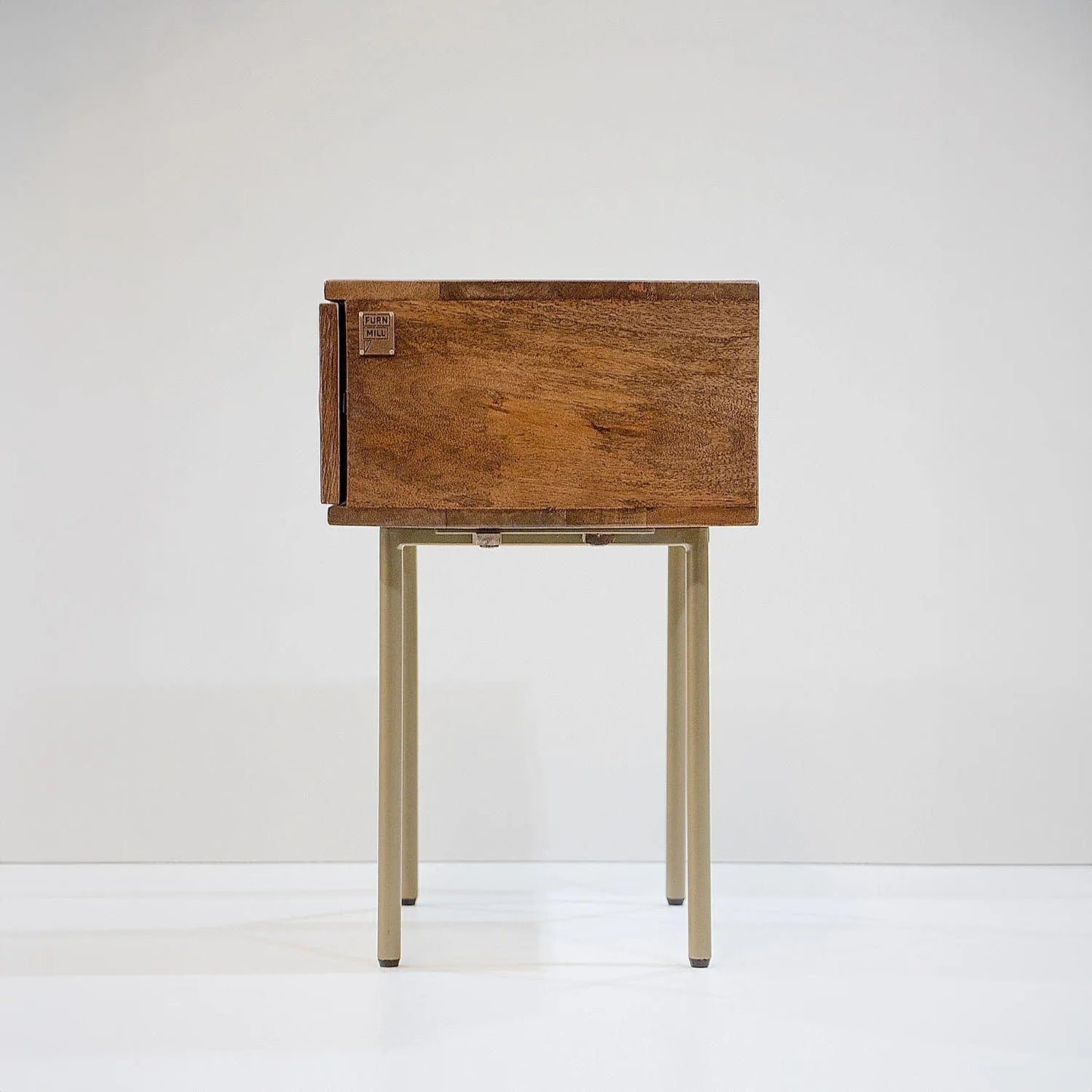 Furnmill's Medley bedside table compliments any home decor with its unique and elegant metal and wood design. This solid wood bedside table with storage spaces proves to be a useful home furniture item for storing various household things. This metal bedside table can be used in the bedroom to place night lamps, clocks, and other utility items on a very affordable and budget-friendly note.