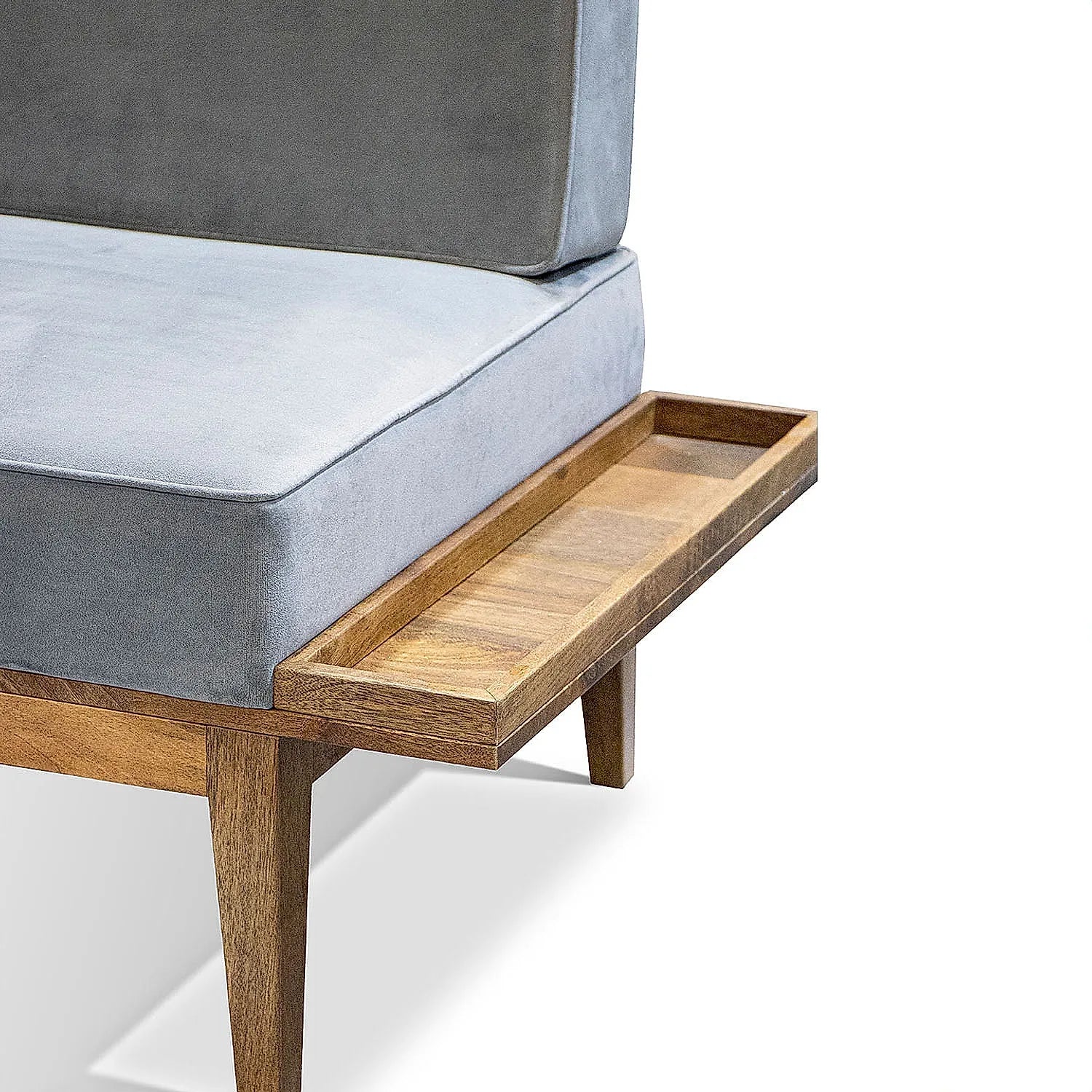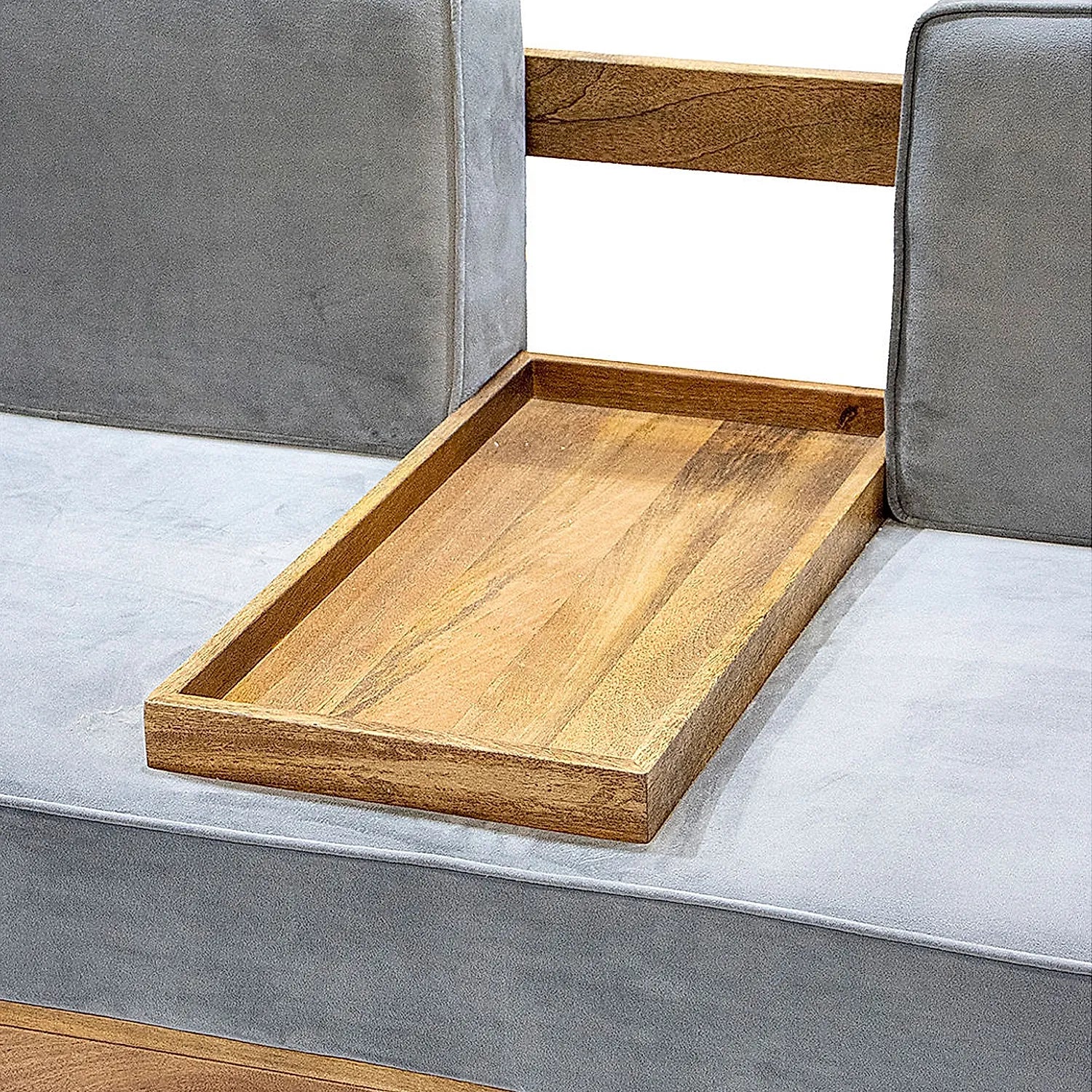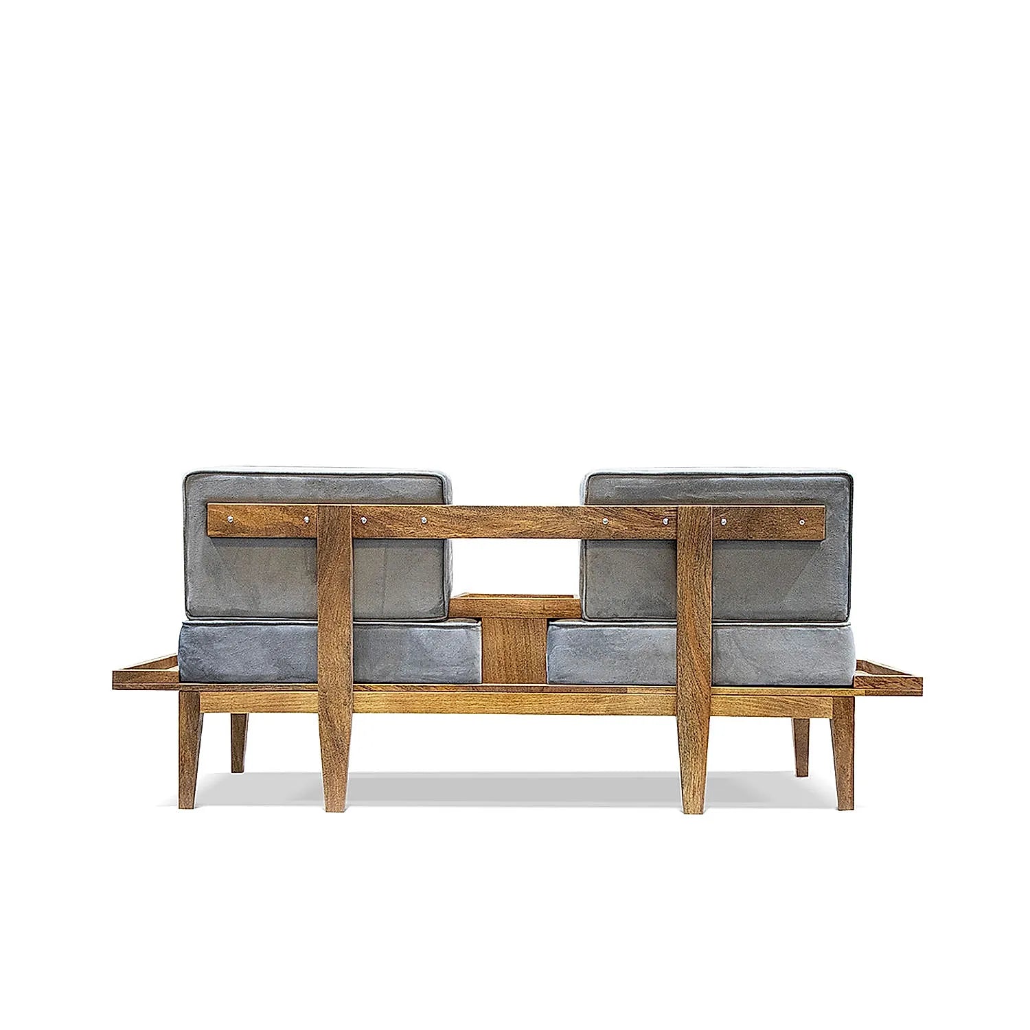 Quite spacious and premium, this 2-seater sofa is every bit modern and sophisticated. With cup holders on both sides and a tray in between, it's comfortable with convenience. Accentuating the solid wood natural finish the design ensures only the most premium experience. A full package in itself, it's compact and minimal, dealing away with any need for a table at all.