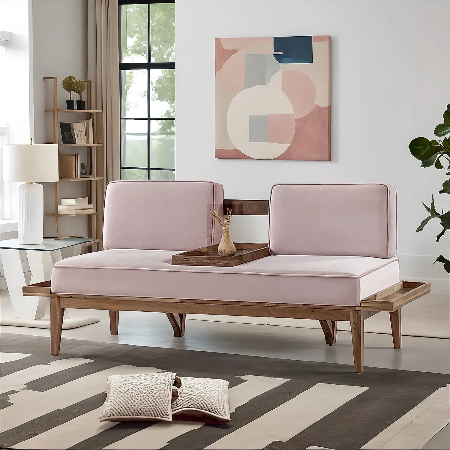 Minika 2 Seater Wooden Sofa (Velvet, Pink)
