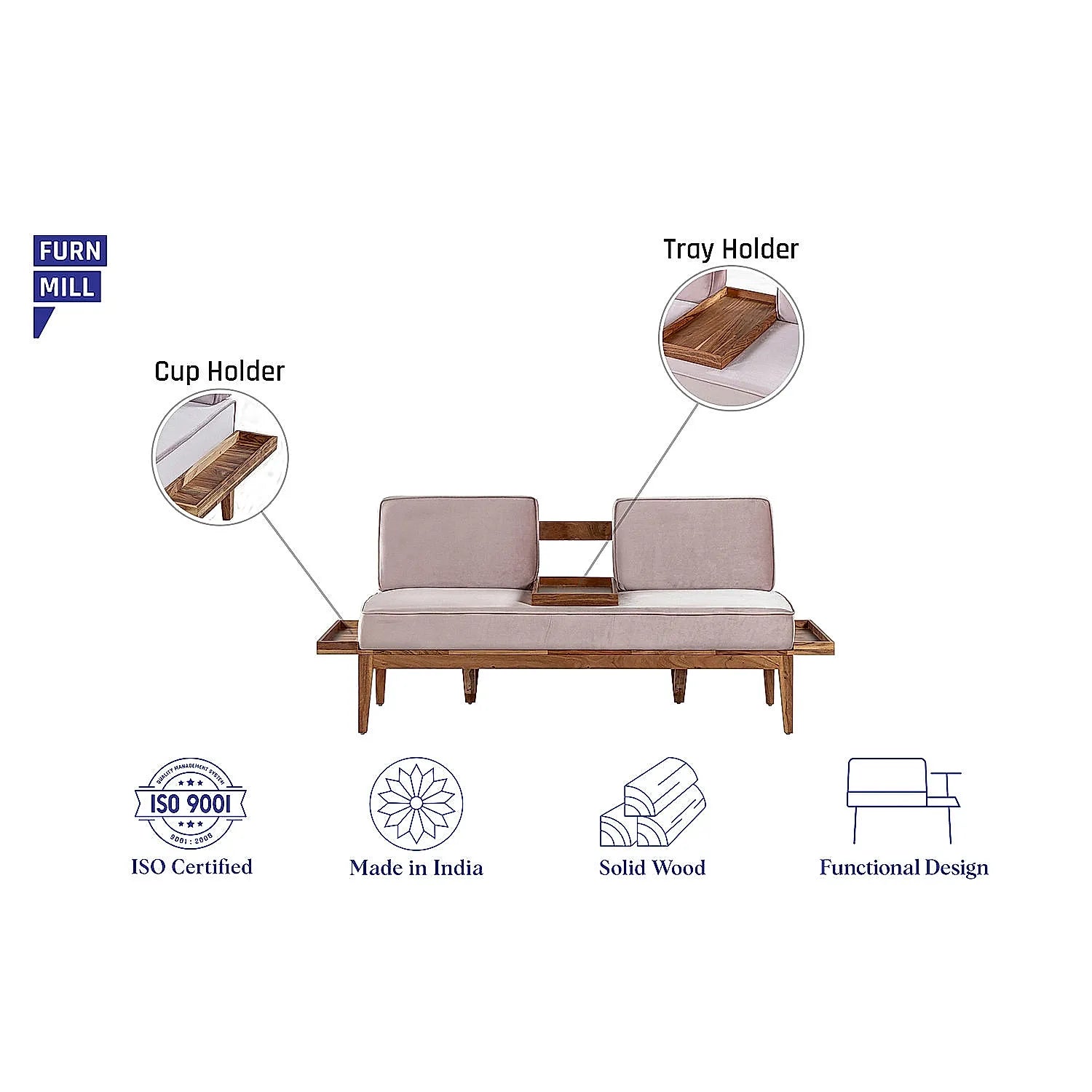 Quite spacious and premium, this 2-seater sofa is every bit modern and sophisticated. With cup holders on both sides and a tray in between, it’s comfortable with convenience. Accentuating the 100% solid wood natural finish the design ensures only the most premium experience. A full package in itself, it’s compact and minimal, dealing away with any need for a table at all.