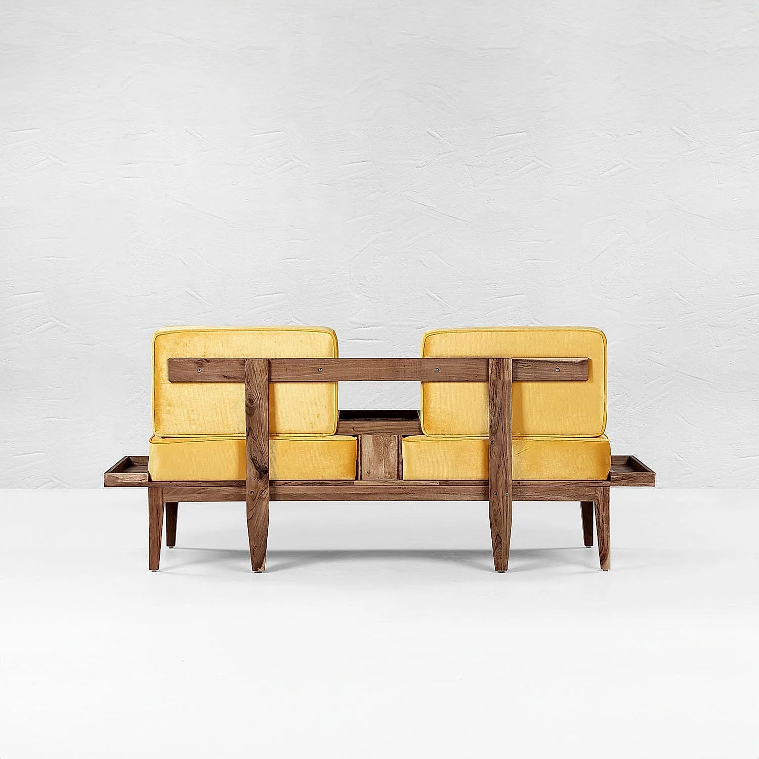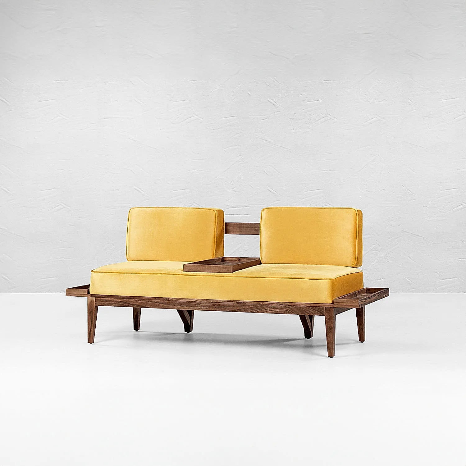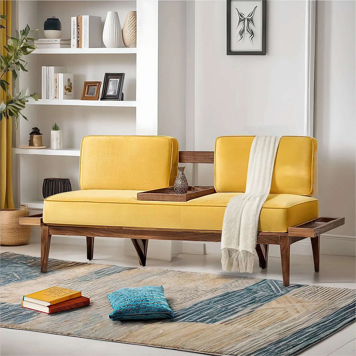 Minika 2 Seater Wooden Sofa (Velvet, Yellow)