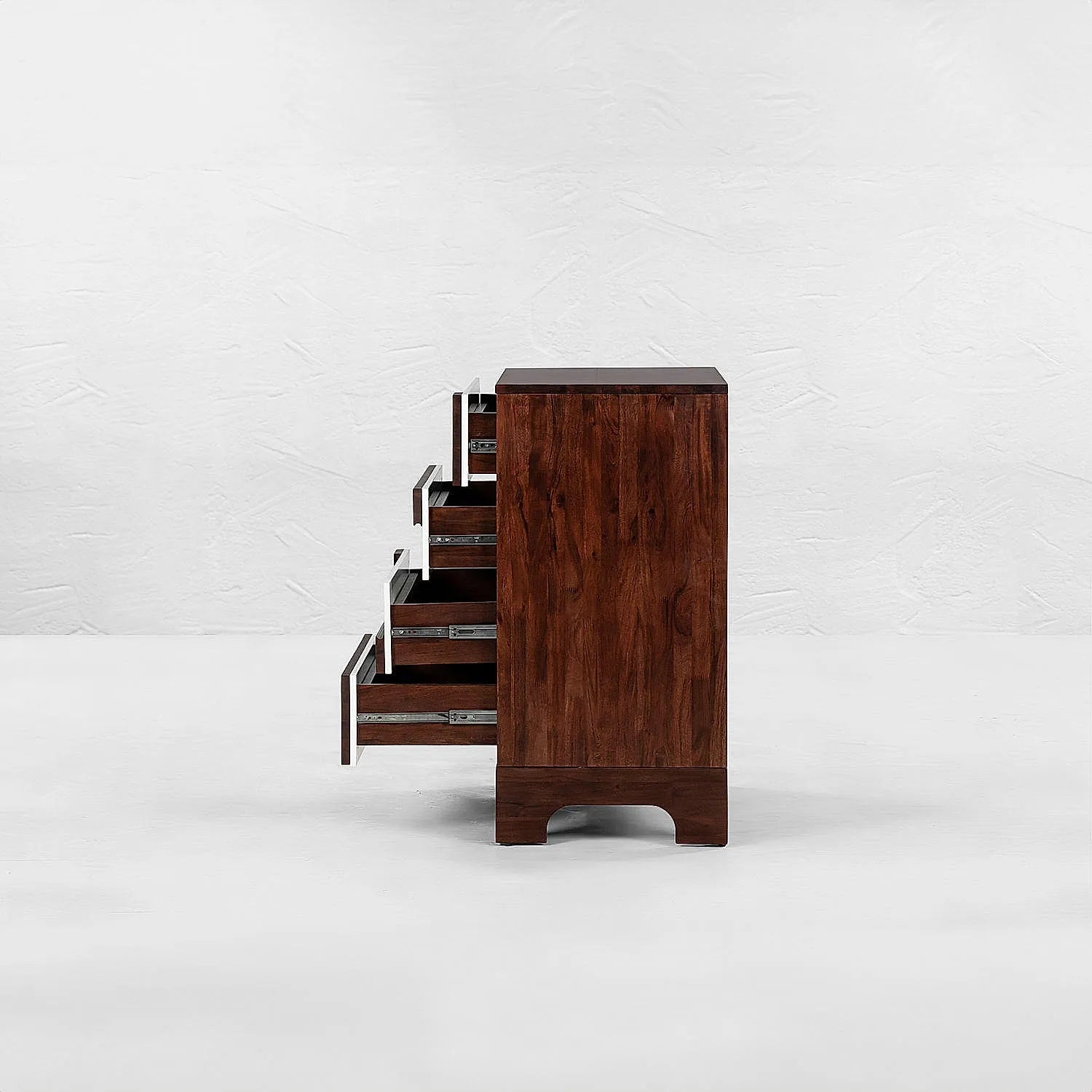 Crisp lines and simplicity come together in our Optic Chest of Drawers. Featuring subtle hues & finish, it lends a abstract feel to your room. Use its 4 spacious drawers to house your stuff in a more orderly fashion.