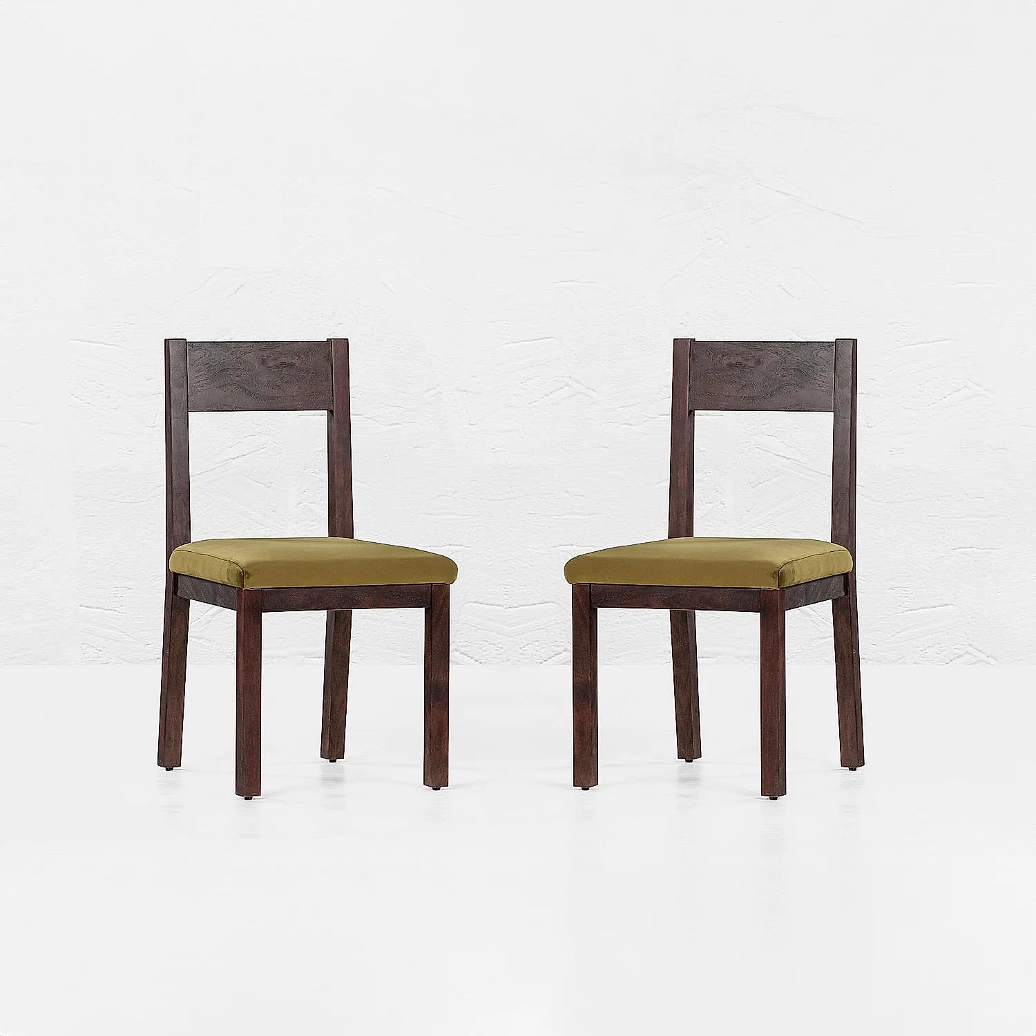 Orion Wooden Dining Chair - Set of 2 - (Velvet, Green) - Dark Walnut Finish