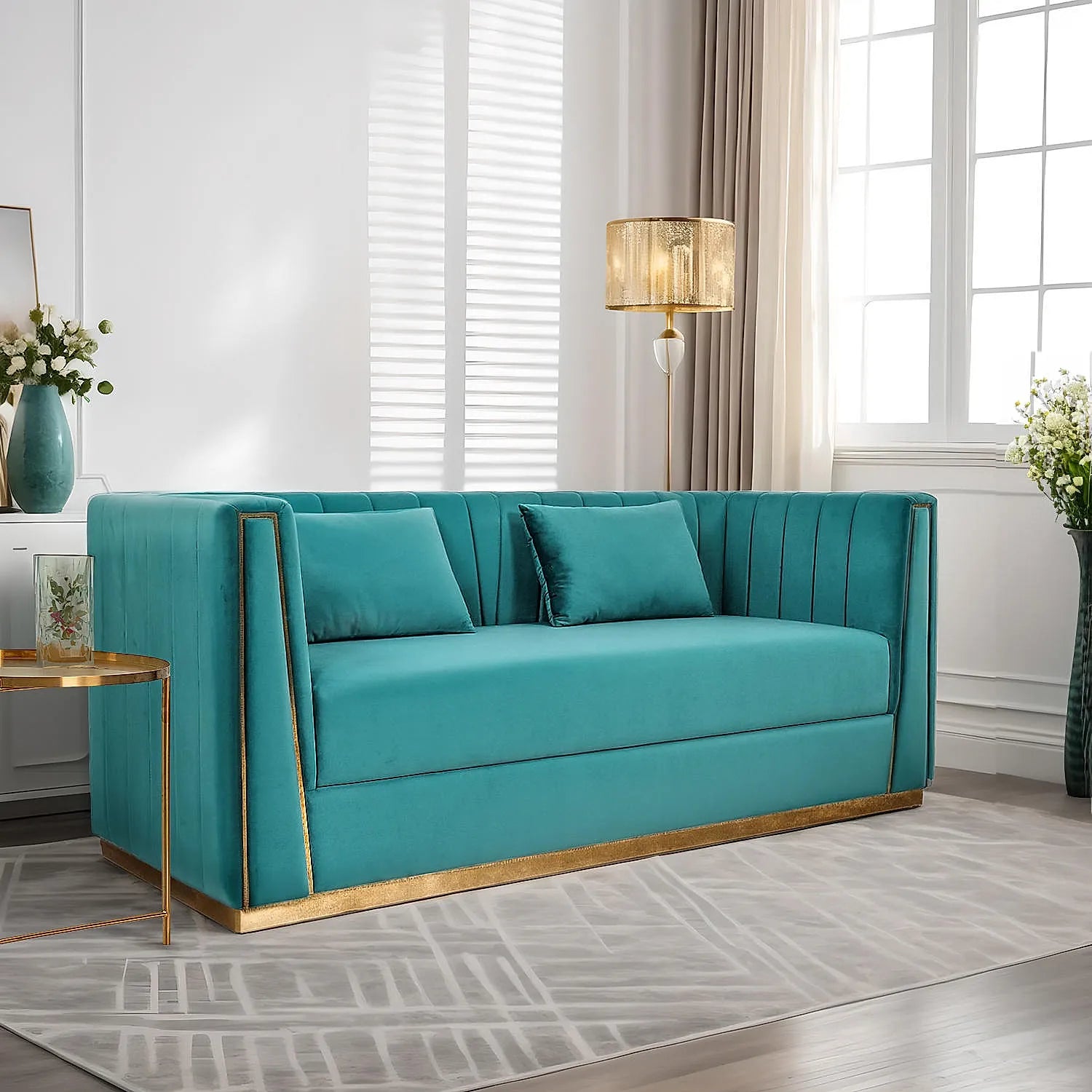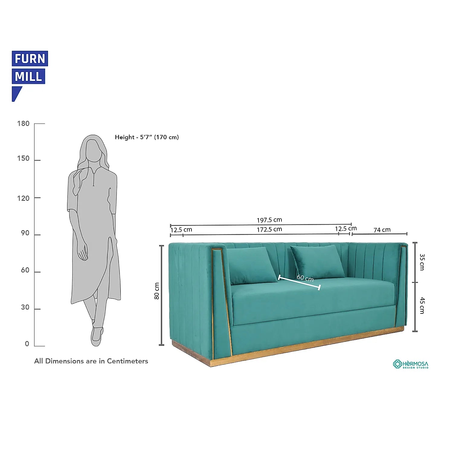 Oslo 3 Seater Fabric Sofa (Velvet, Sea Green Color)