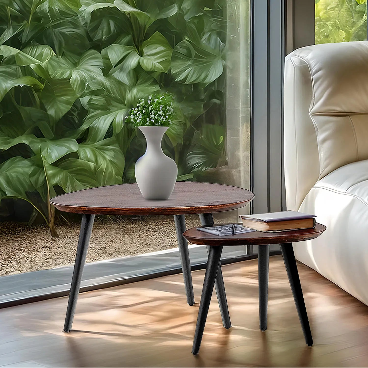 Ovees & Oveem Wooden Nesting Table (Dark Walnut Finish)